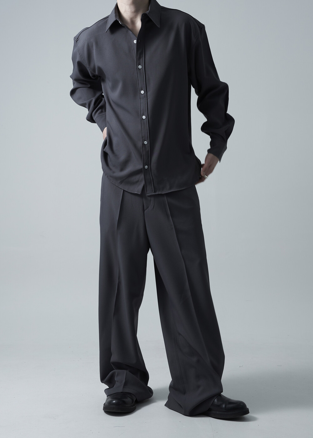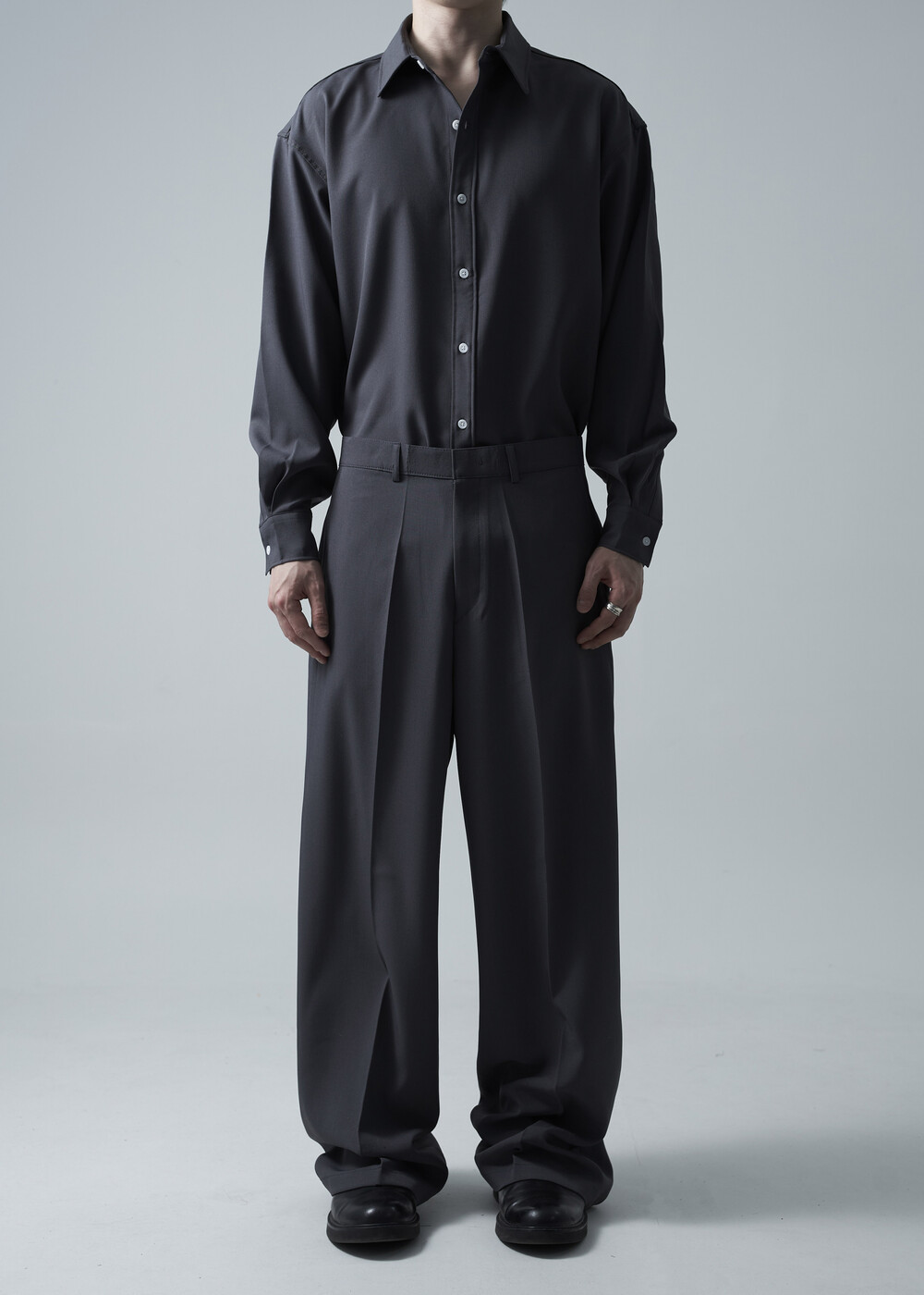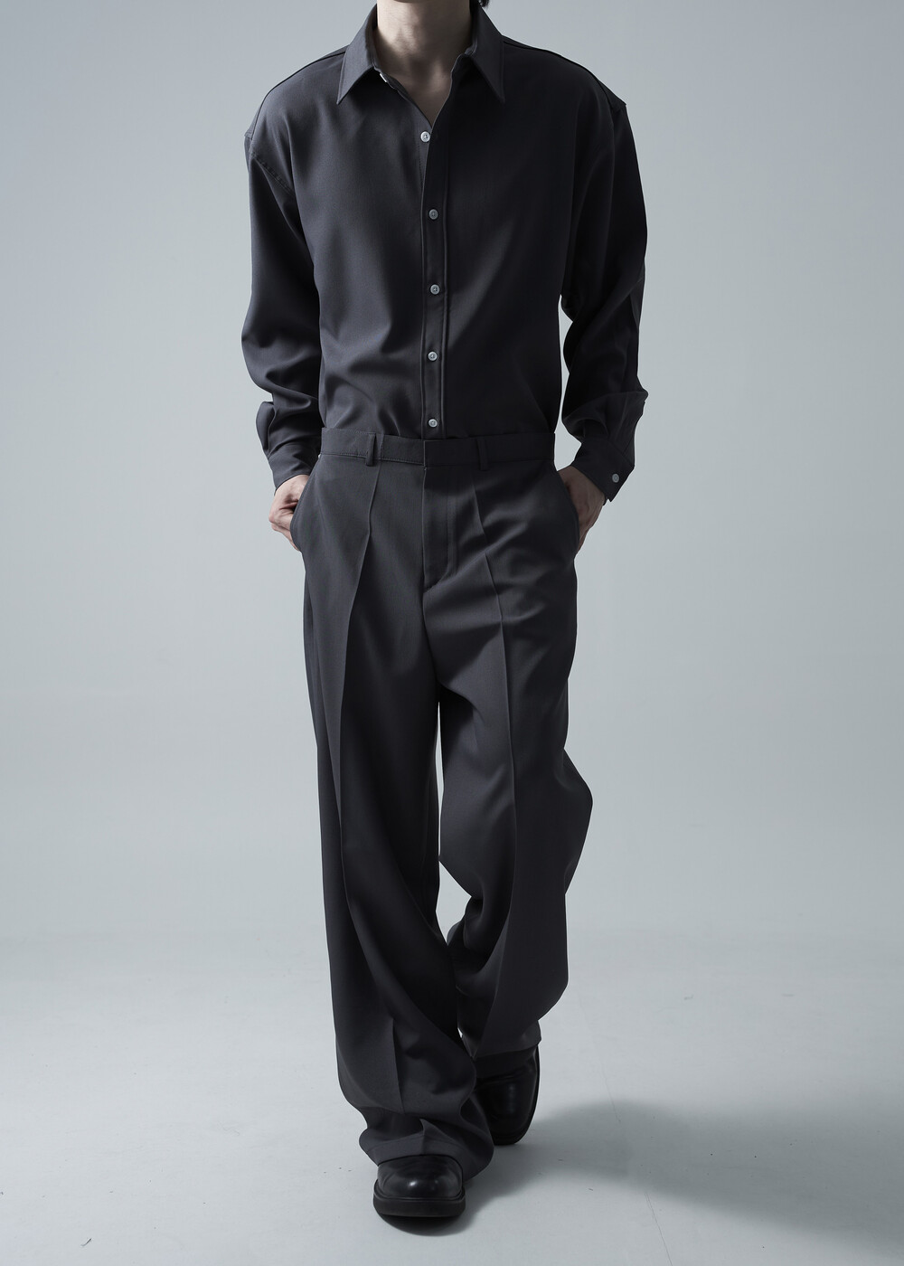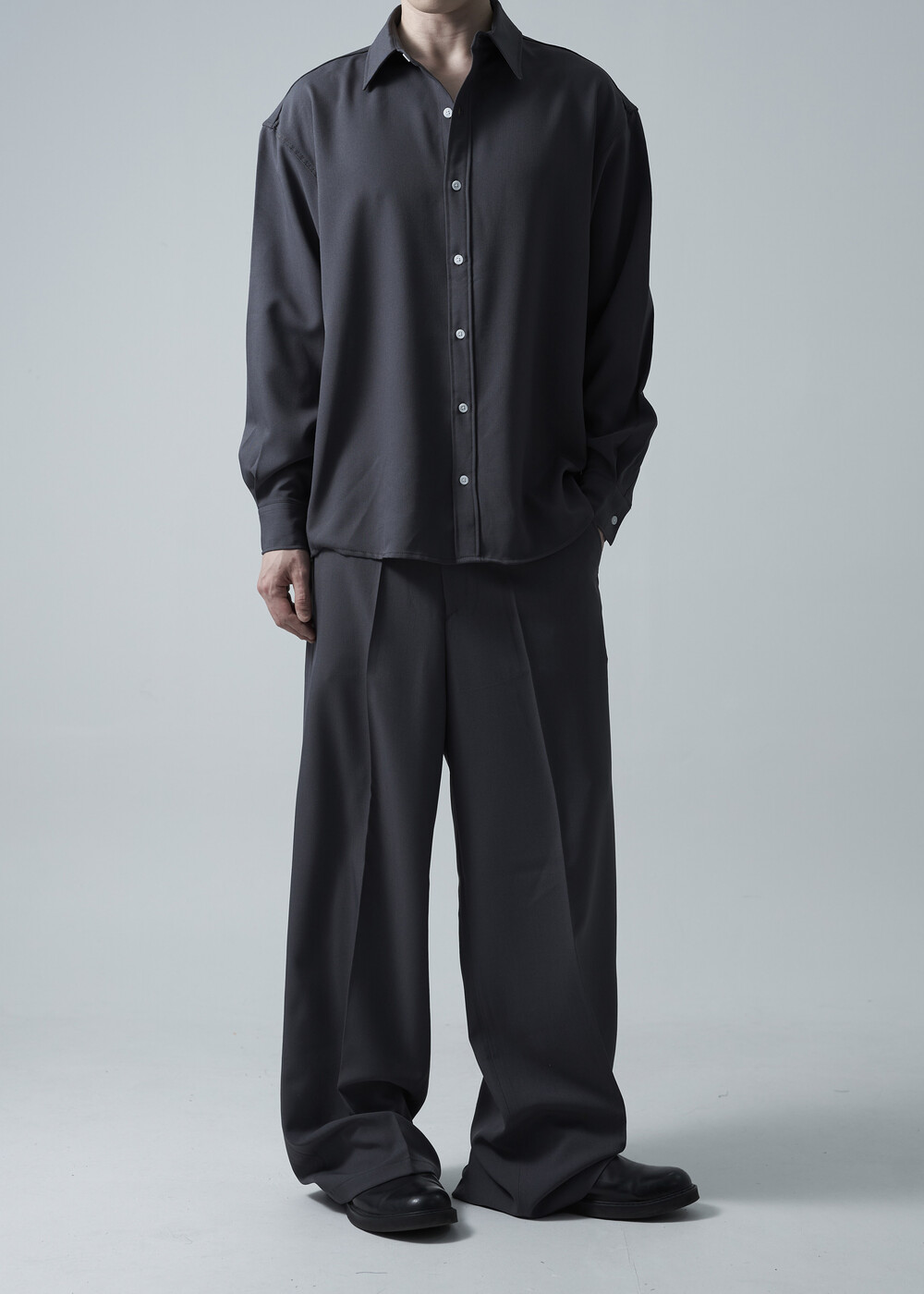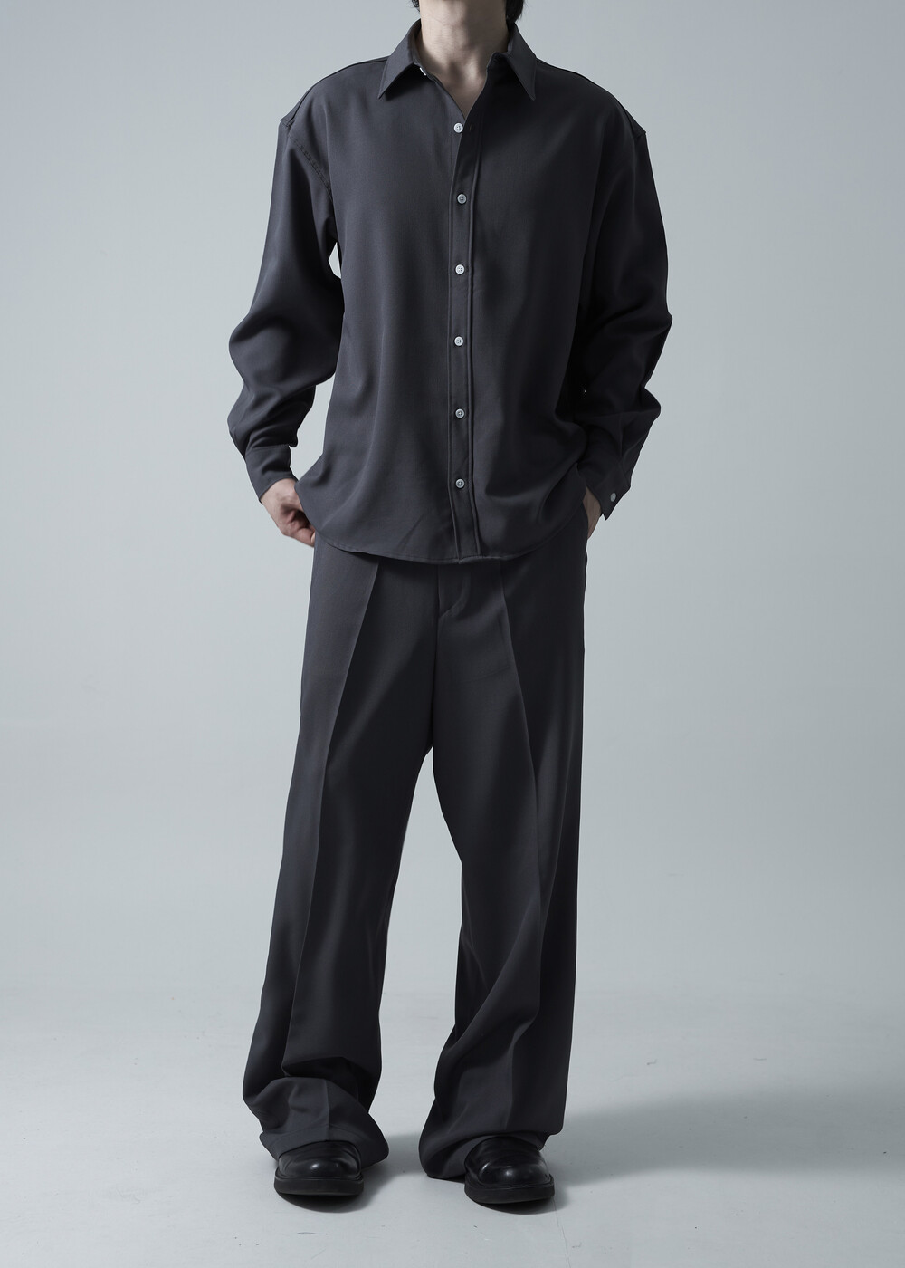 우아하게 찰랑거리는 실루엣이 매력적인 TR소재로 구성되어 미니멀한 아웃핏을 연출해주는 오버핏 셔츠 제품입니다.