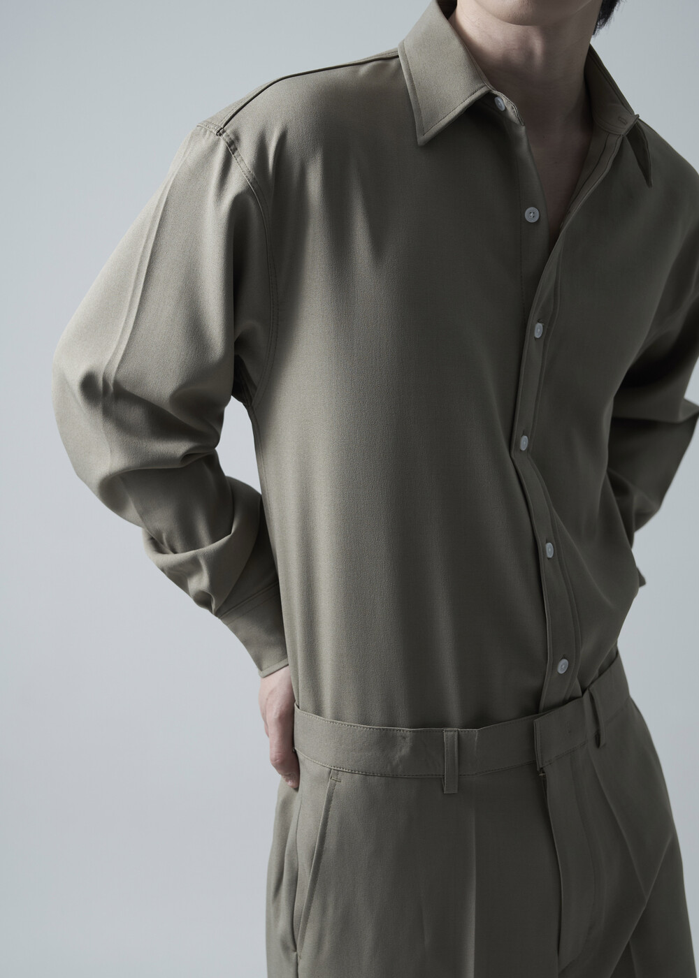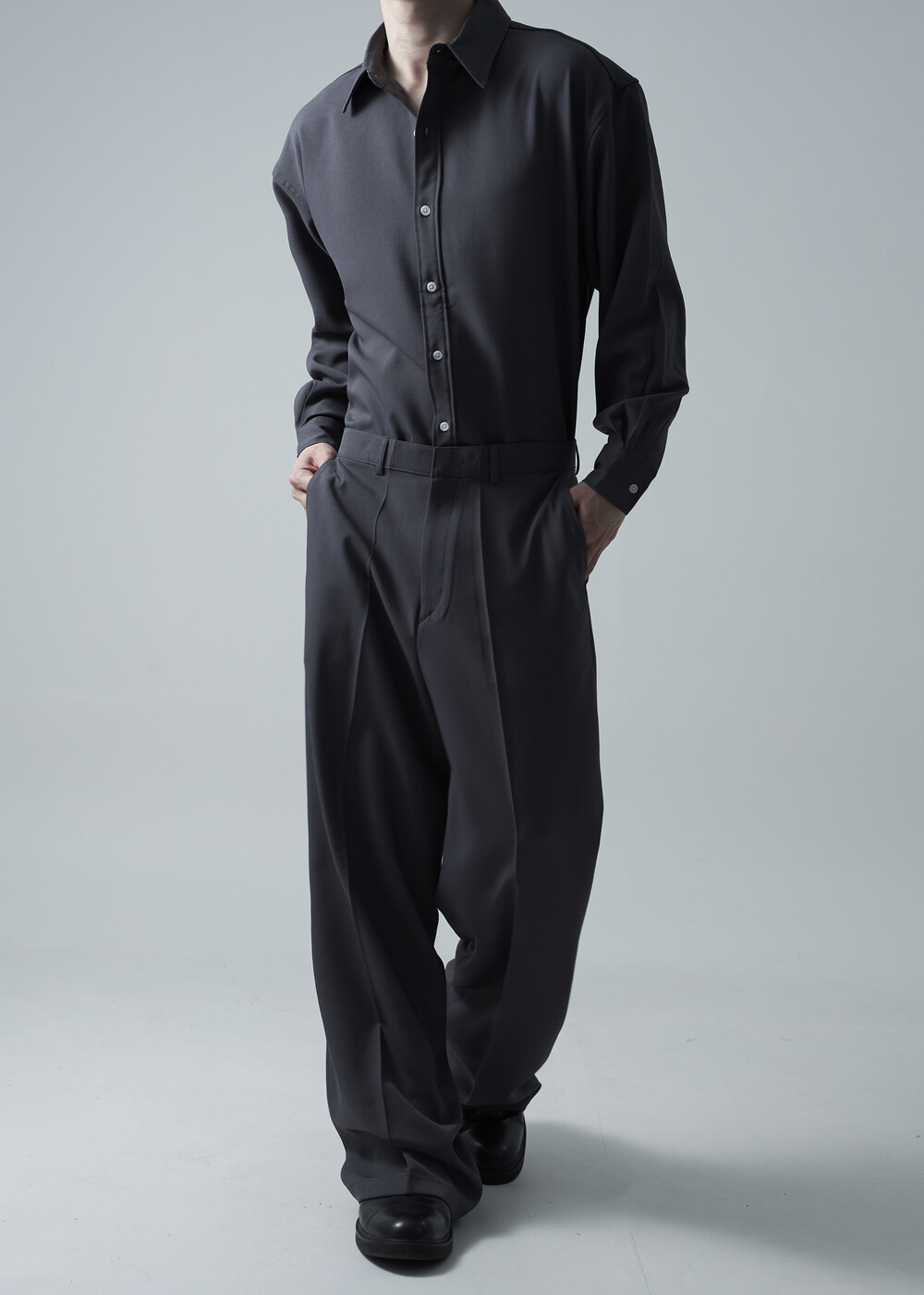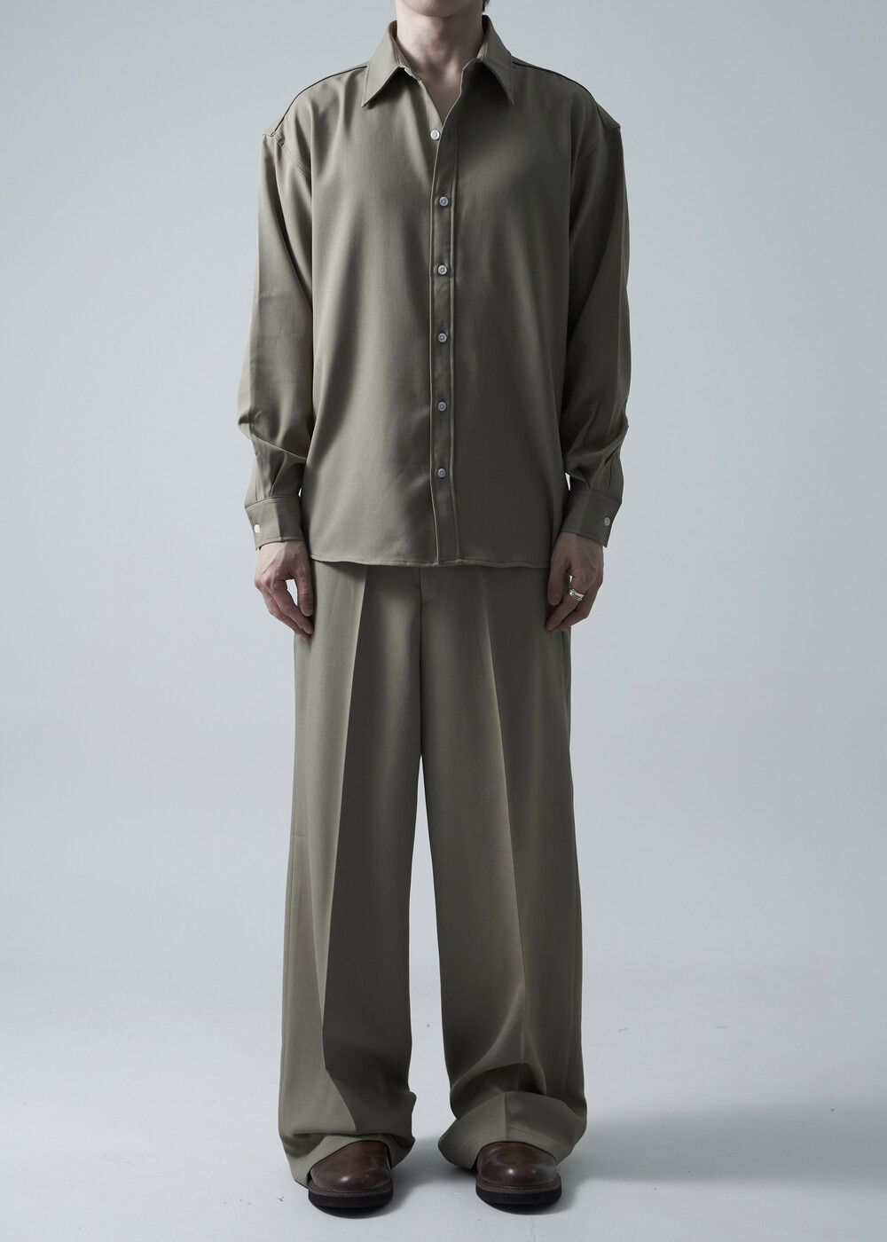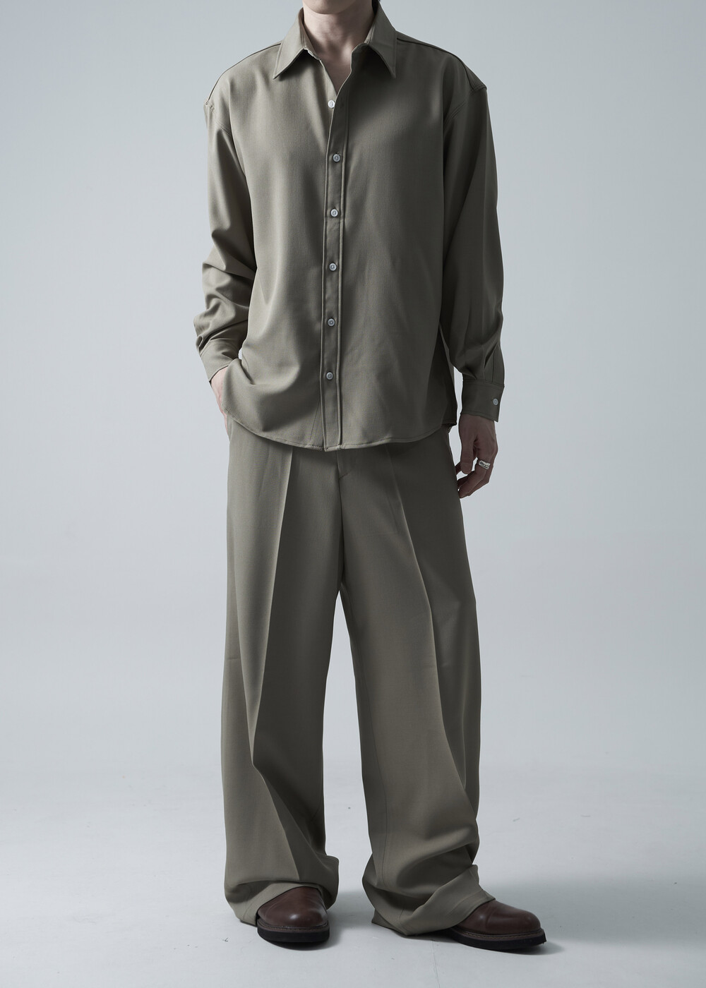 우아하게 찰랑거리는 실루엣이 매력적인 TR소재로 구성되어 미니멀한 아웃핏을 연출해주는 오버핏 셔츠 제품입니다.