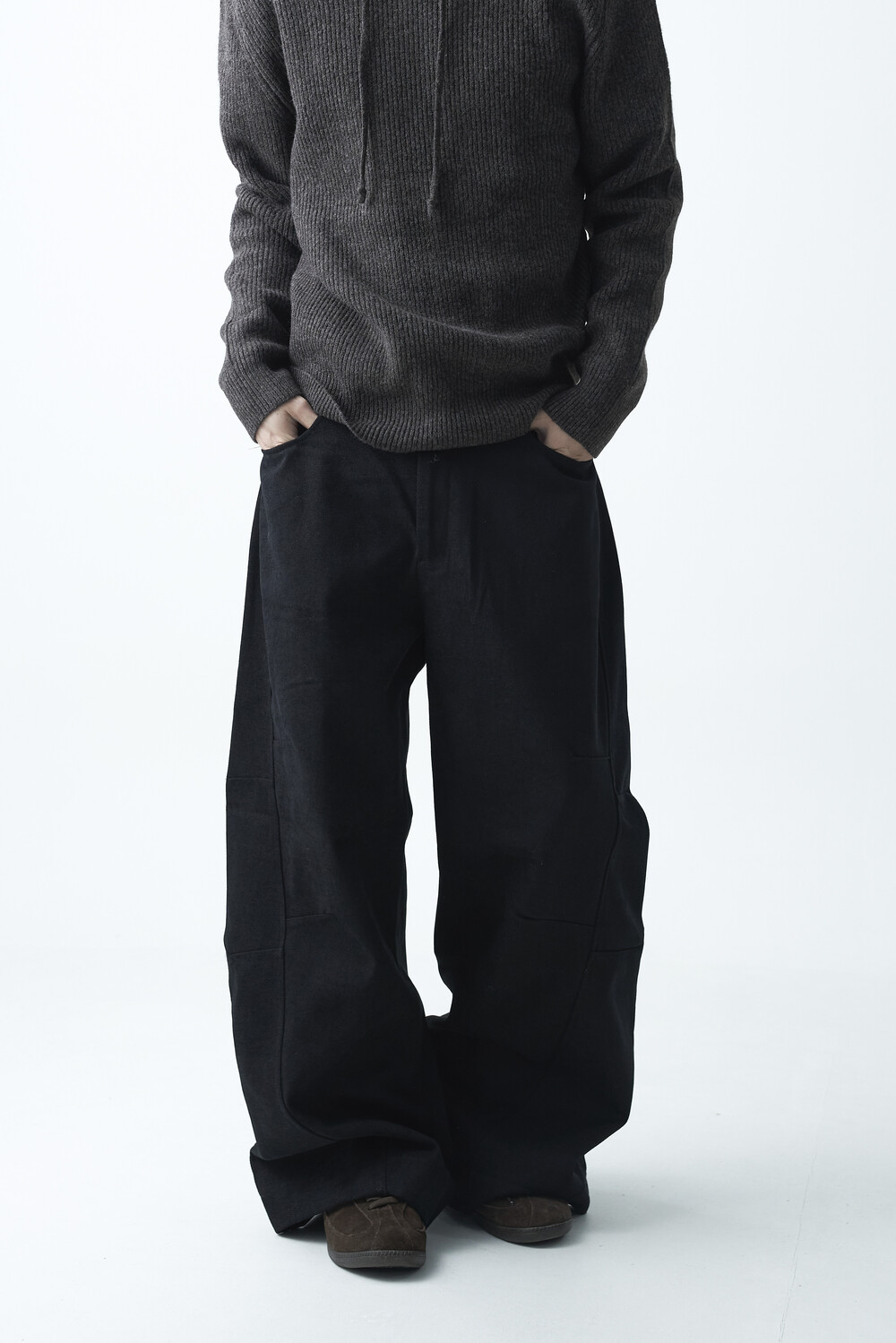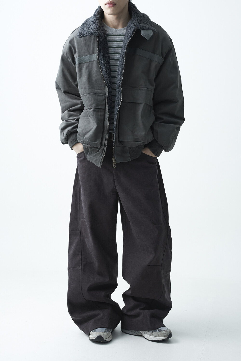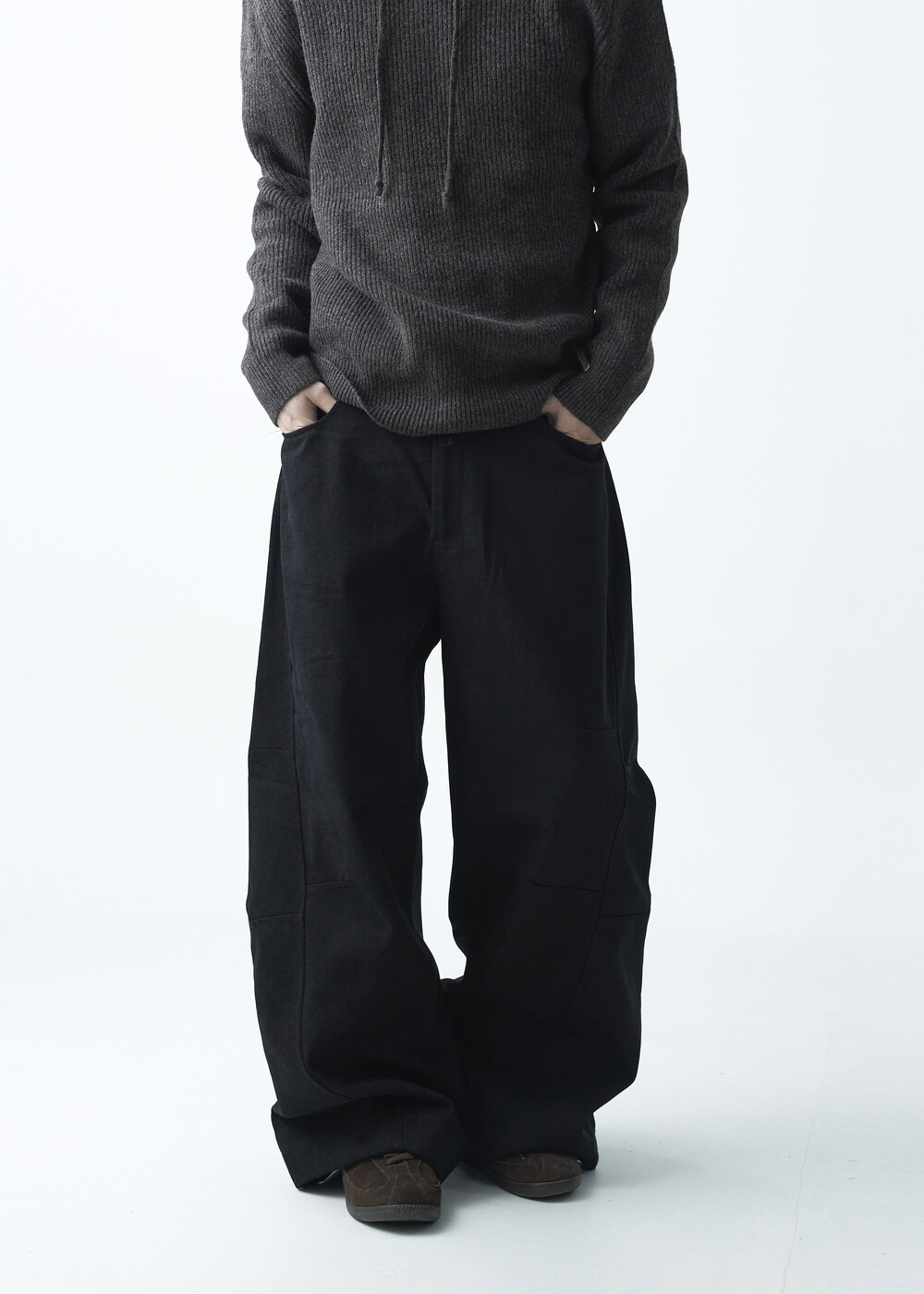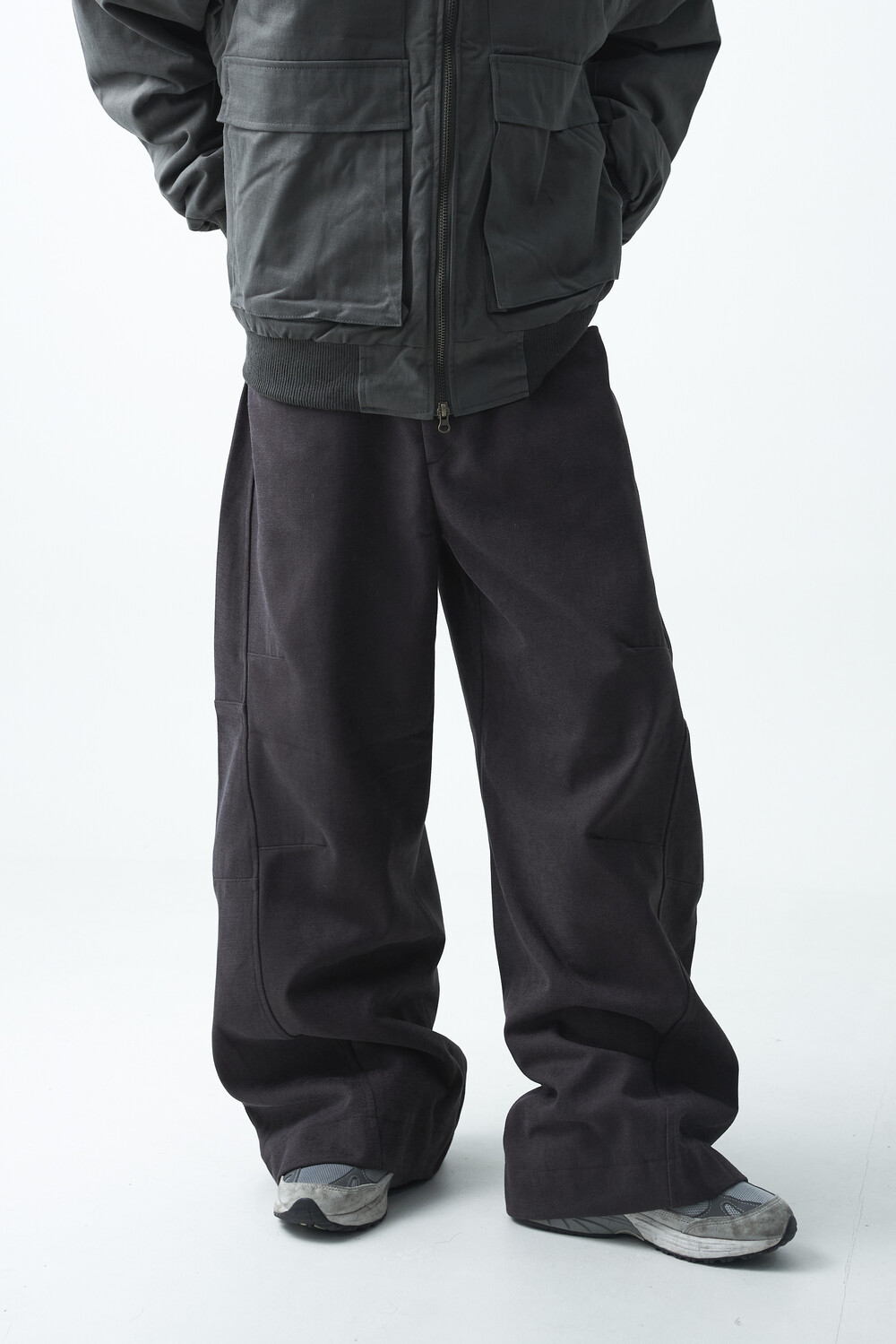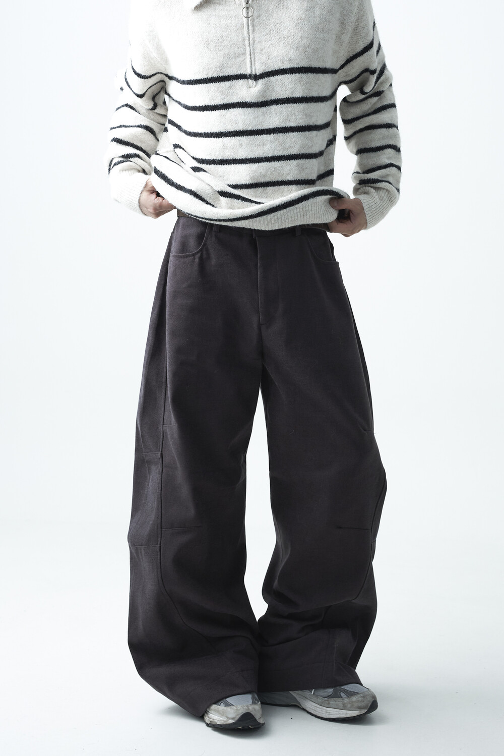 - 두꺼운 피치 코튼 소재감의 벌룬 와이드 팬츠 제품입니다. 따뜻한 겨울용 팬츠 제품으로 풍부한 볼륨감과 각 파츠의 절개 디테일로 입체적인 와이드 실루엣을 연출합니다.