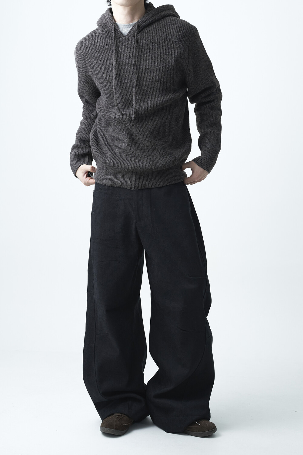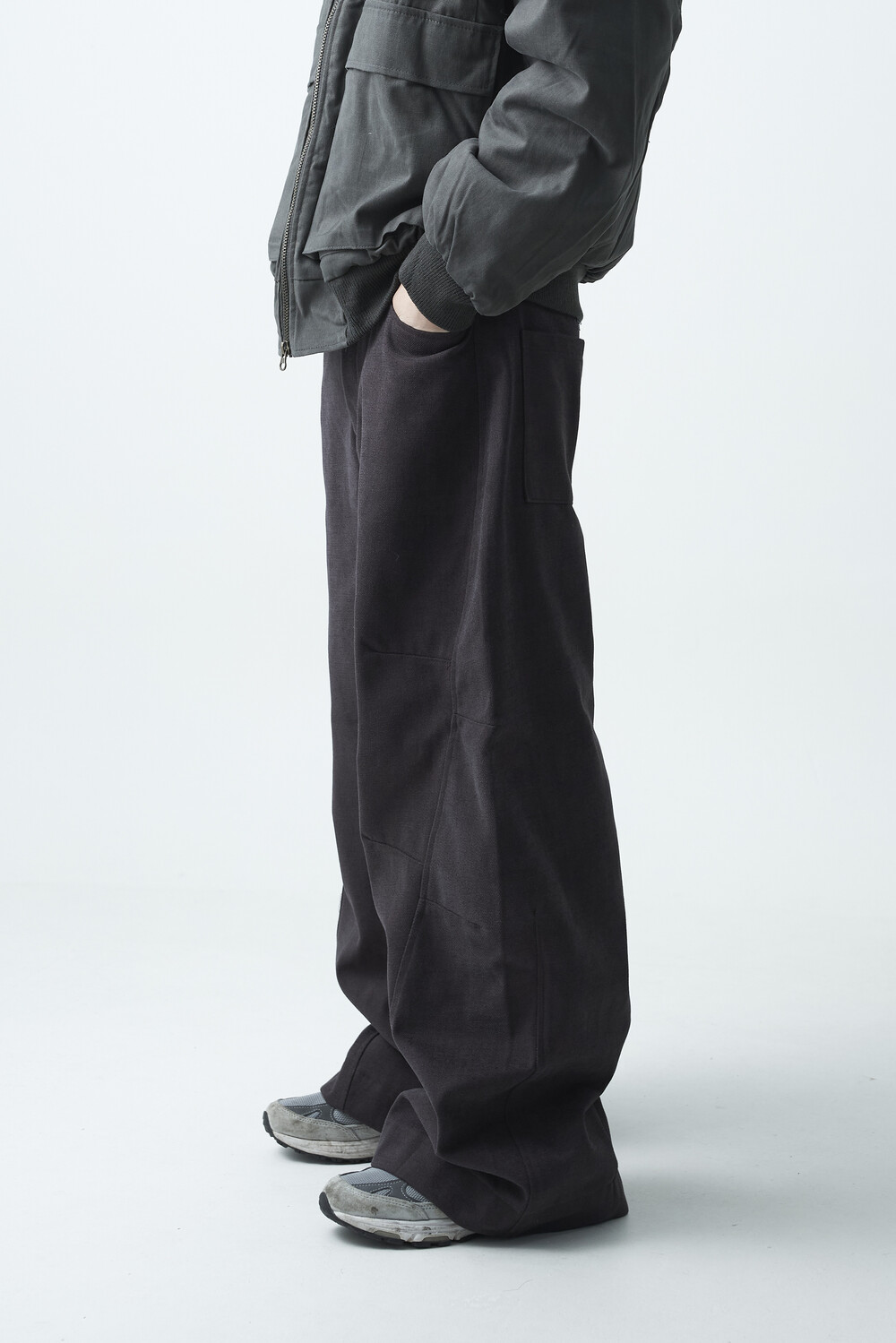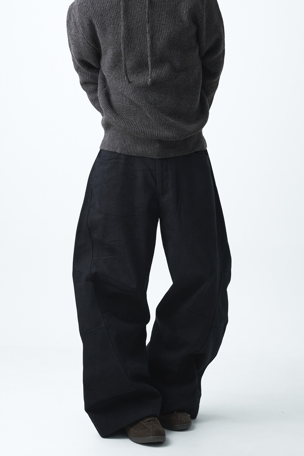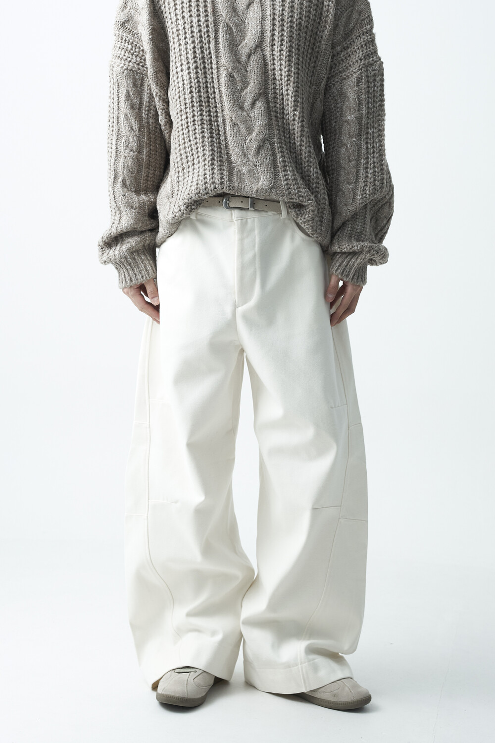 - 두꺼운 피치 코튼 소재감의 벌룬 와이드 팬츠 제품입니다. 따뜻한 겨울용 팬츠 제품으로 풍부한 볼륨감과 각 파츠의 절개 디테일로 입체적인 와이드 실루엣을 연출합니다.