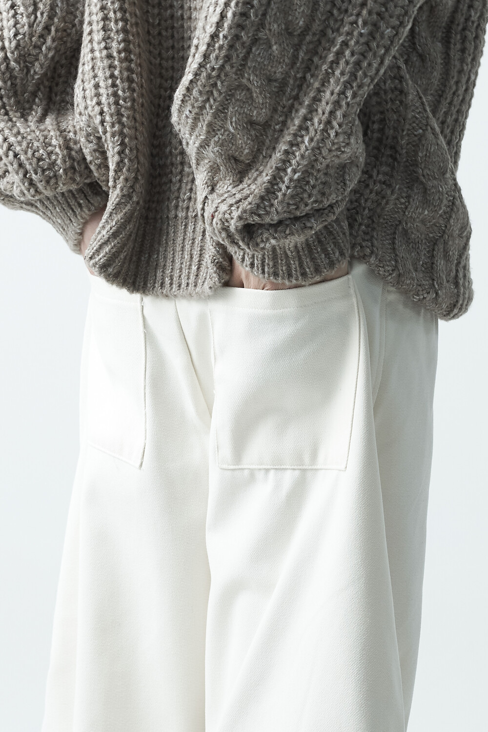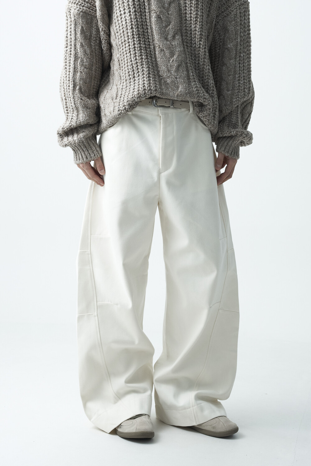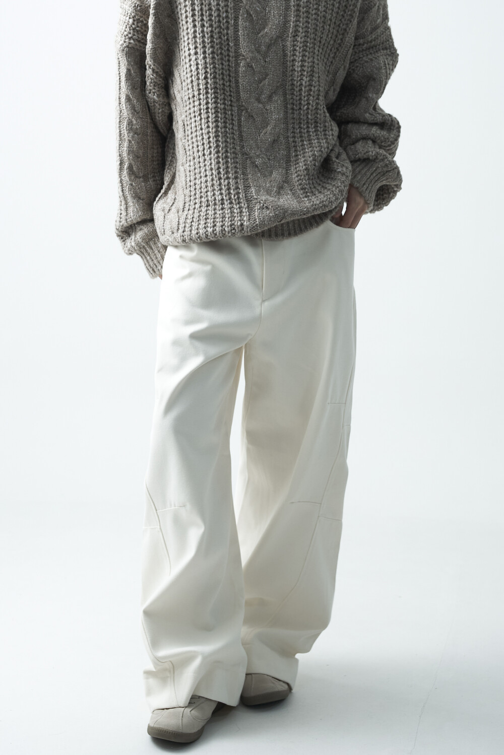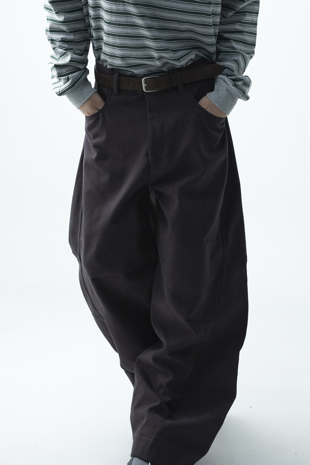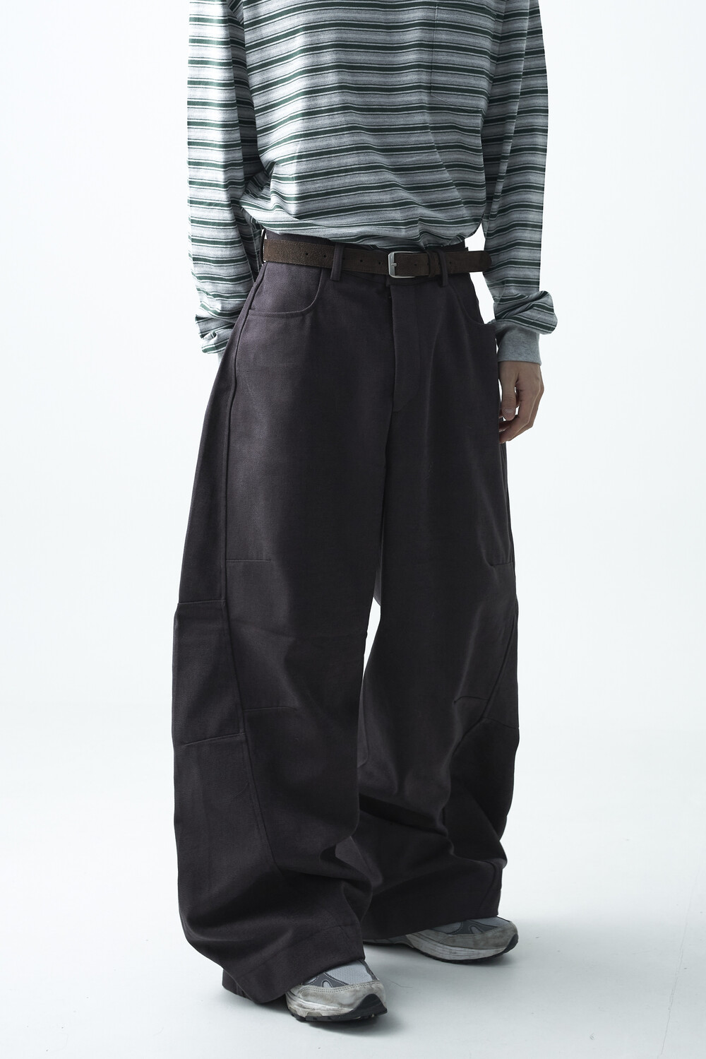 - 두꺼운 피치 코튼 소재감의 벌룬 와이드 팬츠 제품입니다. 따뜻한 겨울용 팬츠 제품으로 풍부한 볼륨감과 각 파츠의 절개 디테일로 입체적인 와이드 실루엣을 연출합니다.