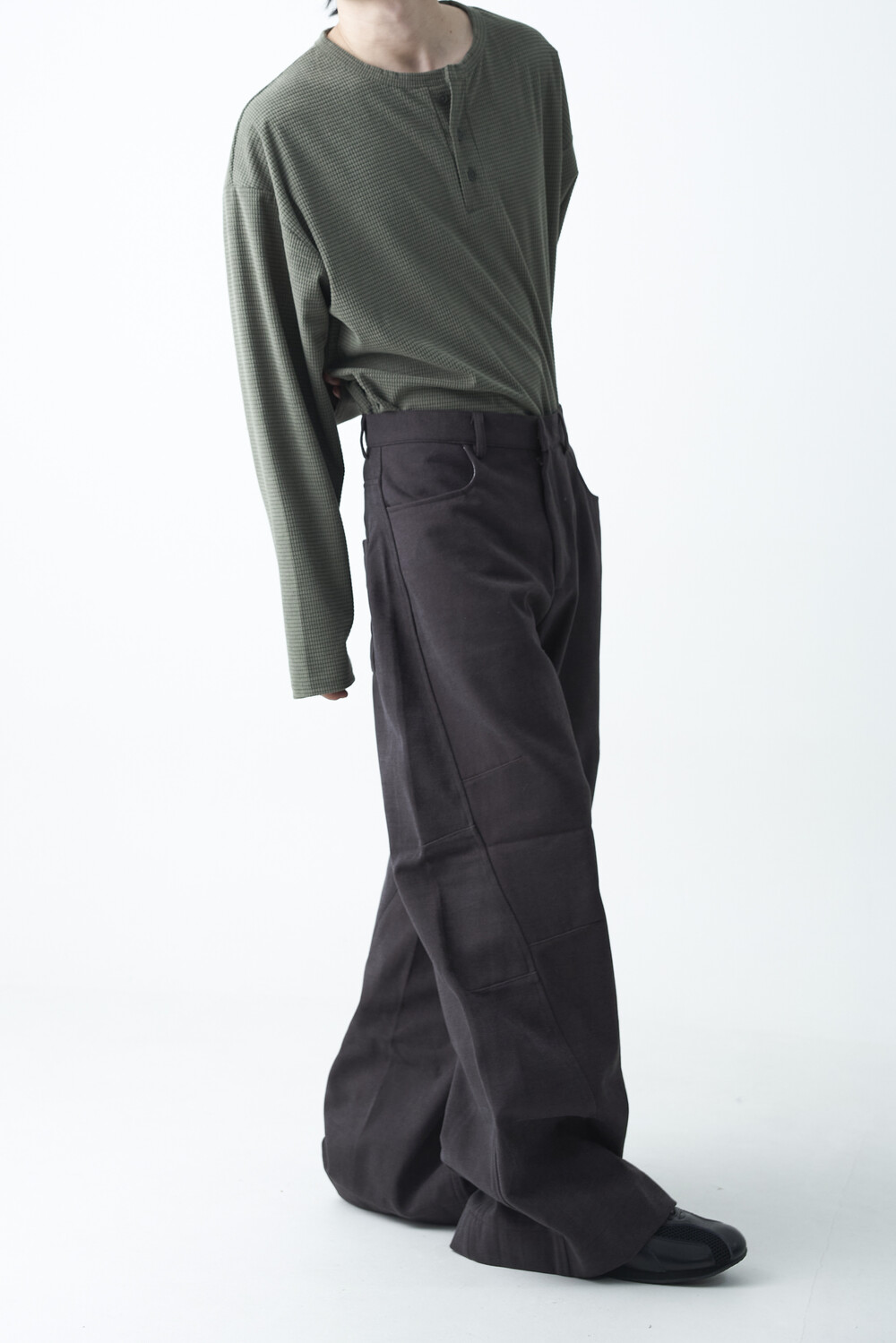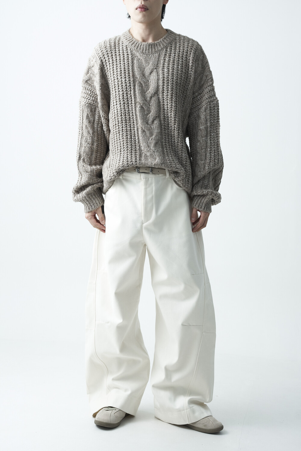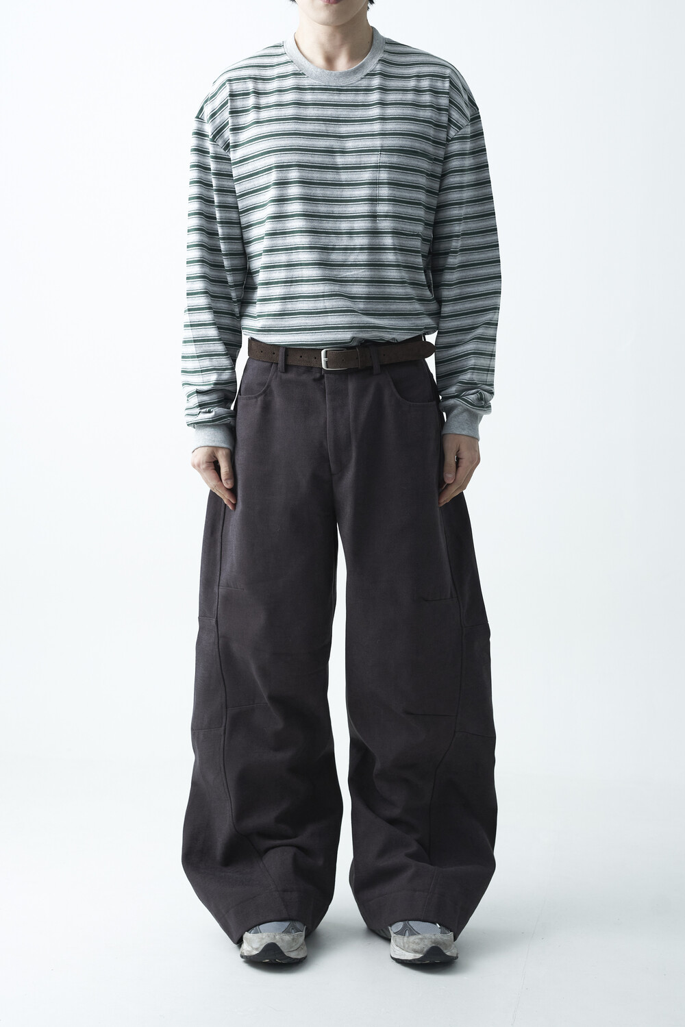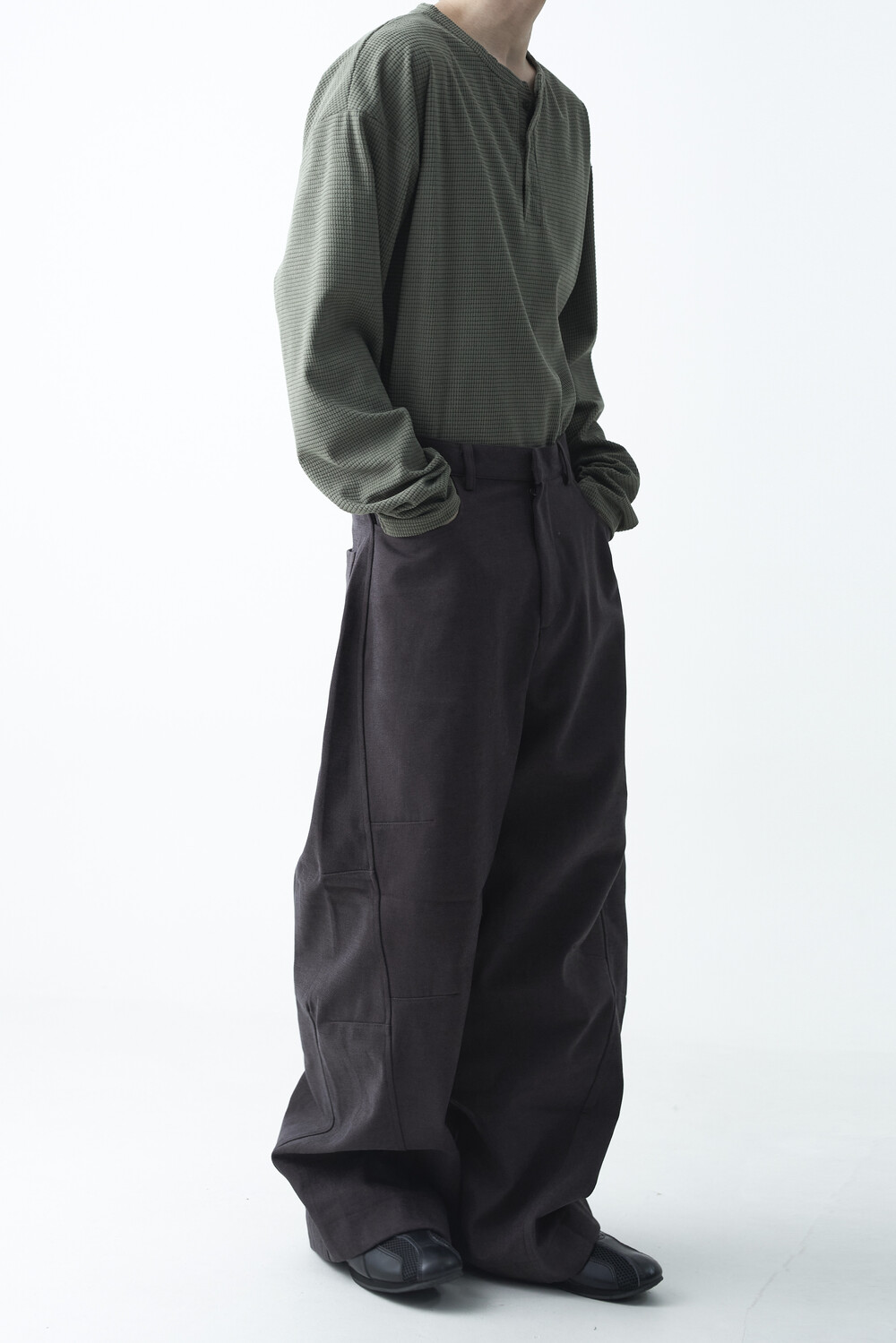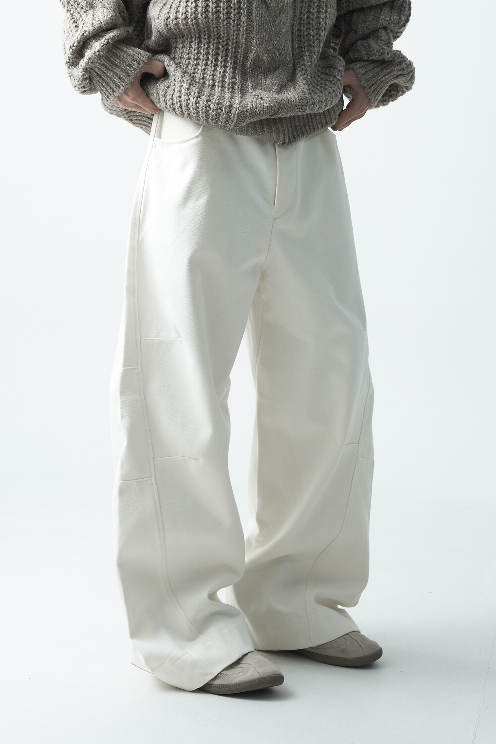 - 두꺼운 피치 코튼 소재감의 벌룬 와이드 팬츠 제품입니다. 따뜻한 겨울용 팬츠 제품으로 풍부한 볼륨감과 각 파츠의 절개 디테일로 입체적인 와이드 실루엣을 연출합니다.