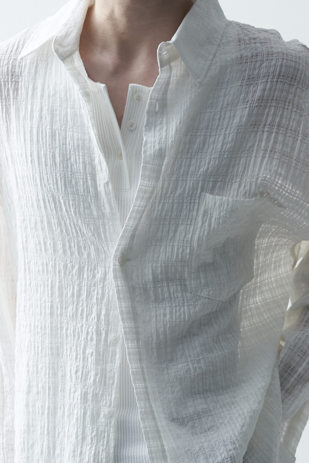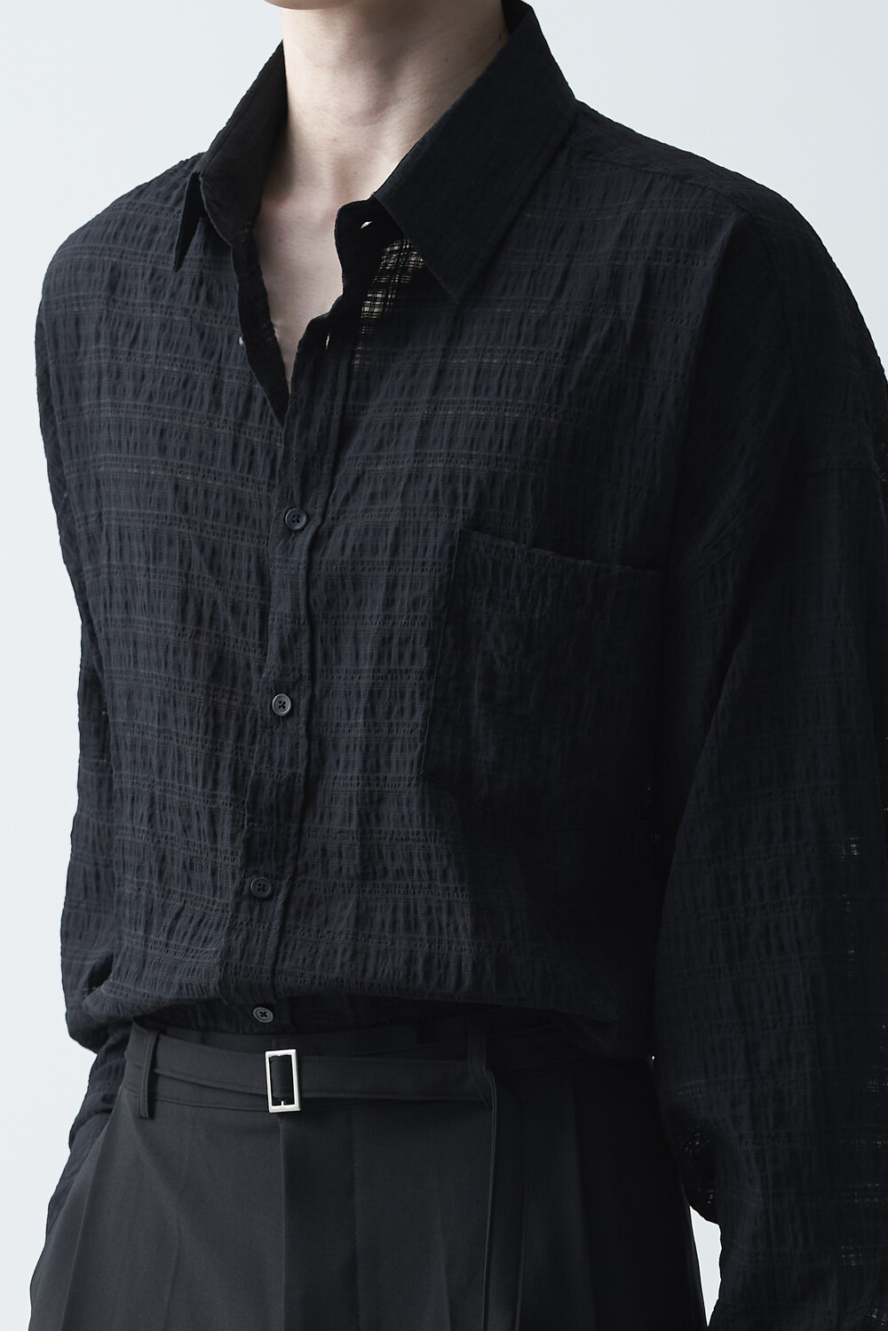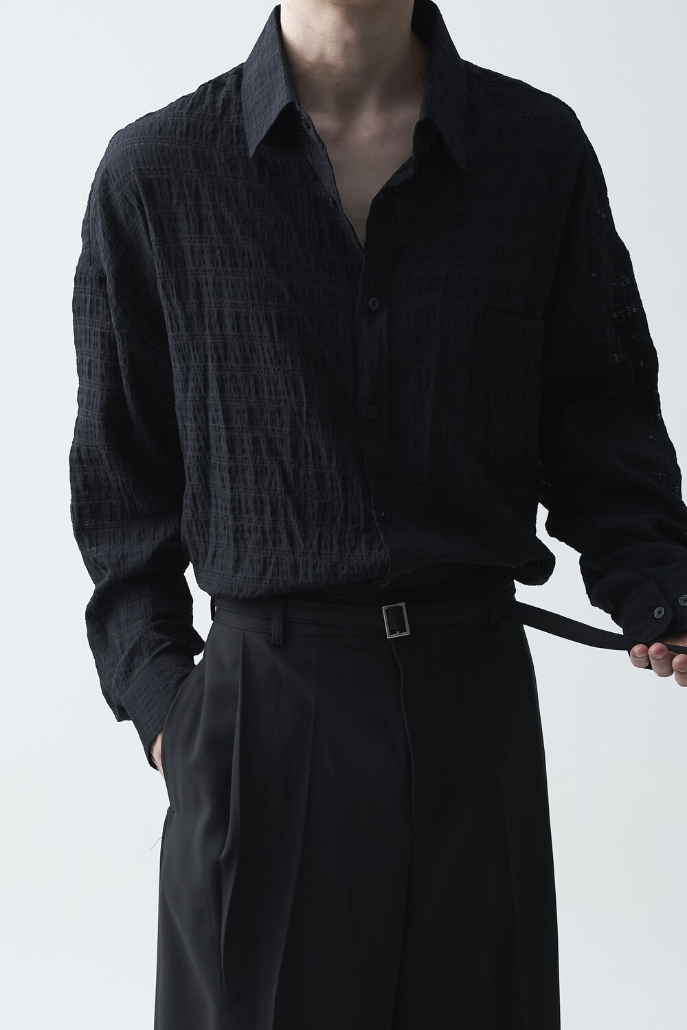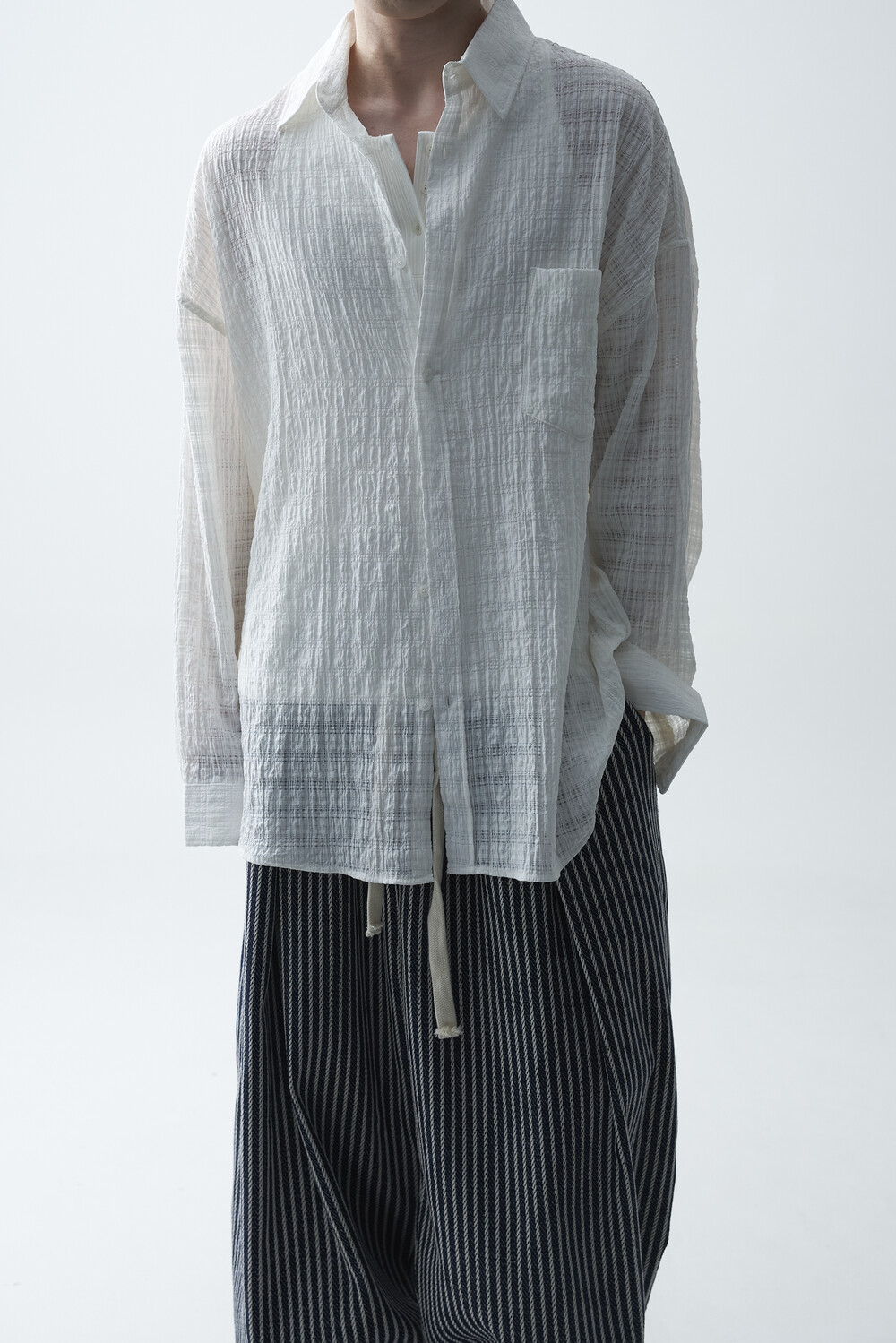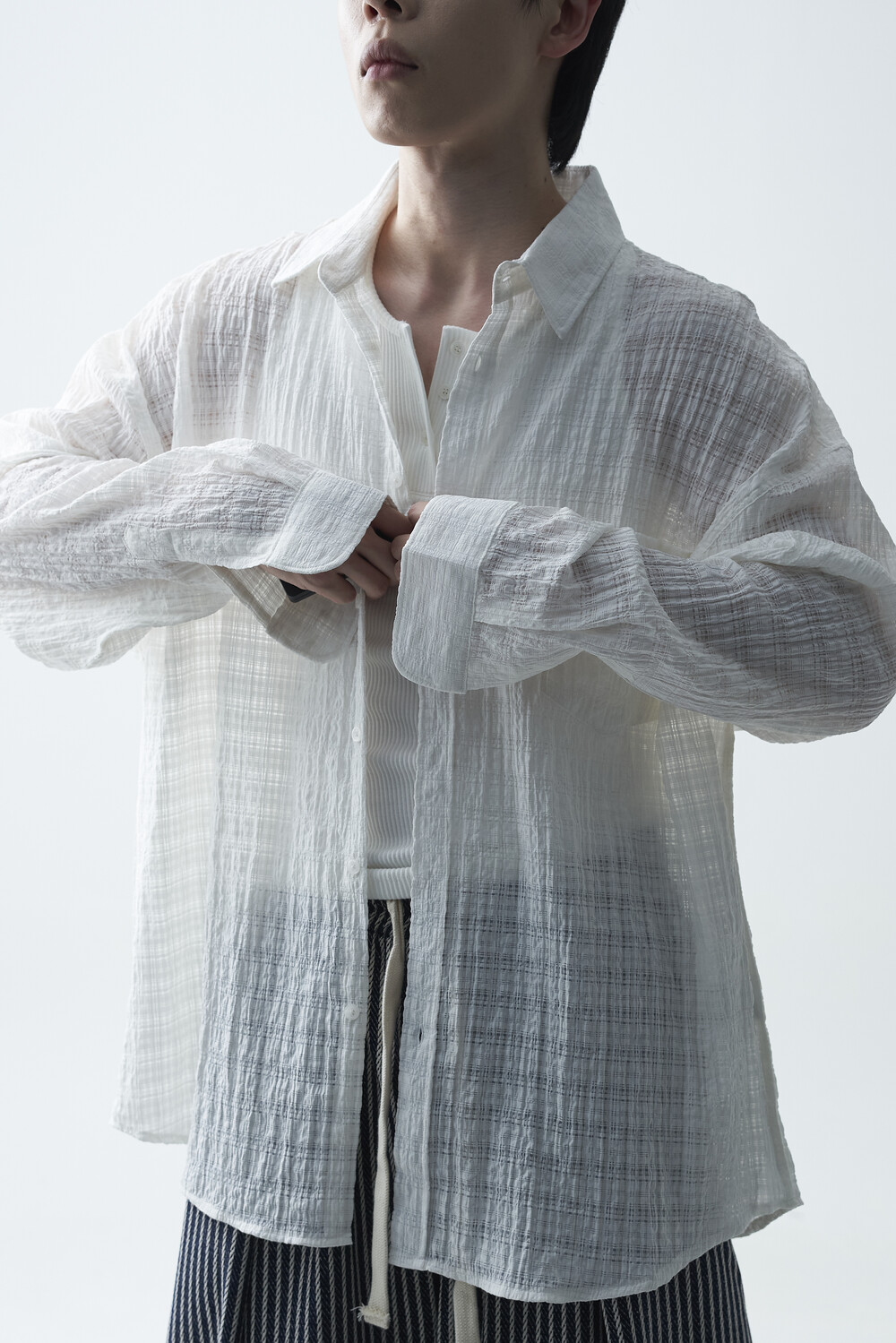 고급스러운 레이온 소재감을 주축으로 시스루 체크 패턴을 통해 시원한 착용감이 매력적입니다. 롱한 기장감으로 싱글 또는 아우터 겸 레이어드 코디를 추천드립니다.