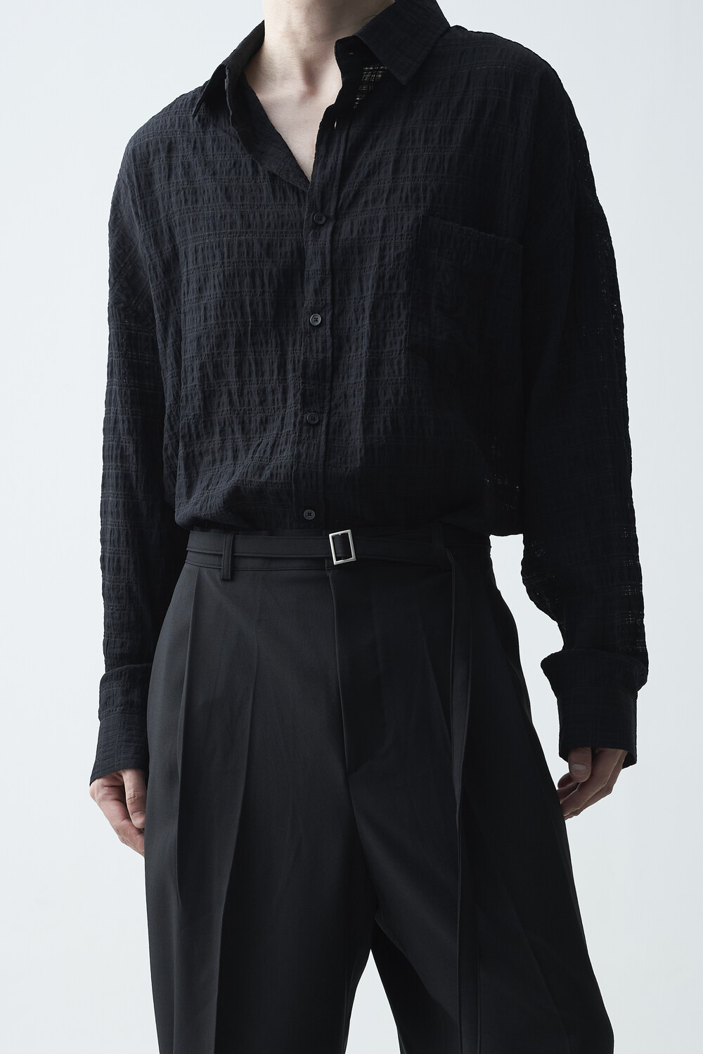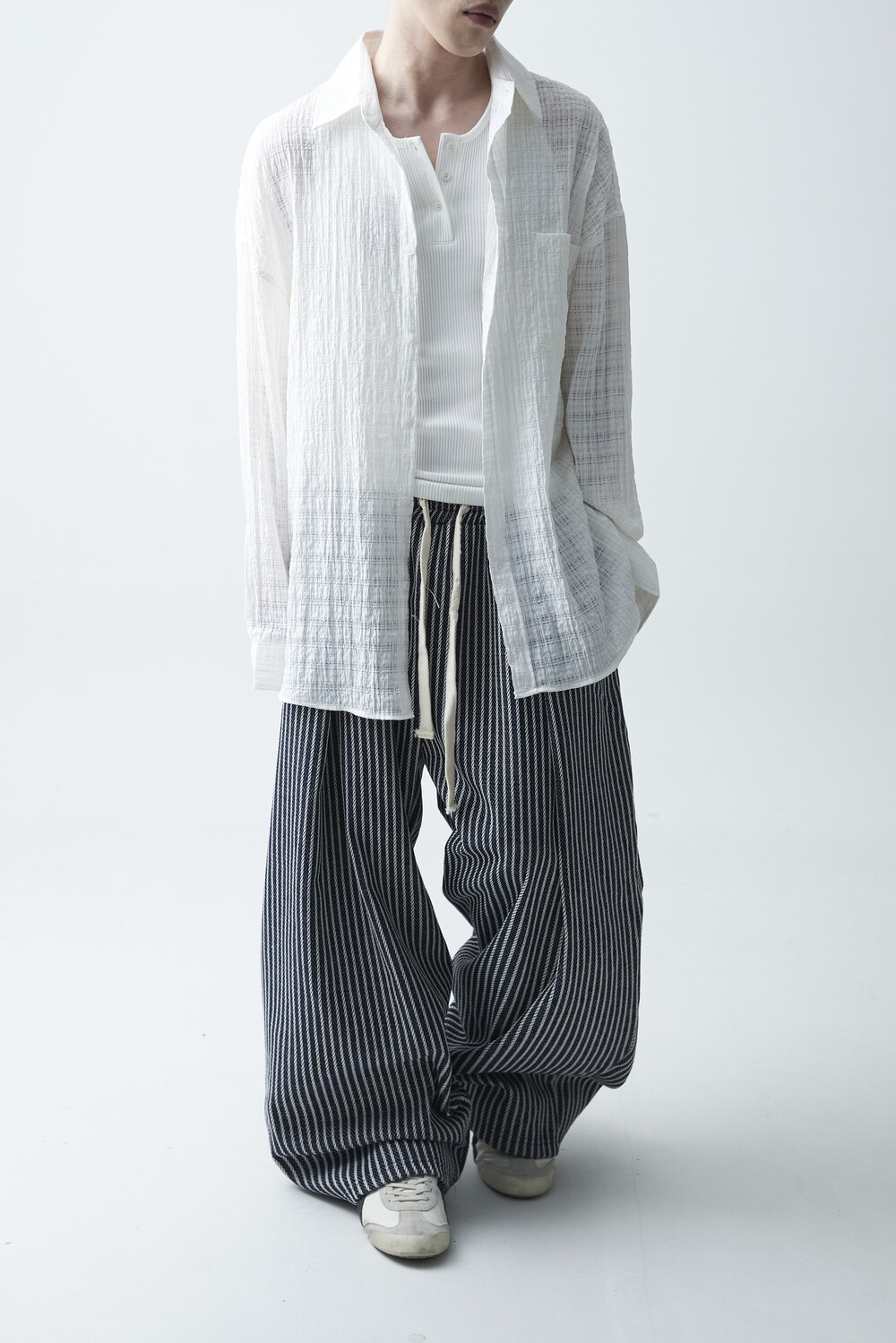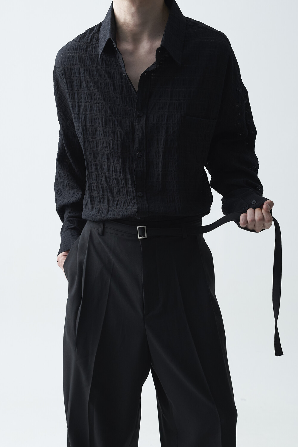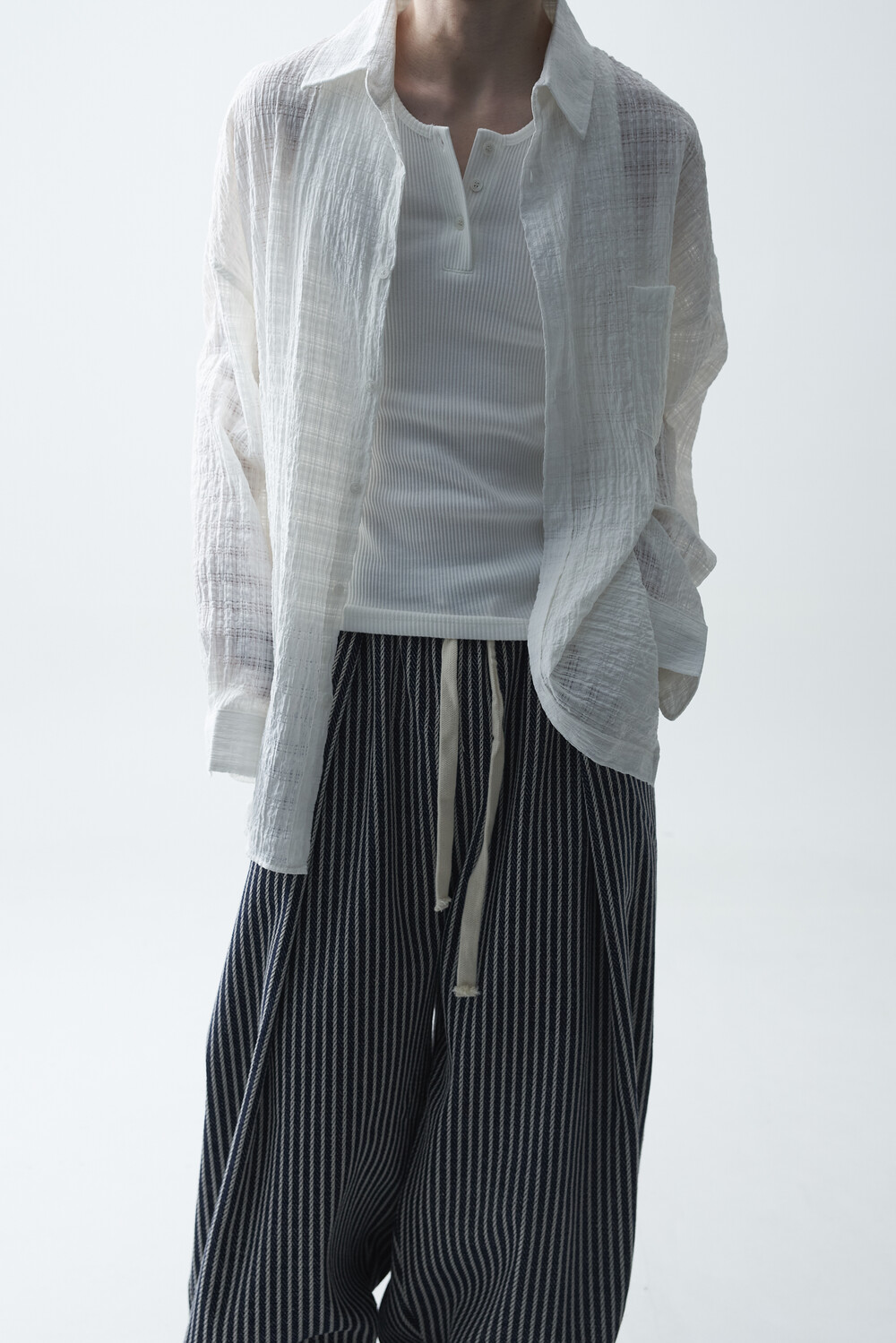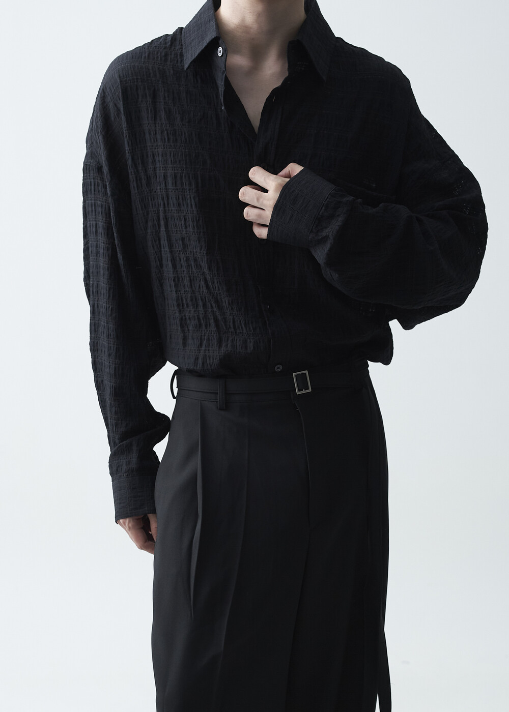 고급스러운 레이온 소재감을 주축으로 시스루 체크 패턴을 통해 시원한 착용감이 매력적입니다. 롱한 기장감으로 싱글 또는 아우터 겸 레이어드 코디를 추천드립니다.