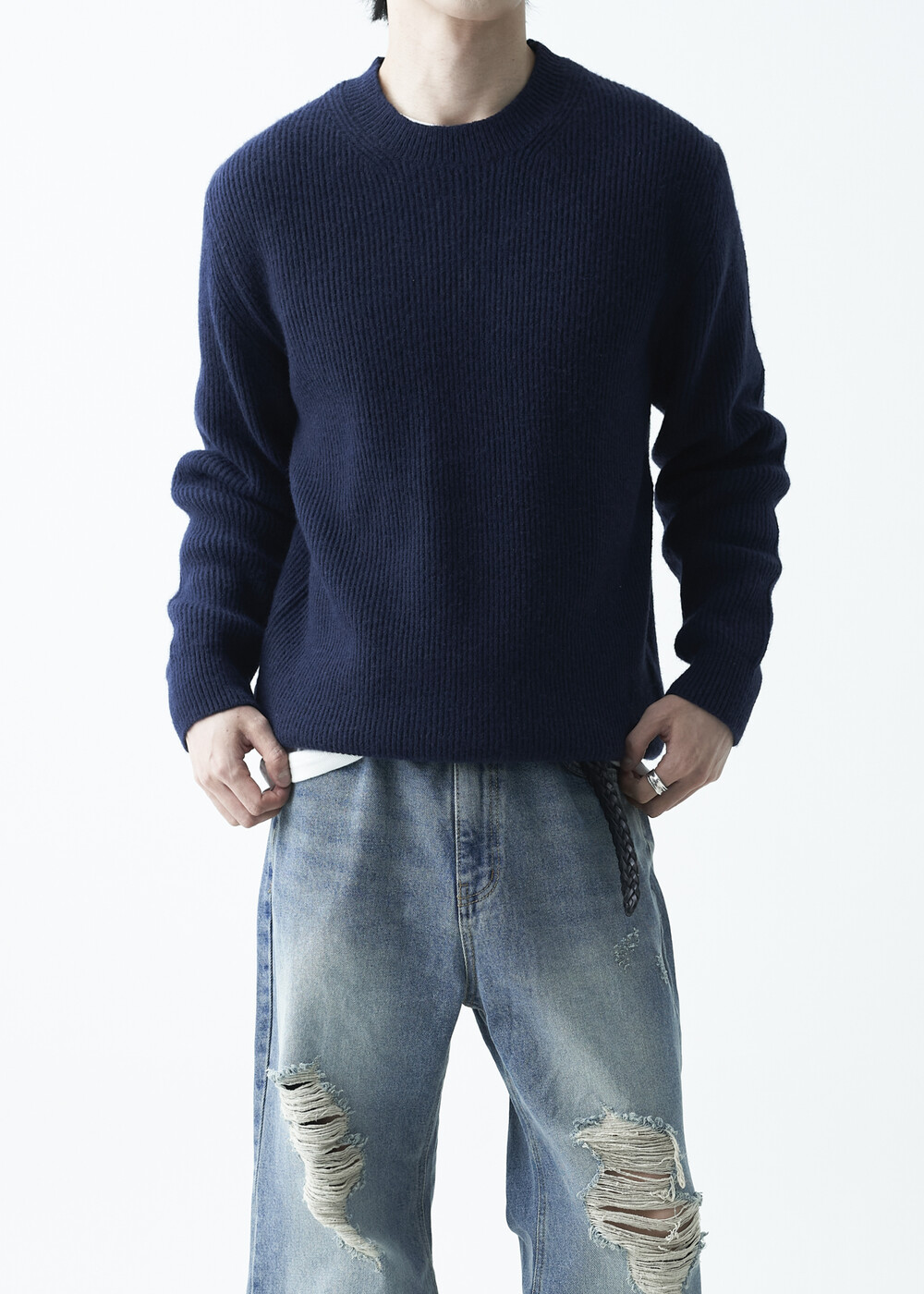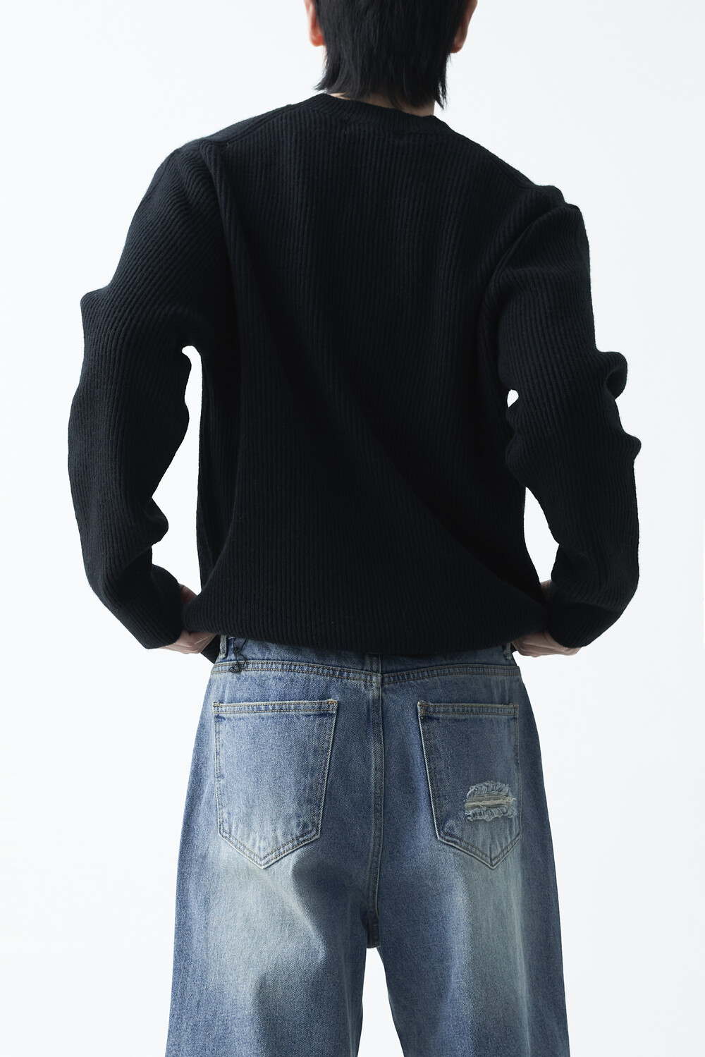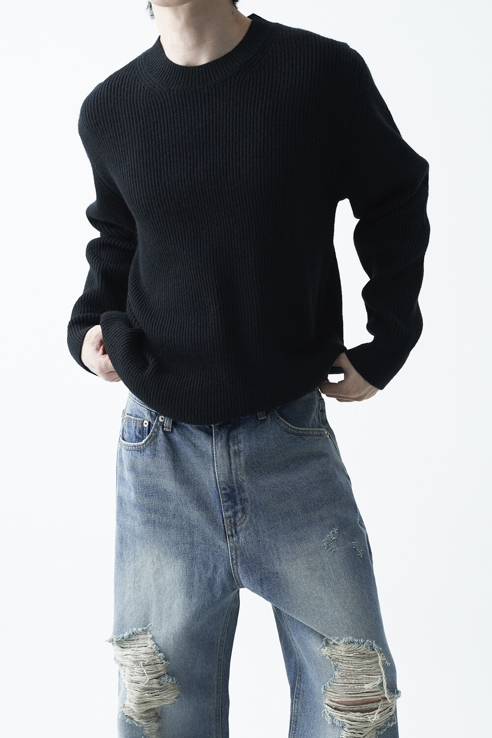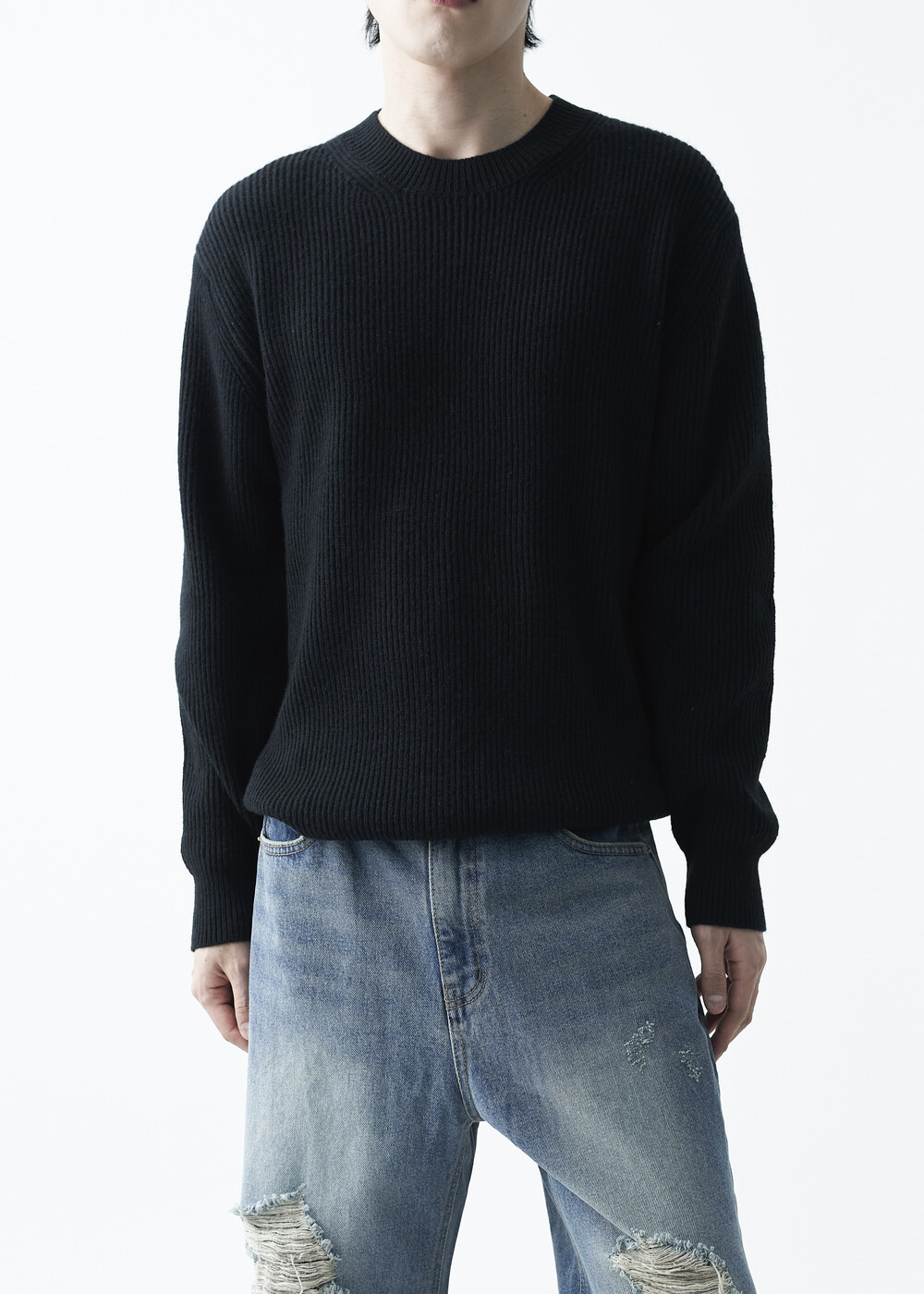 - 세미 오버핏 사이즈감의 하찌 라운드넥 니트 제품