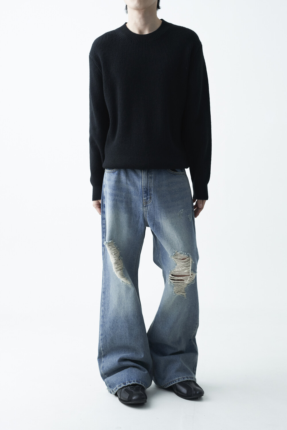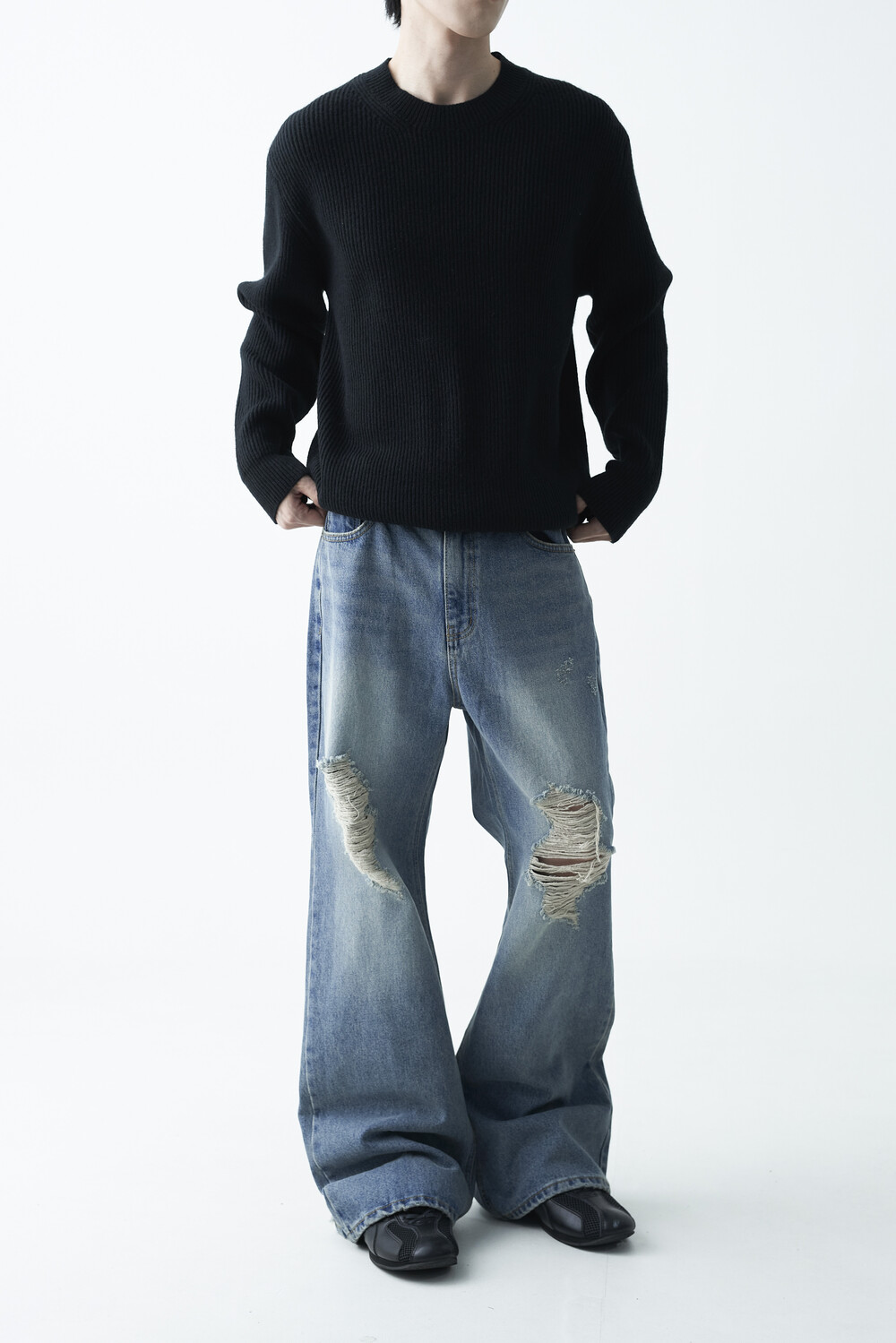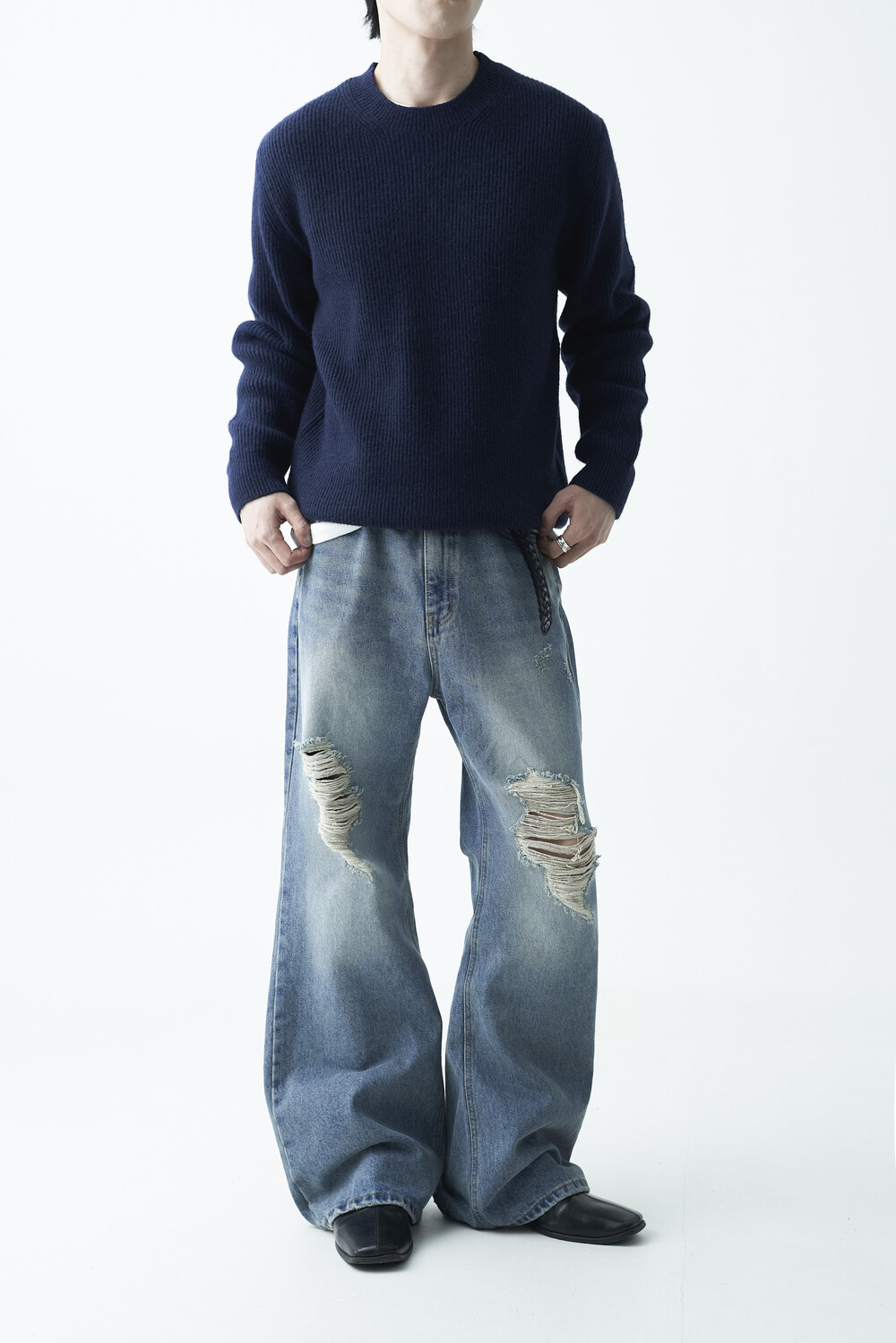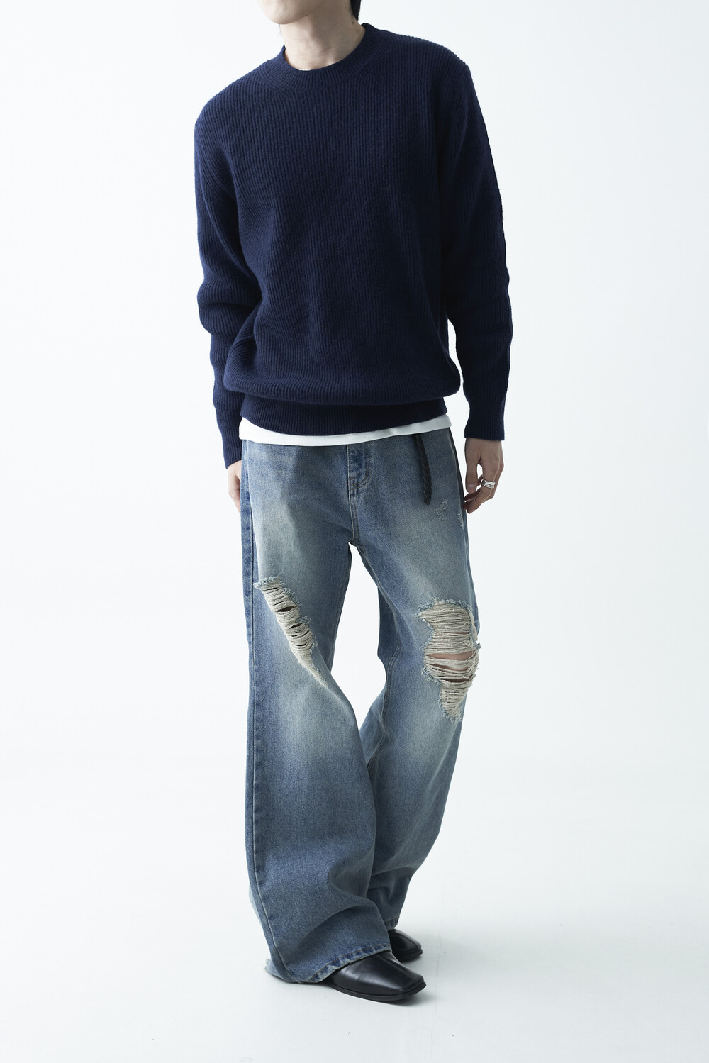 - 세미 오버핏 사이즈감의 하찌 라운드넥 니트 제품