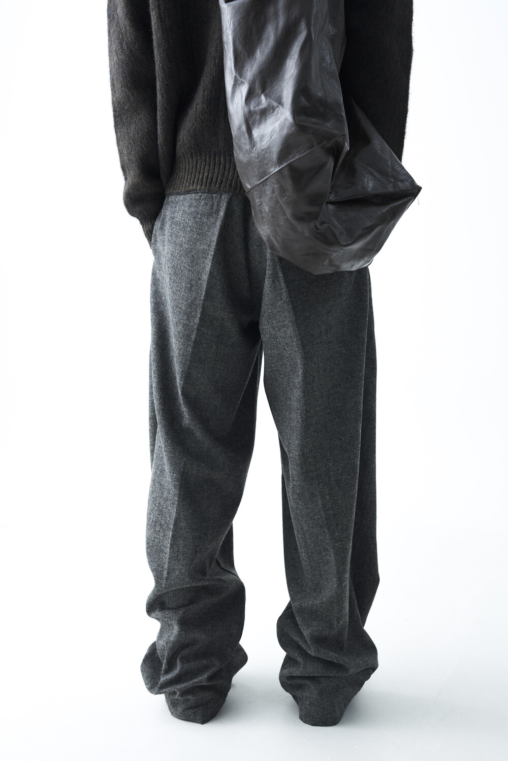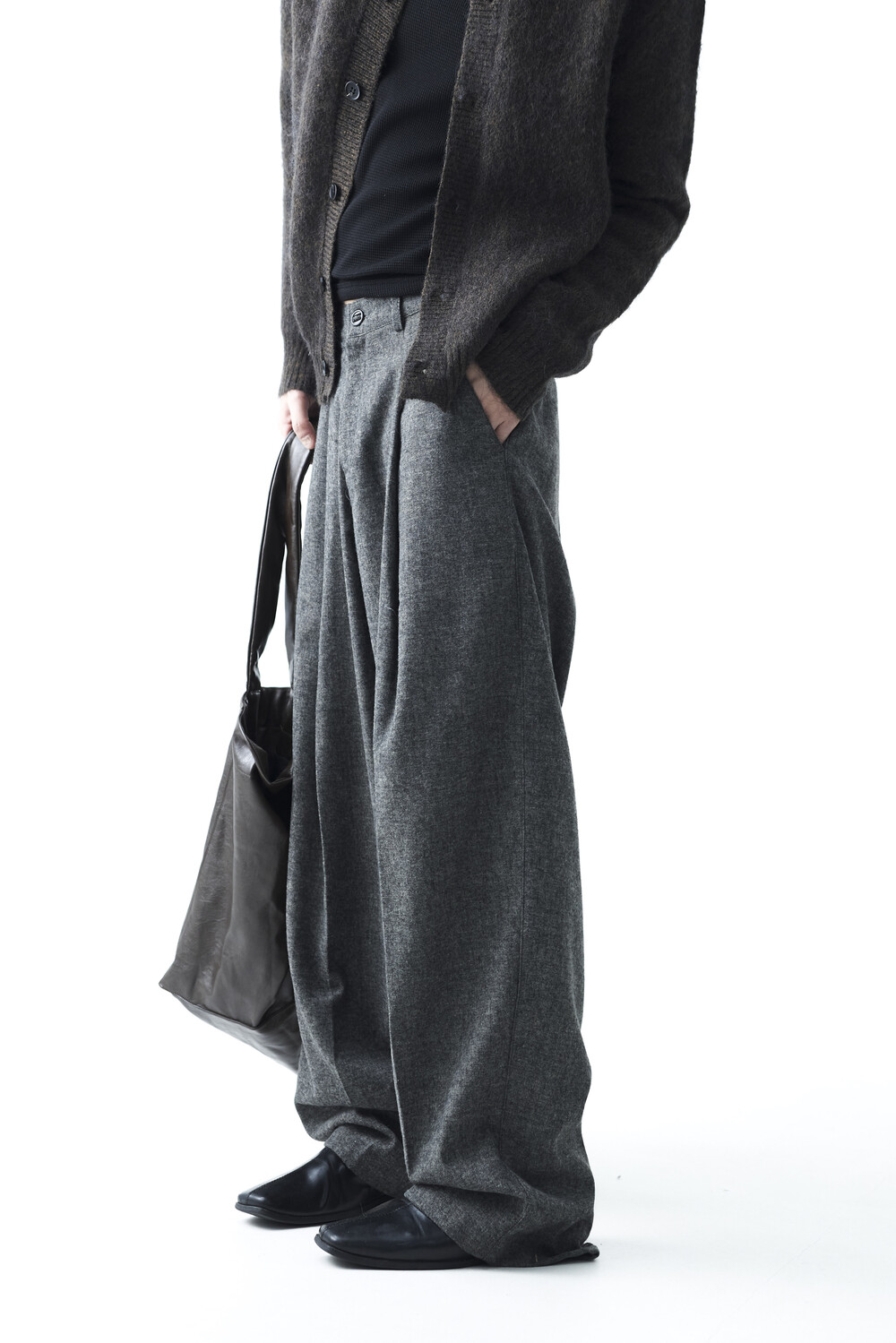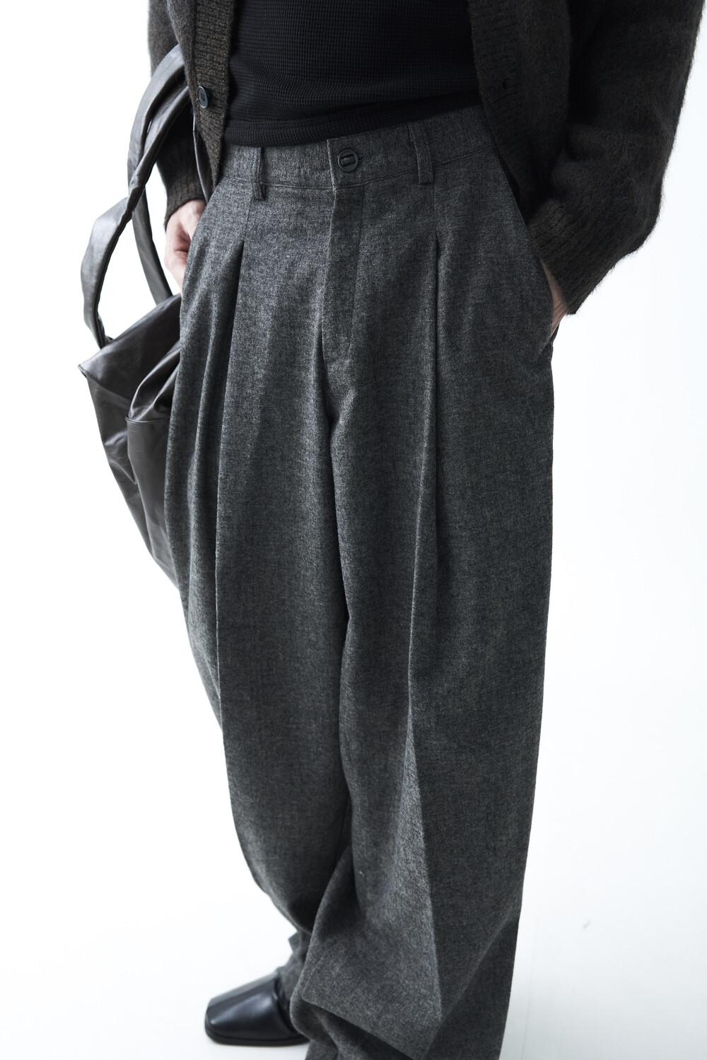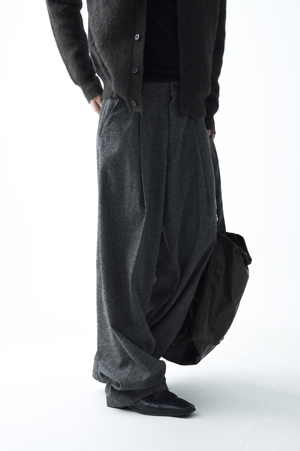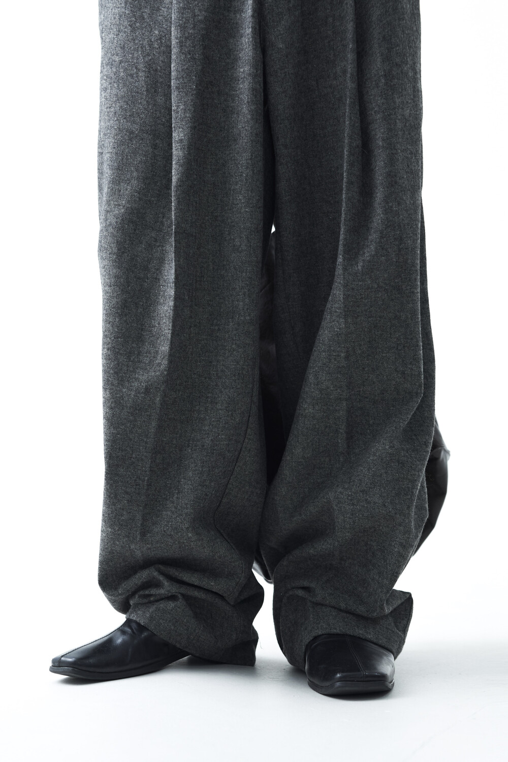 Formal wool wide tuck slacks