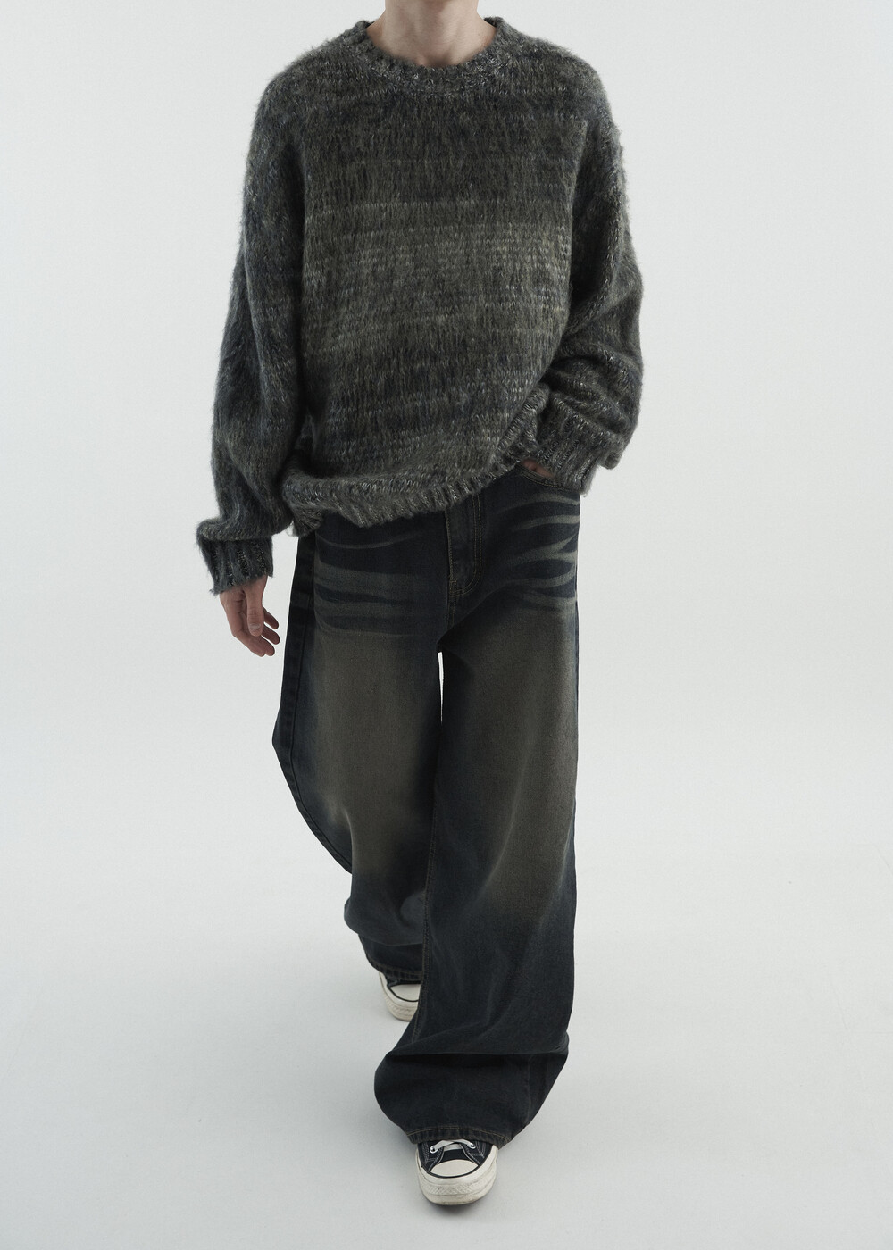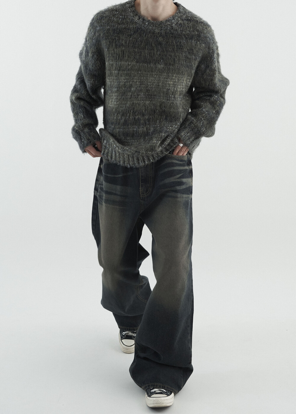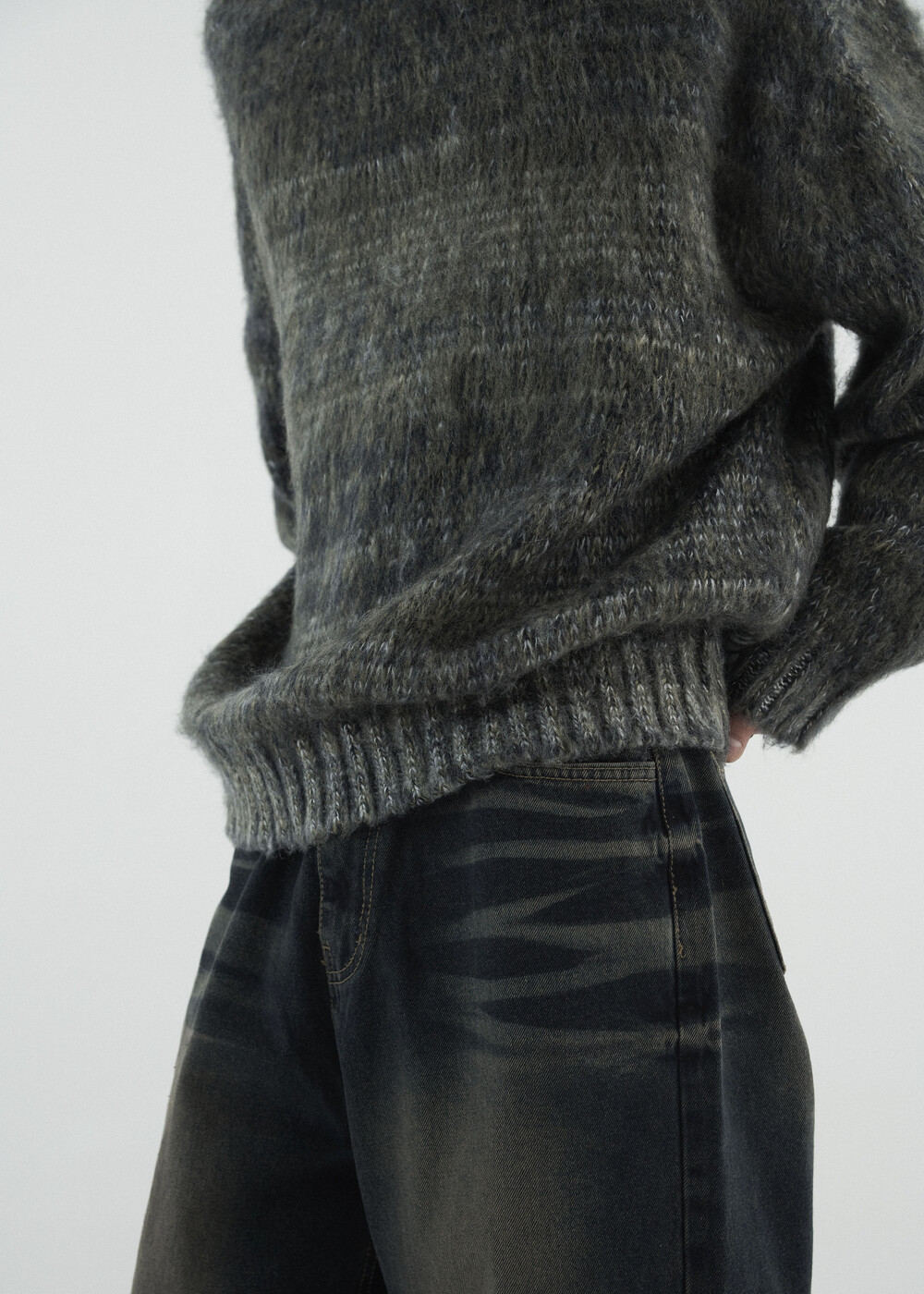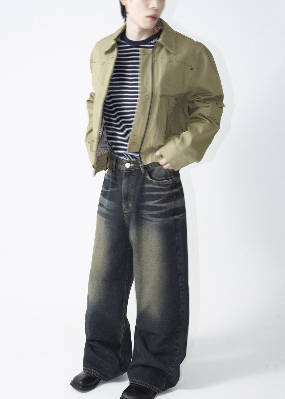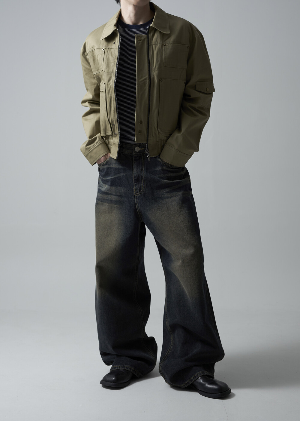 - 입체적인 캣워싱 가공 작업을 통해 볼드한 실루엣의 워싱 와이드 데님팬츠 제품