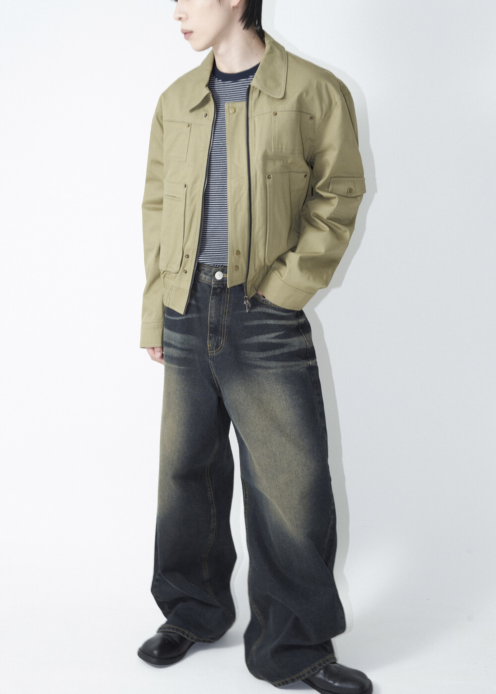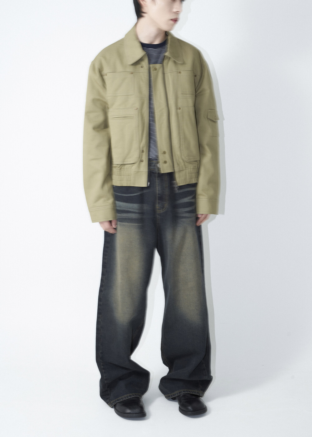 - 롱한 기장감과 전체적으로 오버와이드한 핏감이 무게감을 가지면서 툭 떨어지는 핏을 연출하며, 기존 캣브러쉬 디테일보다 더욱 딥하게 들어간 워싱 작업을 통해 더욱 눈에 띄는 물결 자국이 매력적인 제품입니다.