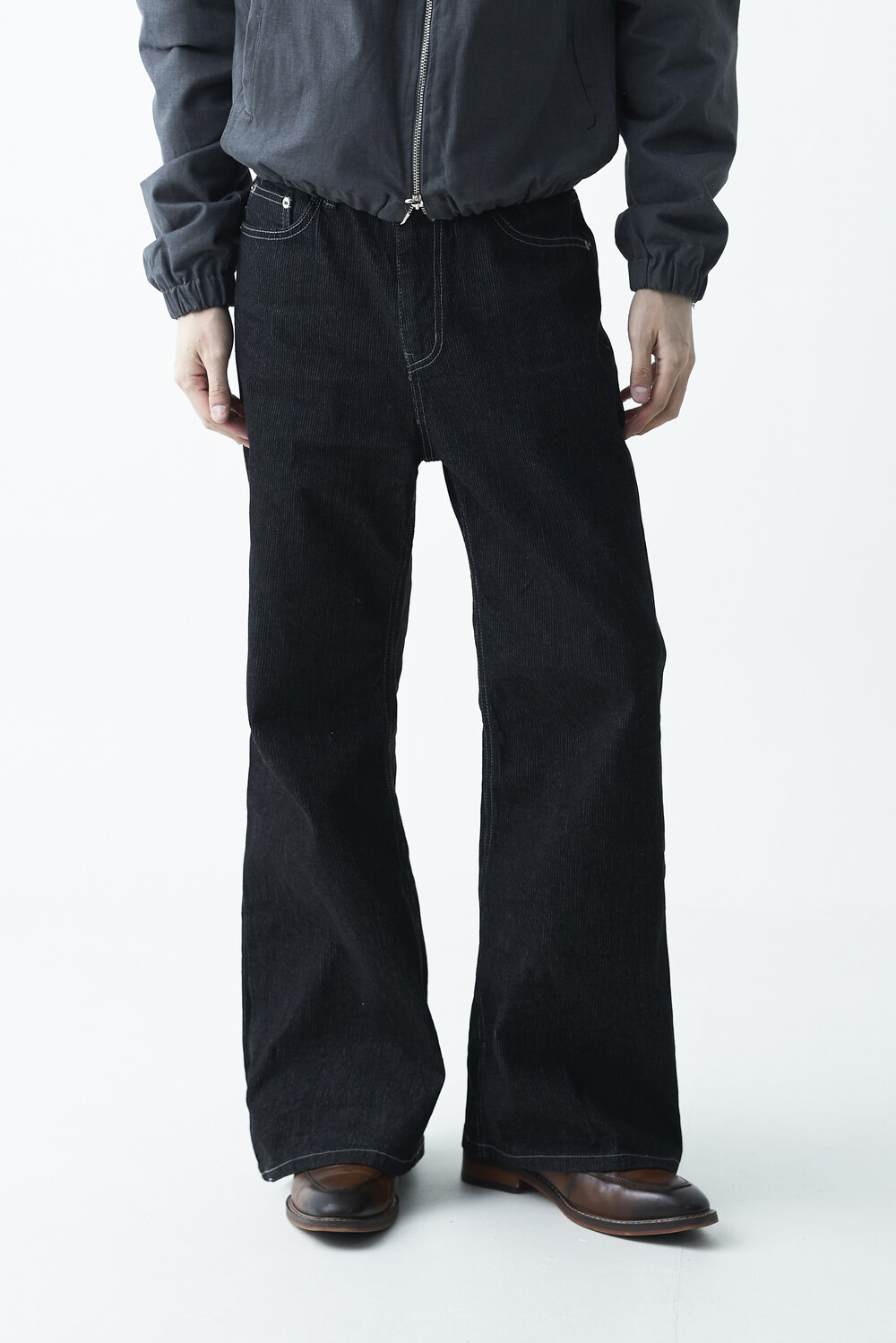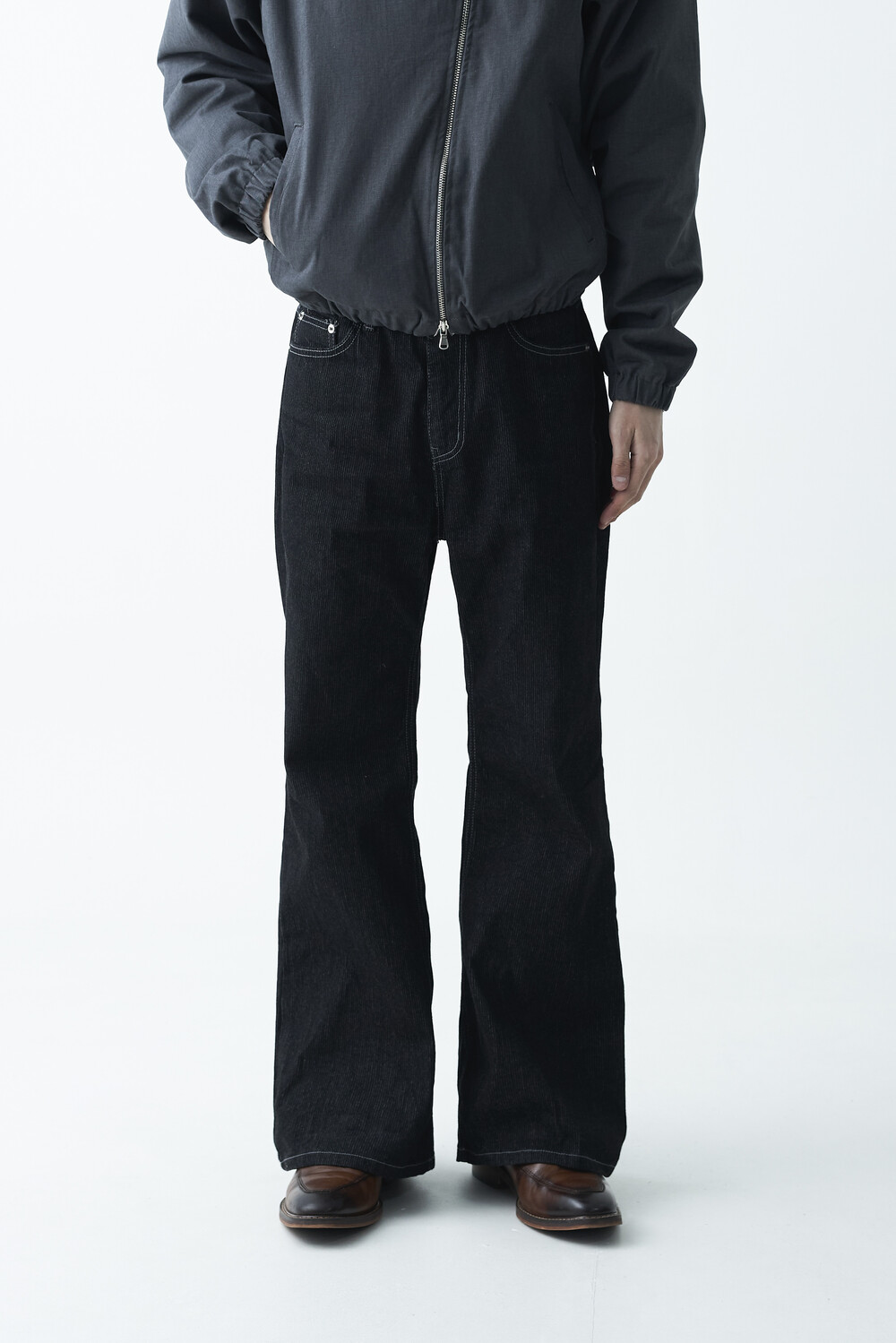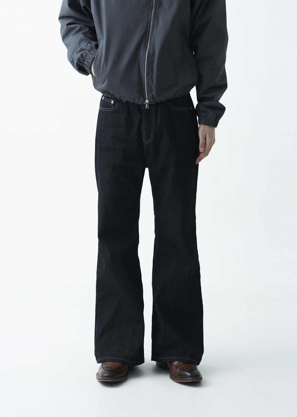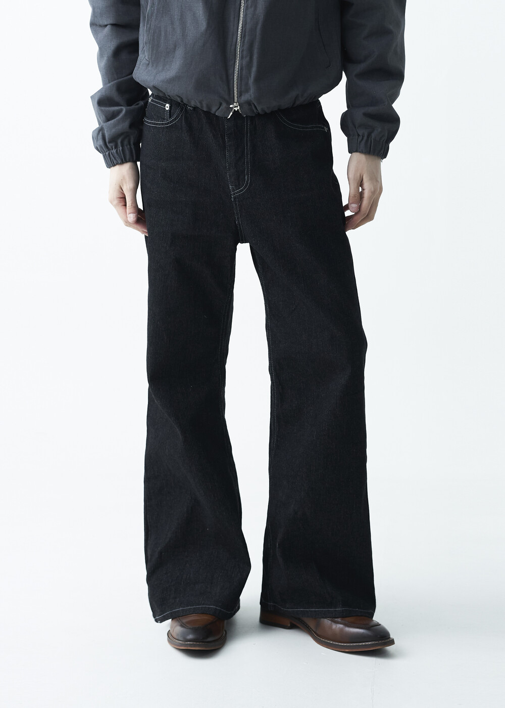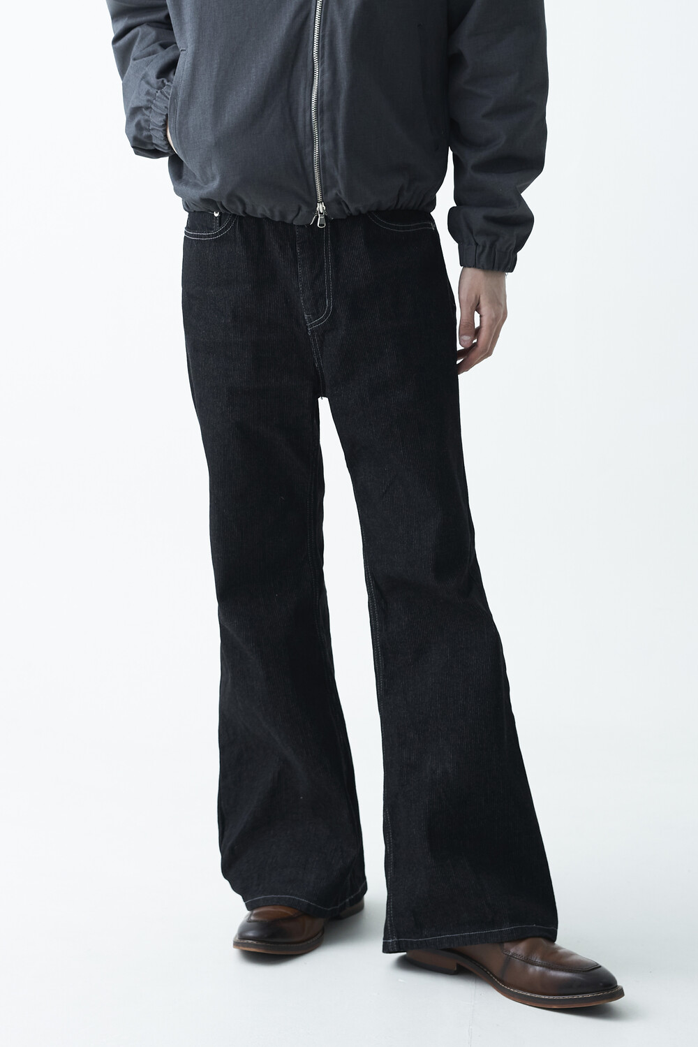 매력적인 골지 텍스쳐와 스티치 디테일이 함께 담긴 코튼 데님 팬츠 제품으로 플레어 와이드 핏이 멋스럽게 표현되는 팬츠입니다.