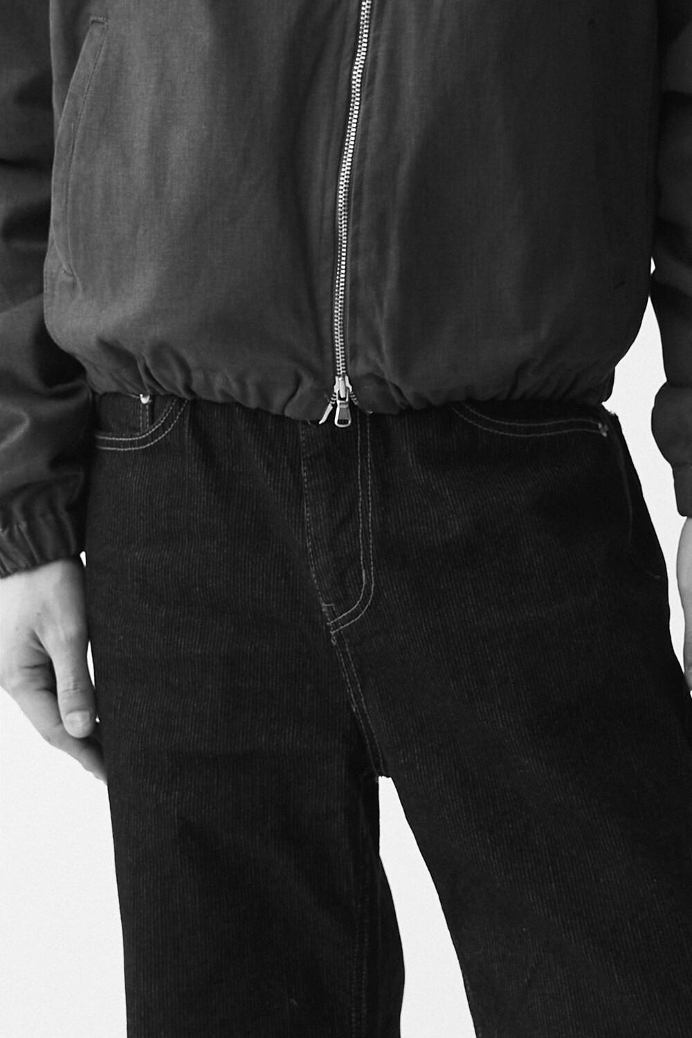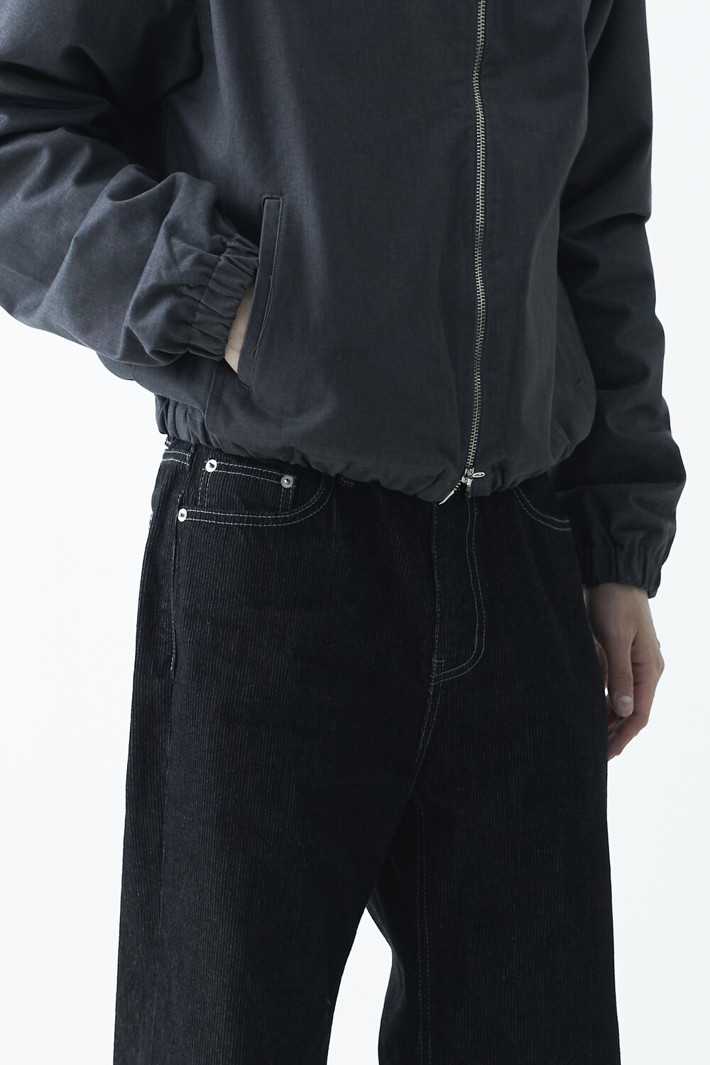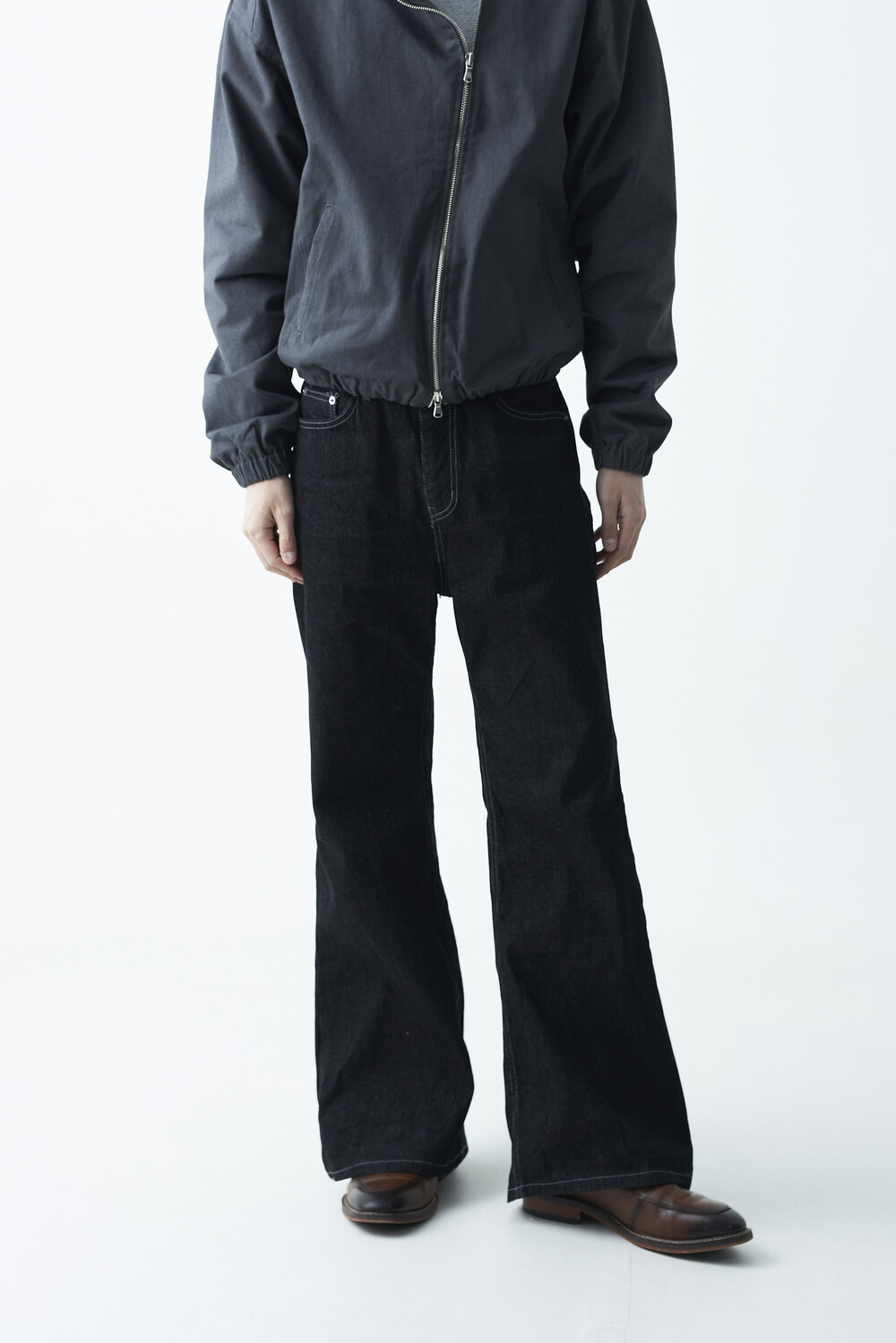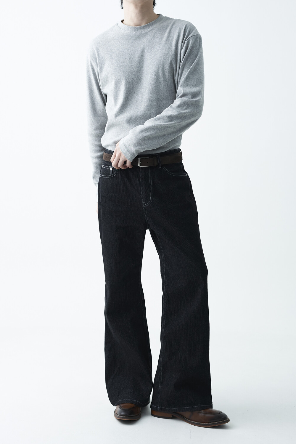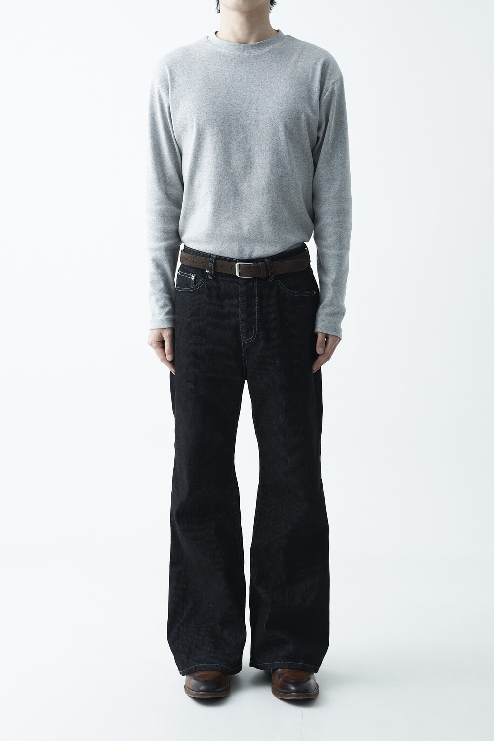 매력적인 골지 텍스쳐와 스티치 디테일이 함께 담긴 코튼 데님 팬츠 제품으로 플레어 와이드 핏이 멋스럽게 표현되는 팬츠입니다.