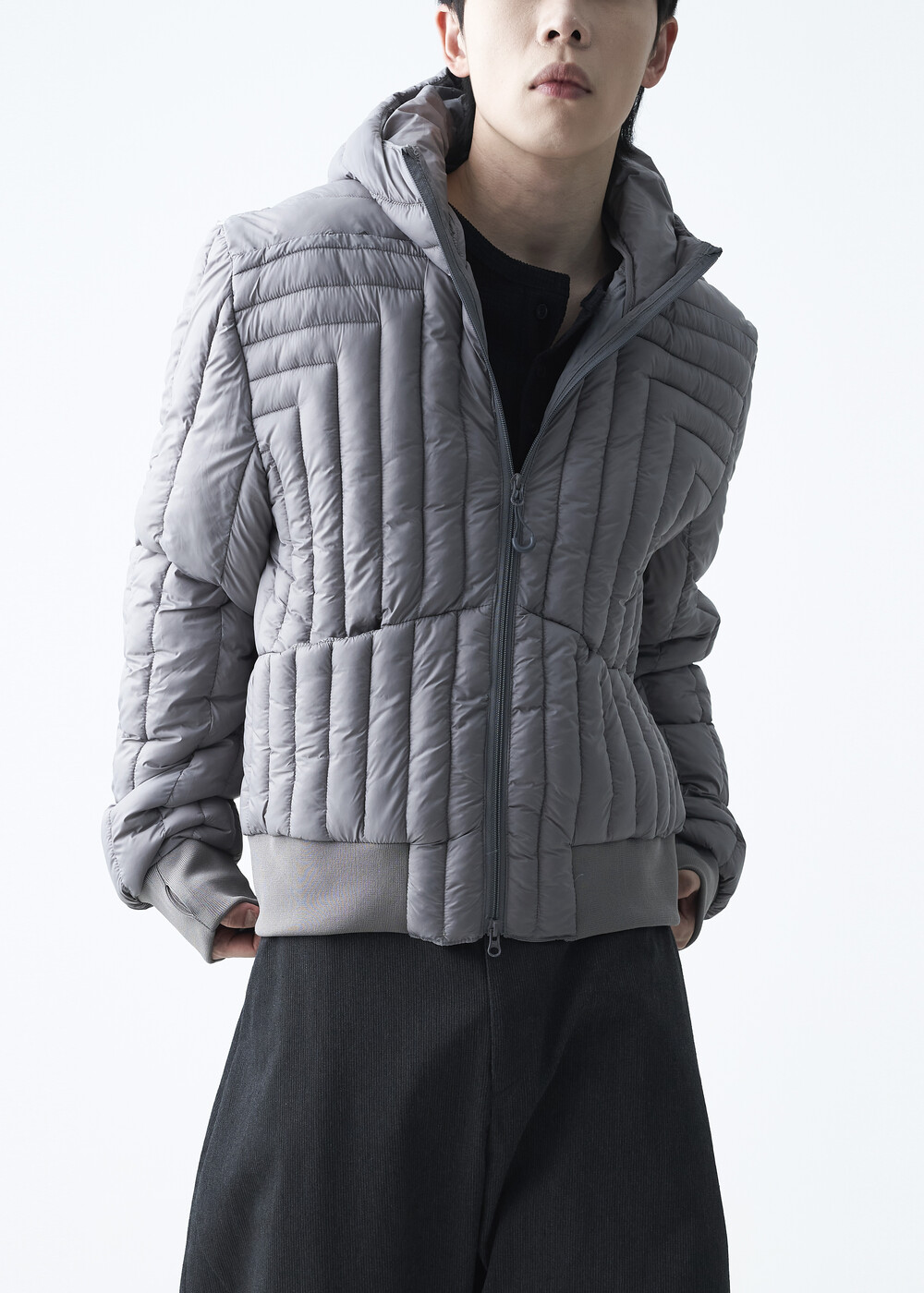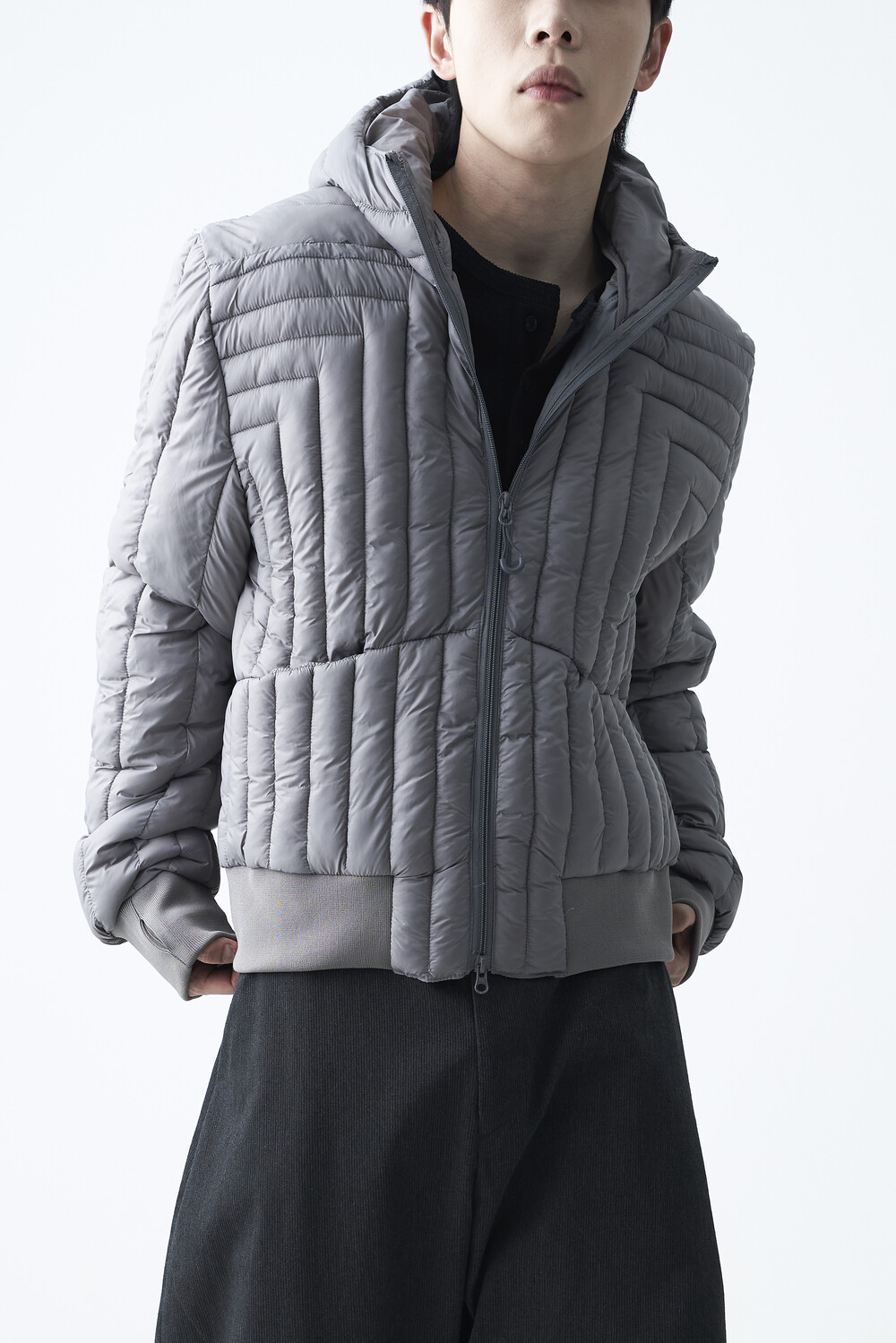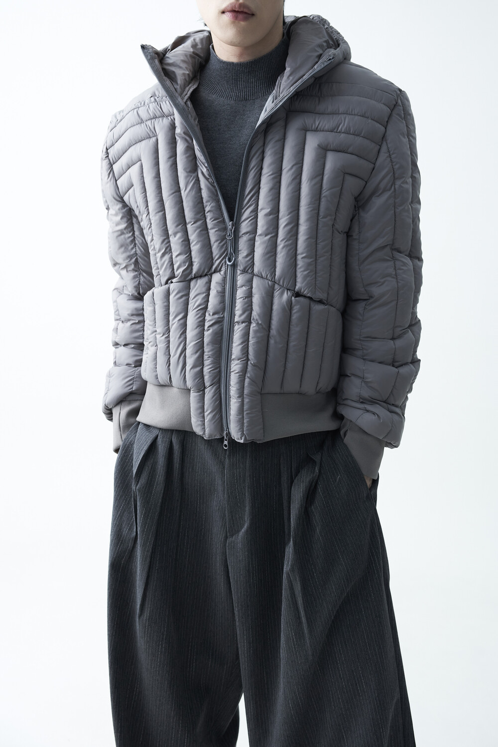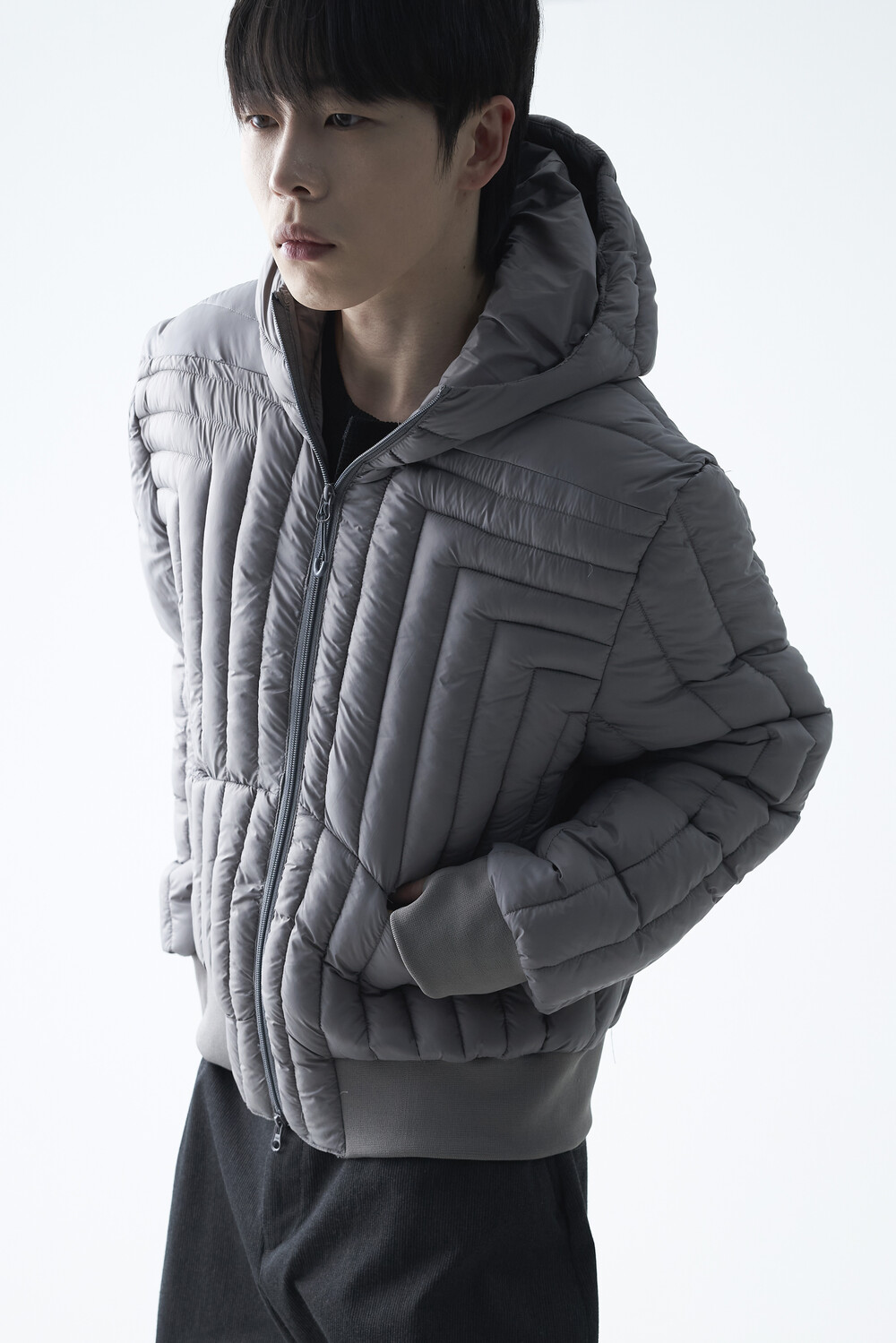 - 유니크한 절개 라인 디테일의 크롭 경량 패딩 제품, 겉면 나일론 소재와 안감 덕다운+웰론 혼방으로 만족스러운 보온성과 합리적인 가격대로 준비되었습니다. 8cm의 롱한 소매 밴딩에는 핑거링 디테일이 추가되어 더욱 캐쥬얼한 스타일을 연출 하실 수 있습니다.