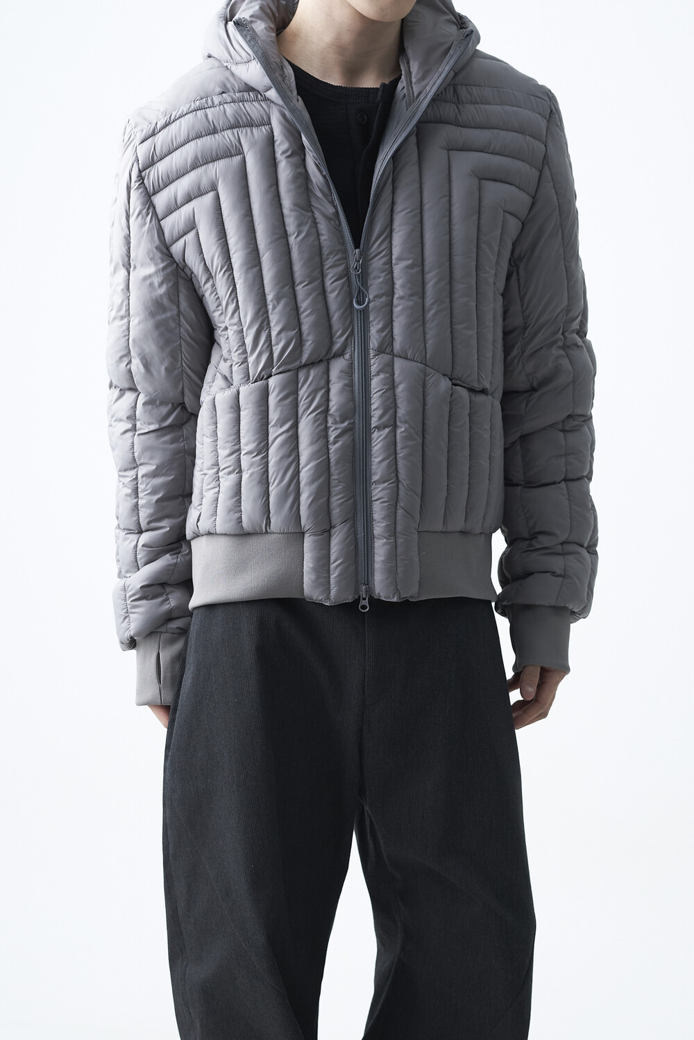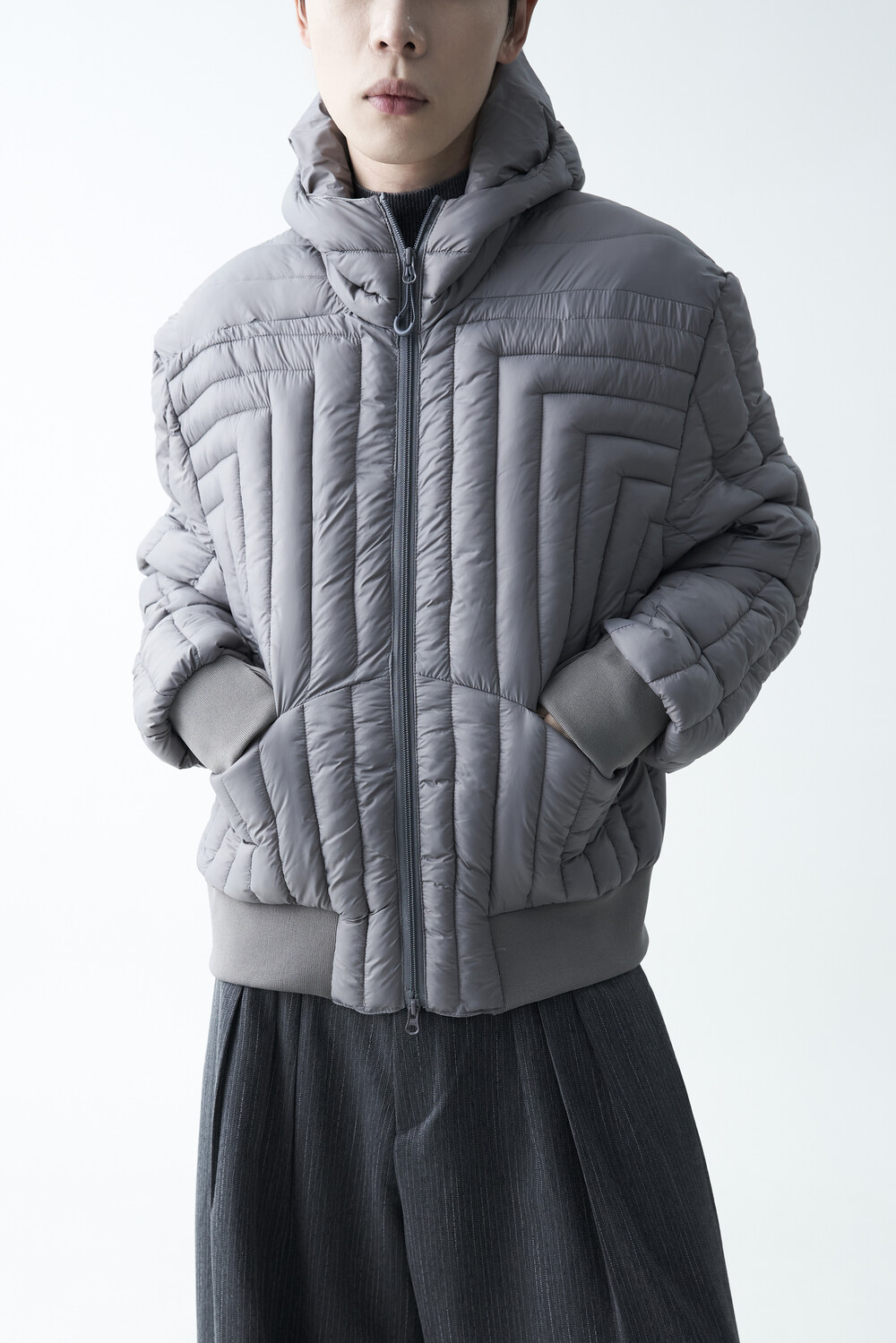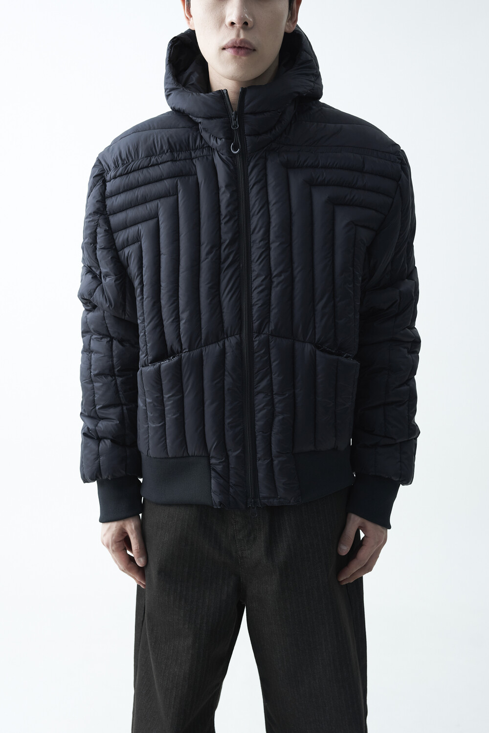 - 유니크한 절개 라인 디테일의 크롭 경량 패딩 제품, 겉면 나일론 소재와 안감 덕다운+웰론 혼방으로 만족스러운 보온성과 합리적인 가격대로 준비되었습니다. 8cm의 롱한 소매 밴딩에는 핑거링 디테일이 추가되어 더욱 캐쥬얼한 스타일을 연출 하실 수 있습니다.