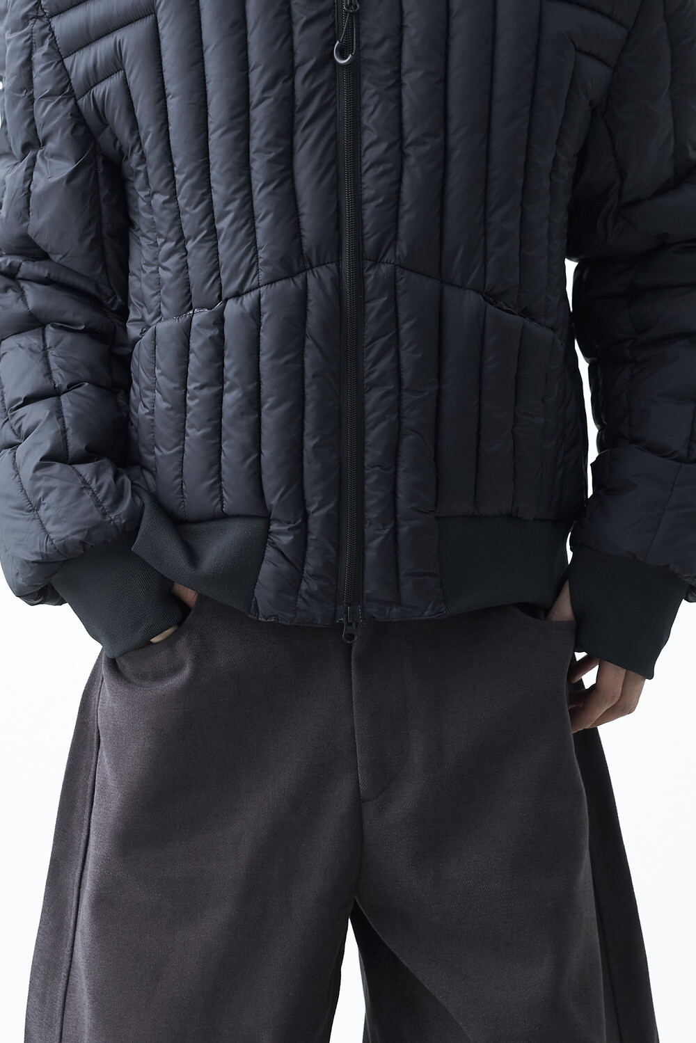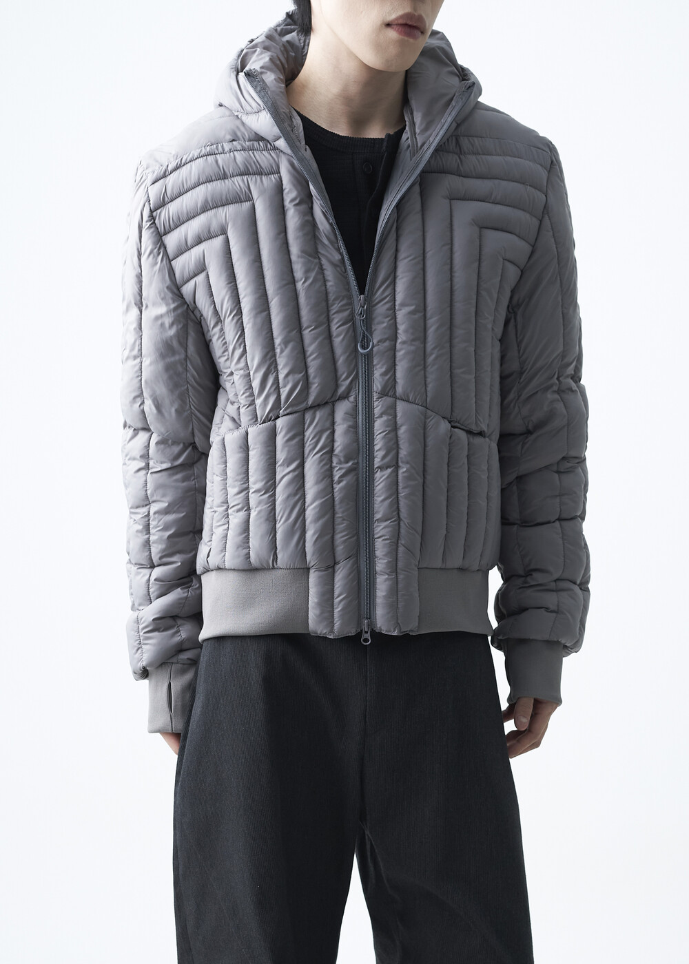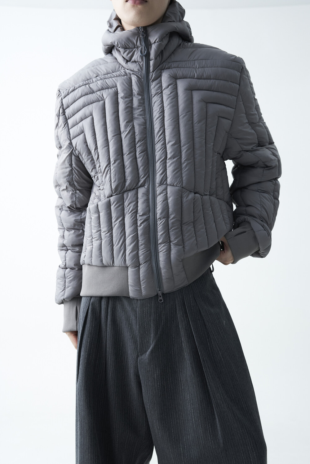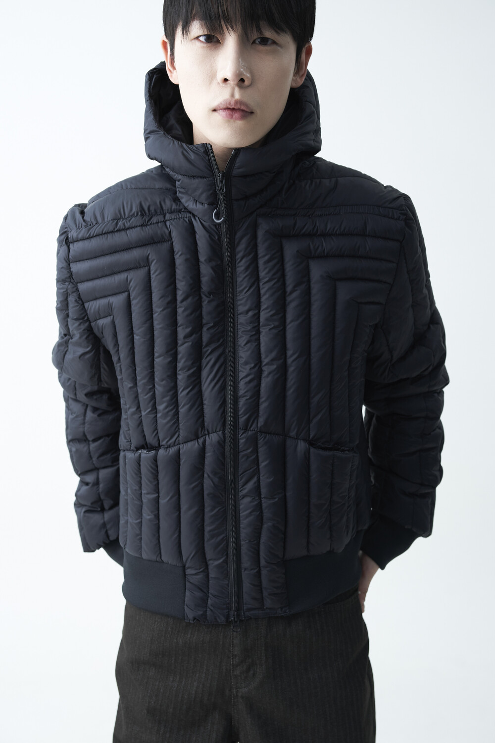 - 유니크한 절개 라인 디테일의 크롭 경량 패딩 제품, 겉면 나일론 소재와 안감 덕다운+웰론 혼방으로 만족스러운 보온성과 합리적인 가격대로 준비되었습니다. 8cm의 롱한 소매 밴딩에는 핑거링 디테일이 추가되어 더욱 캐쥬얼한 스타일을 연출 하실 수 있습니다.