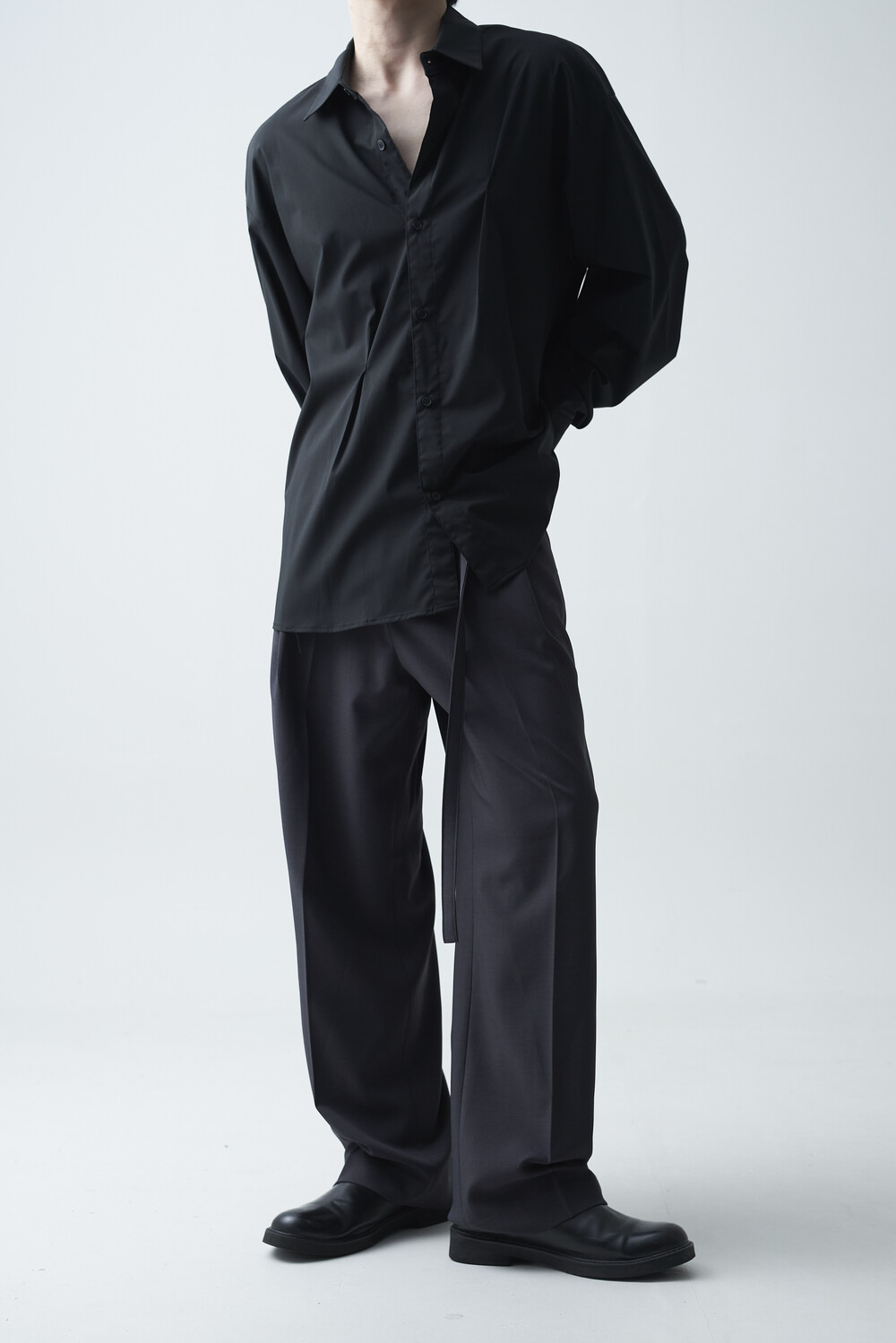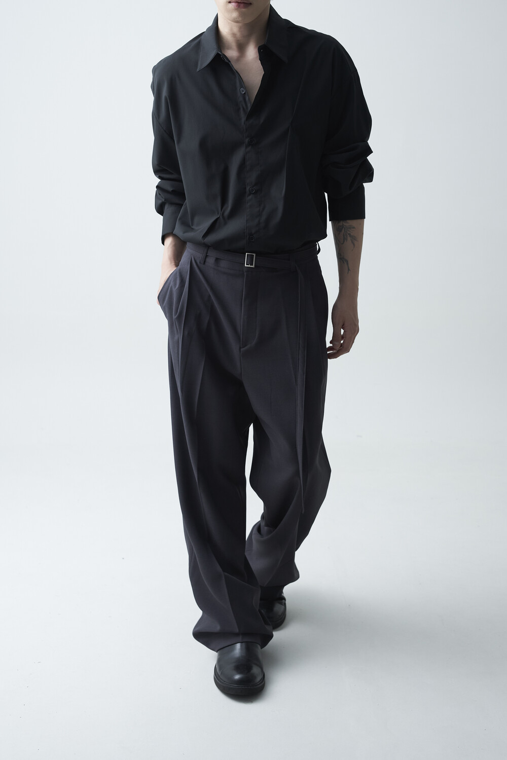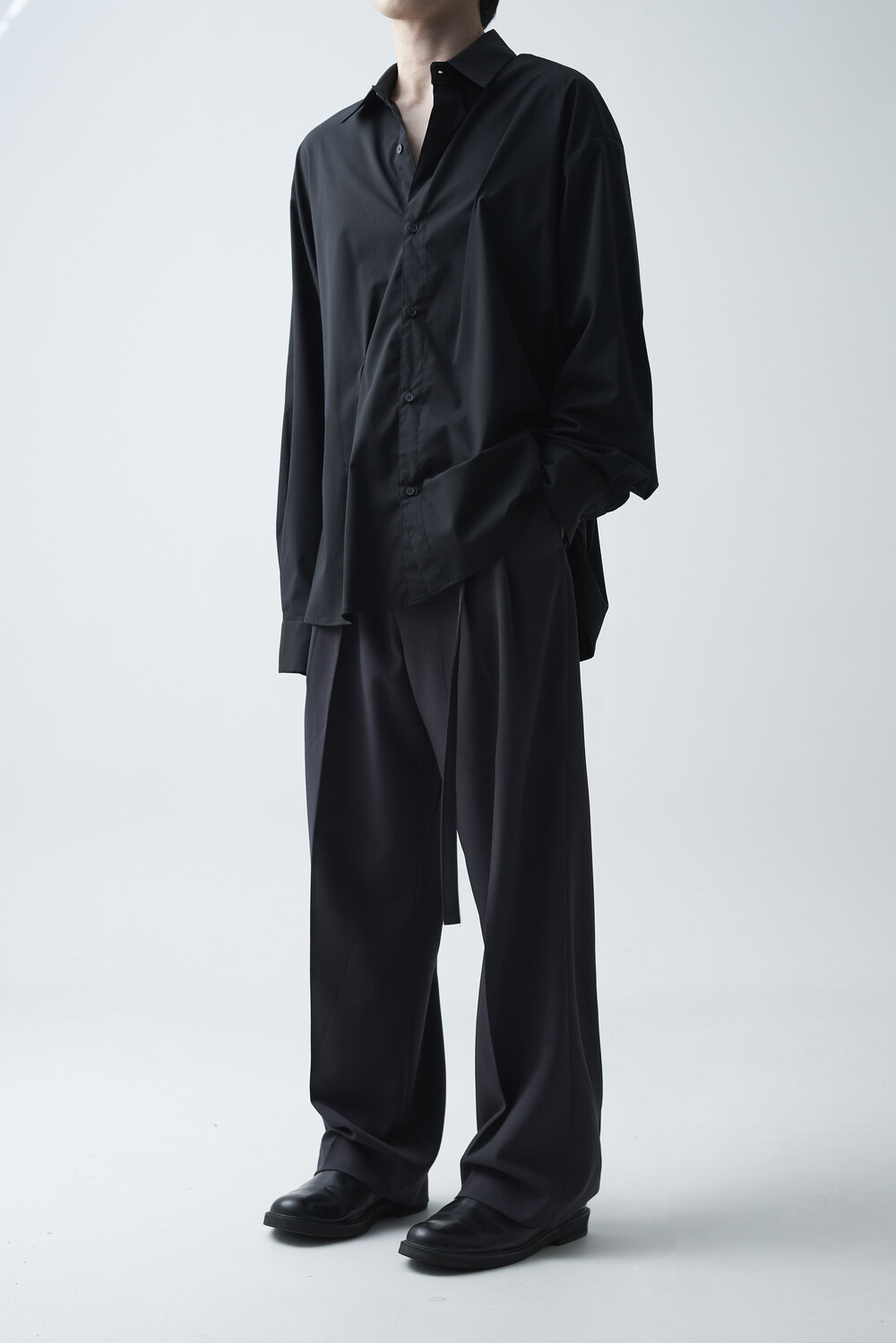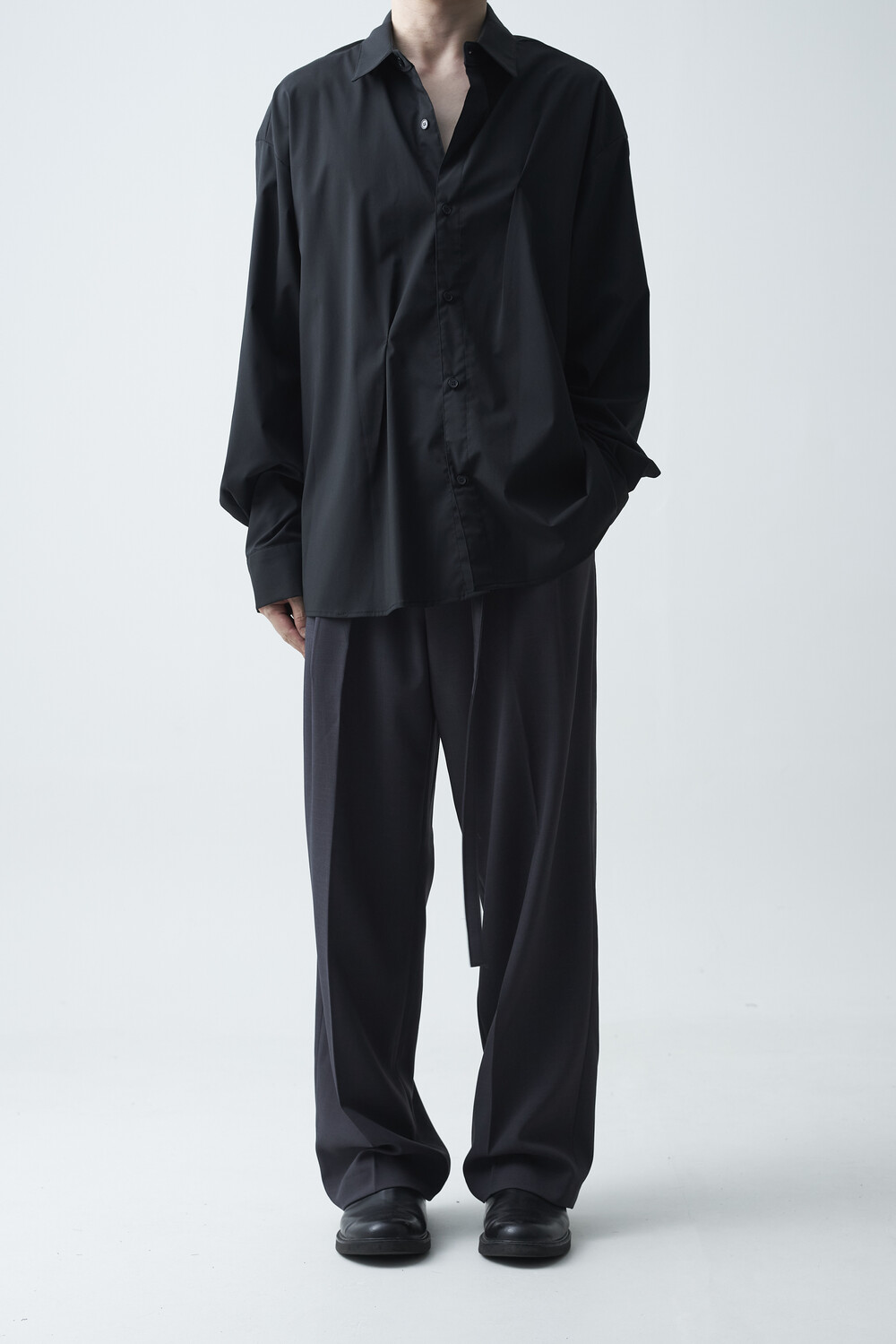 포멀한 블랙 컬러감으로 미니멀한 무드 연출을 표현하는 셔츠 제품입니다. 전면부의 바텍(핀턱) 디테일이 적용되어 유니크한 포인트를 자아내며, 깔끔한 아웃핏을 표현합니다.