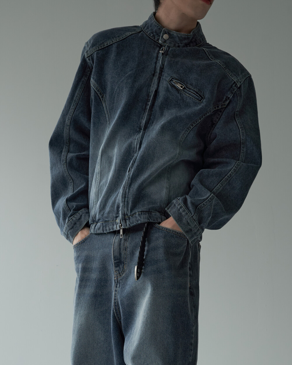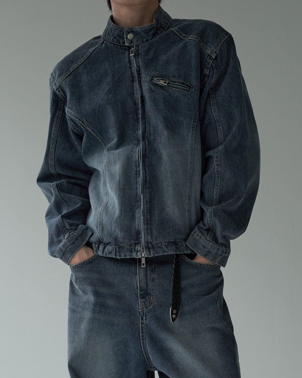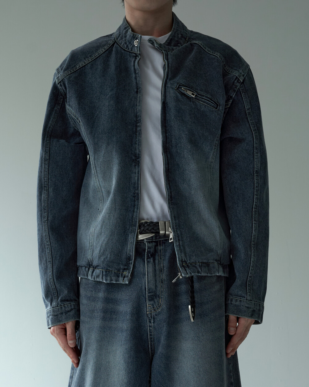 - 라이더 스타일의 크롭한 데님 자켓
