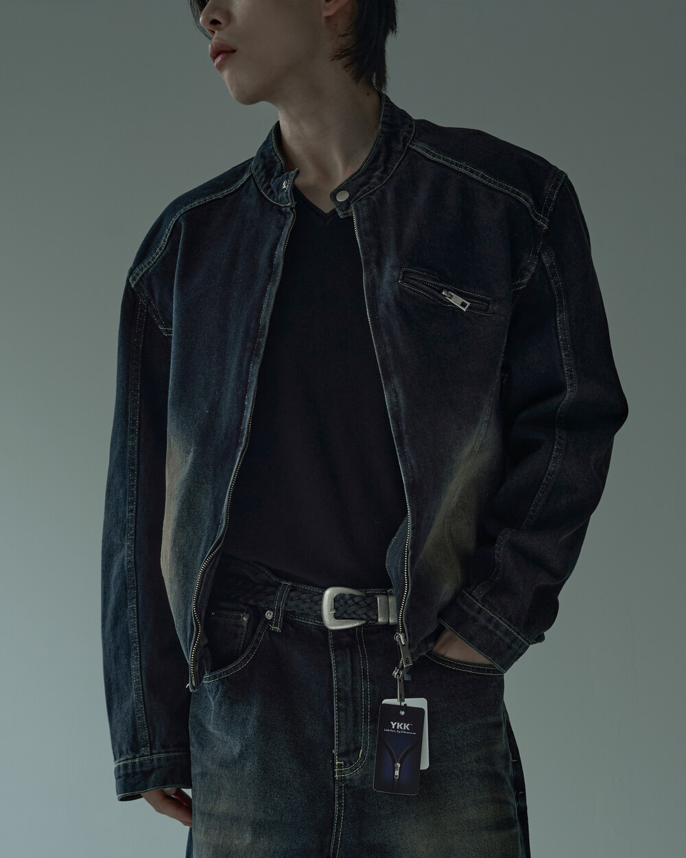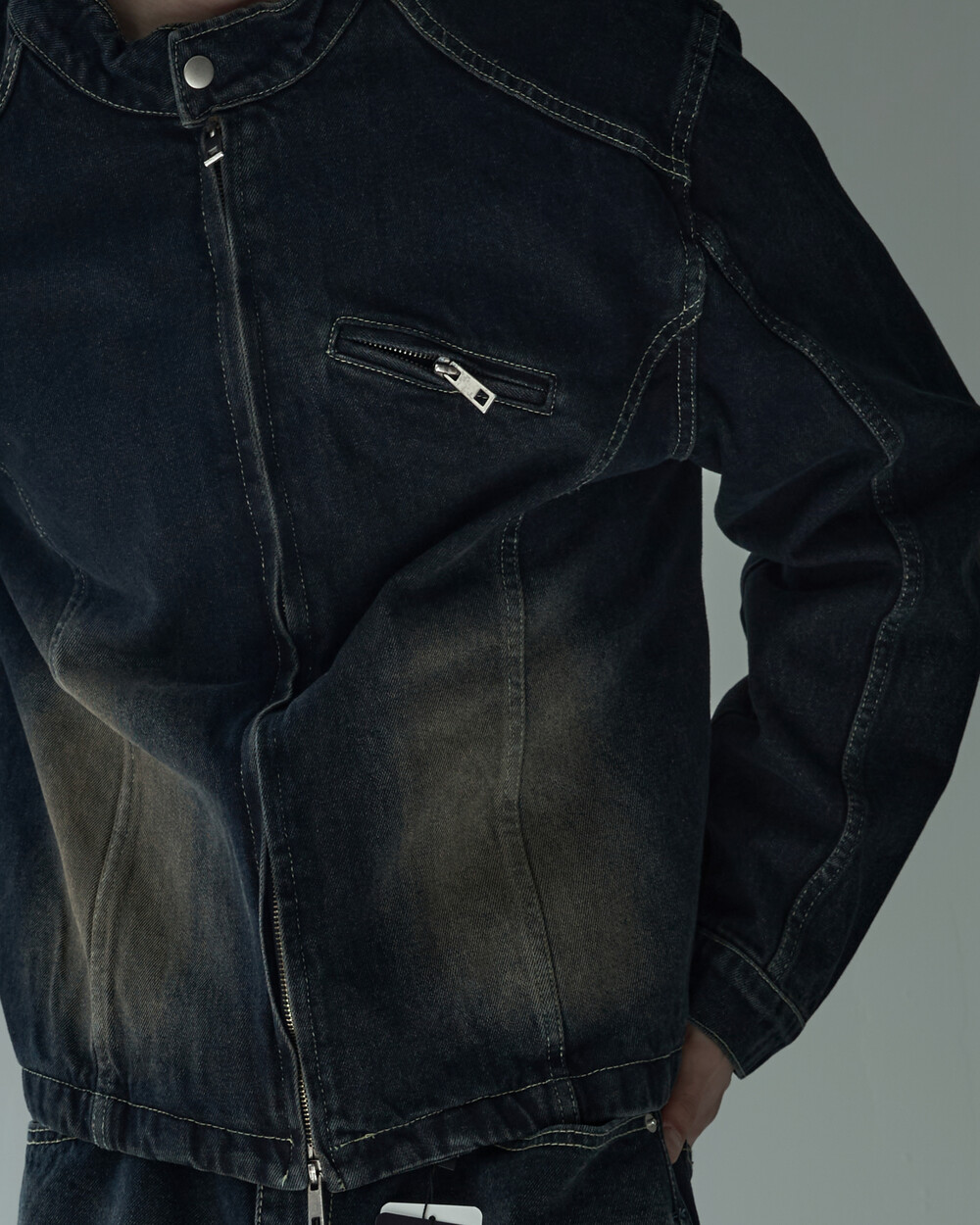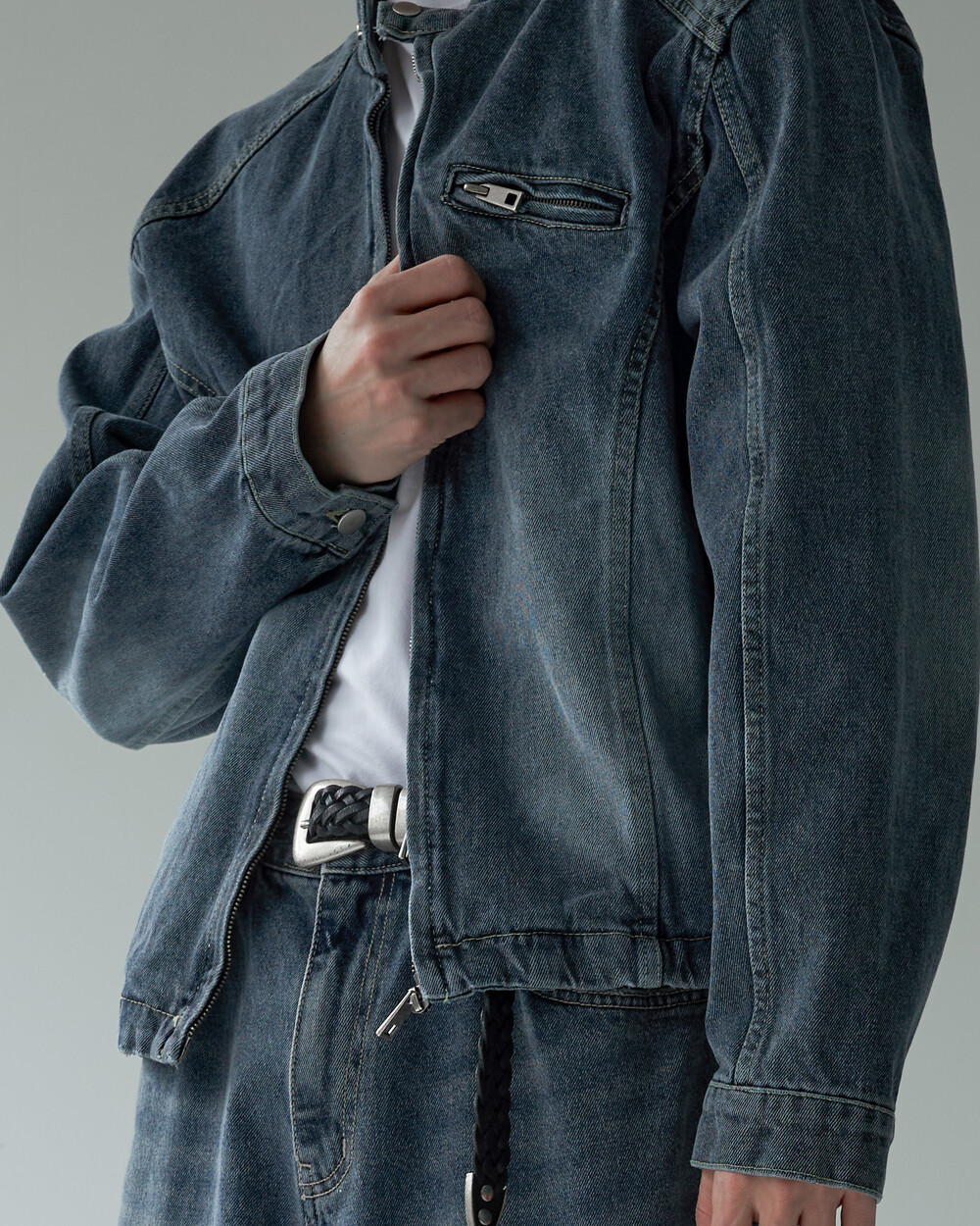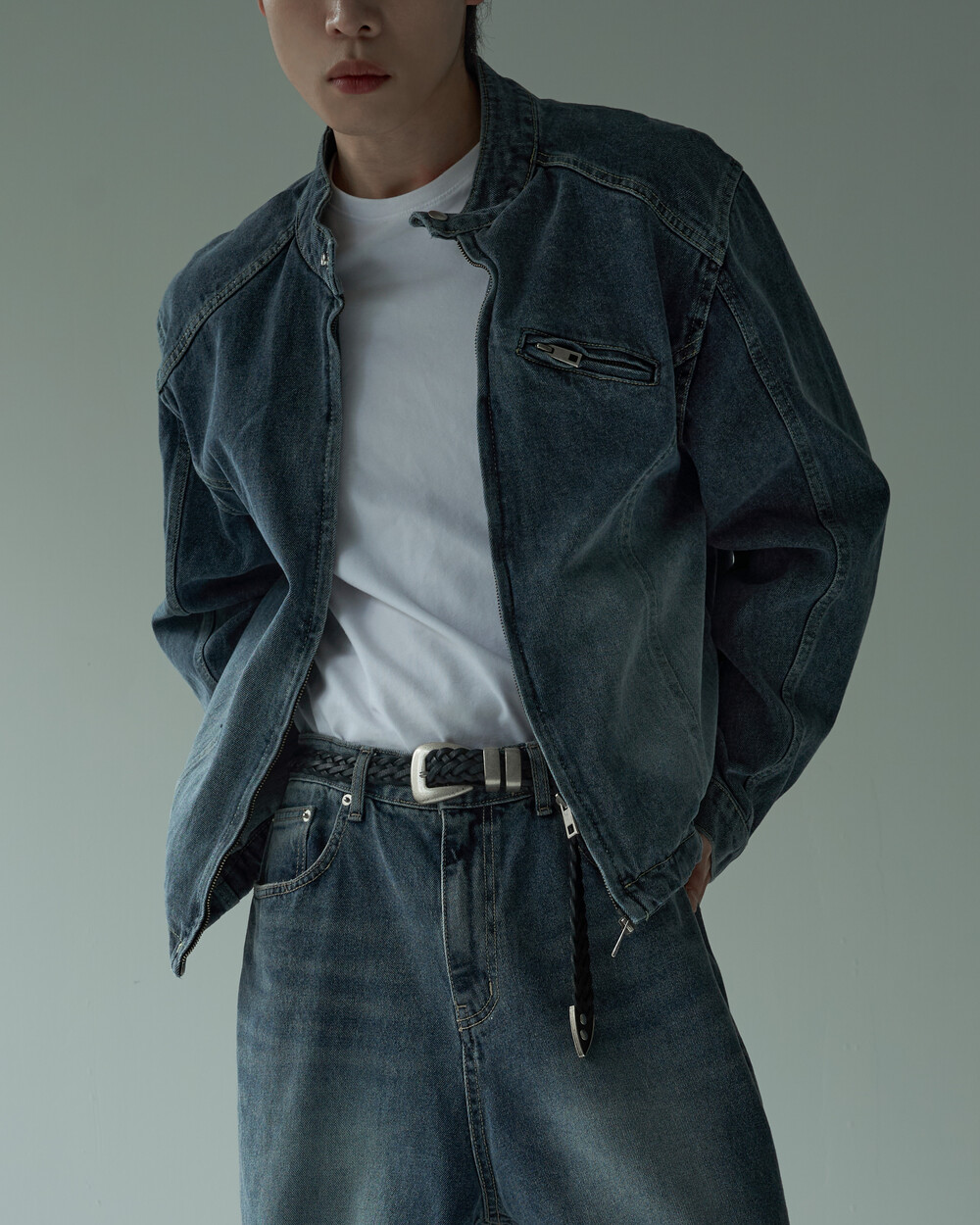- 라이더 스타일의 크롭한 데님 자켓