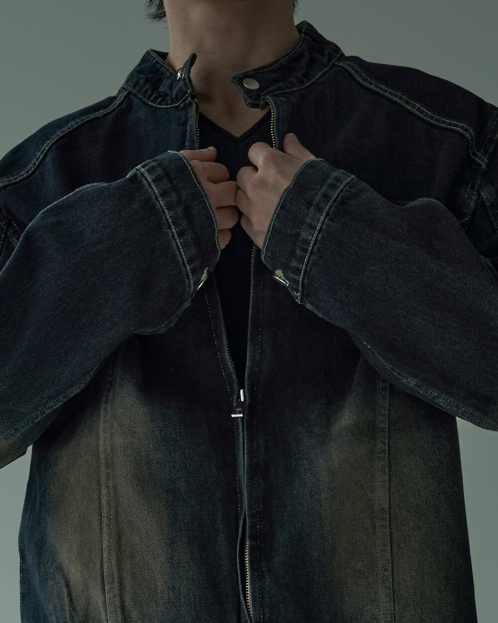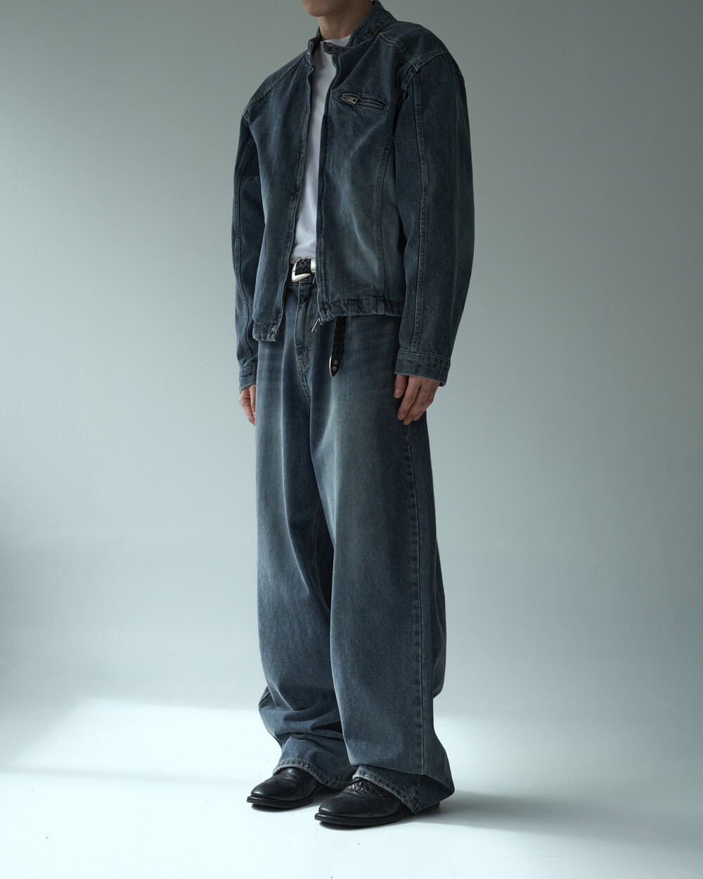 - 롱 루즈 핏 보다는 크롭하고 핏한 실루엣으로 시크한 무드 연출에 효과적인 제품입니다.