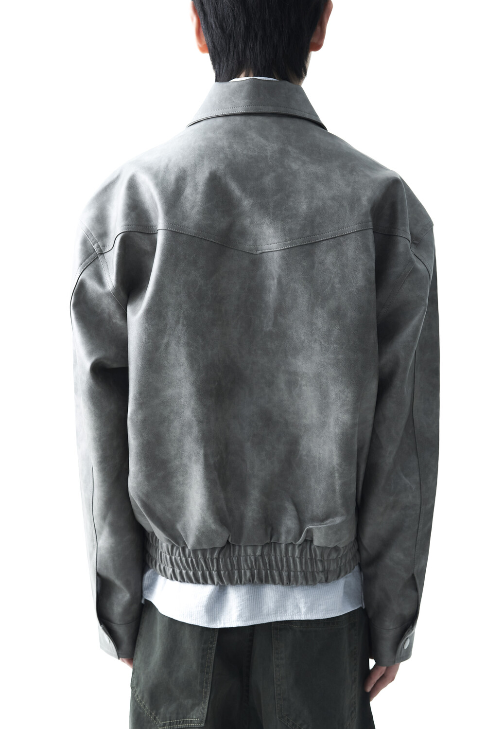 Crack washed crop leather jacket (PU)