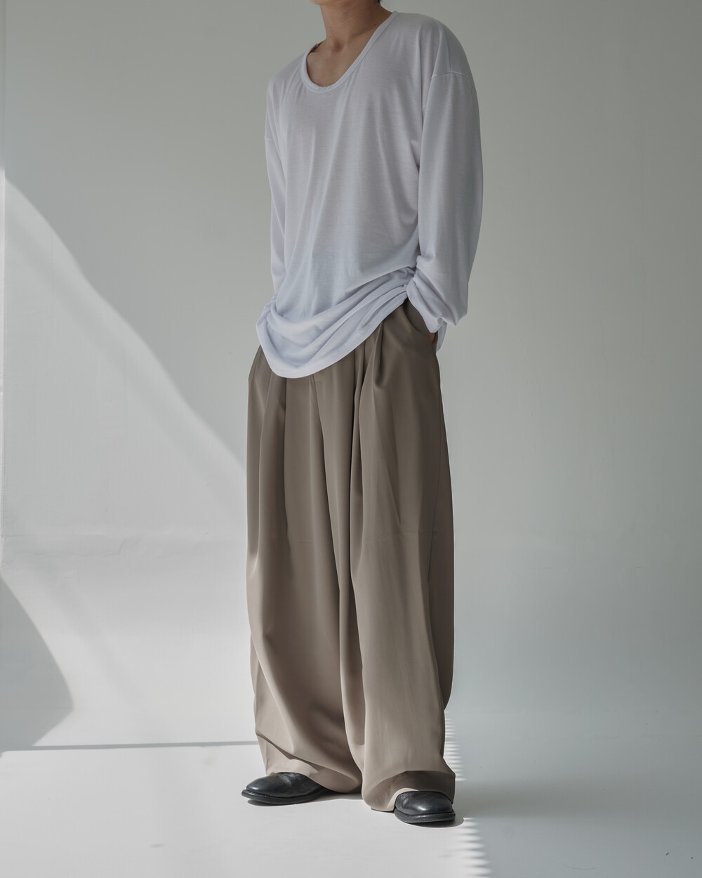 부드러운 TR 원단감으로 S/S 계절에 높은 활용도를 가지는 와이드 슬렉스 제품입니다.