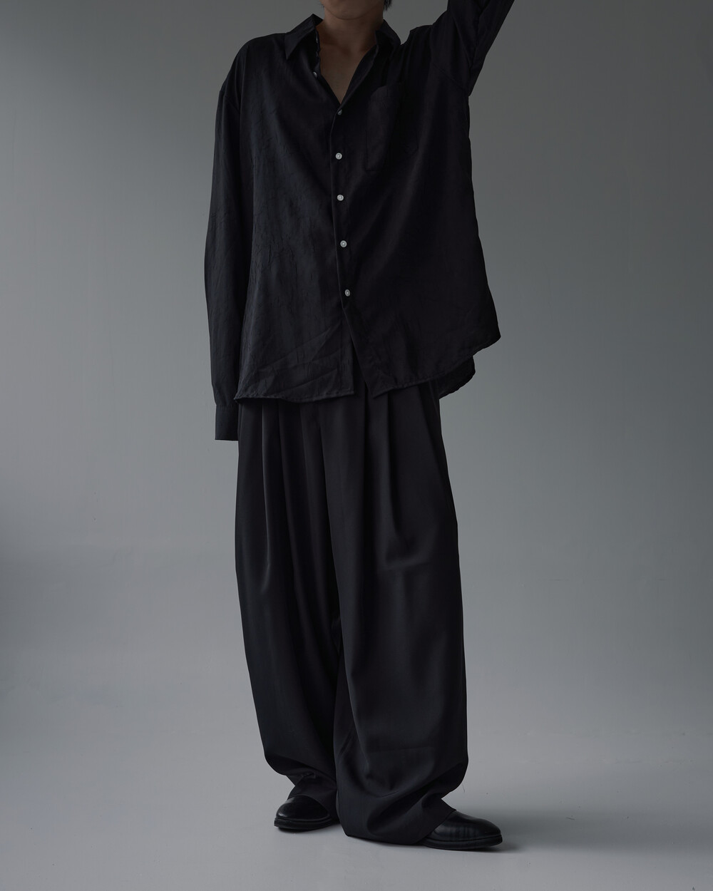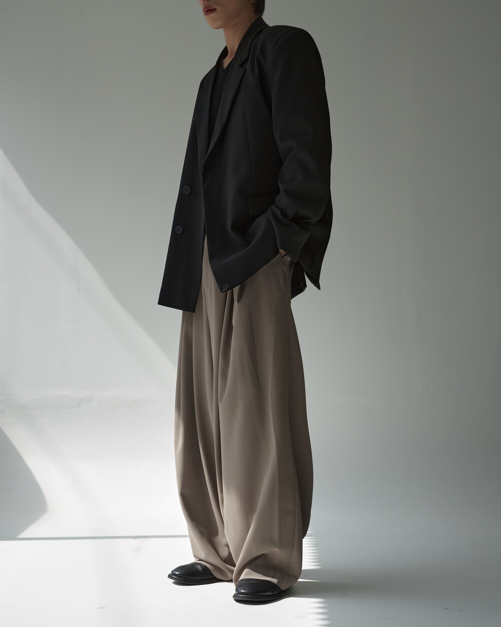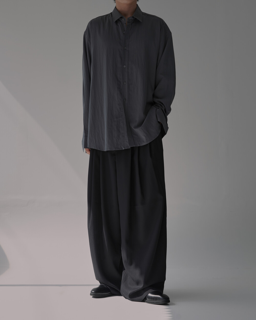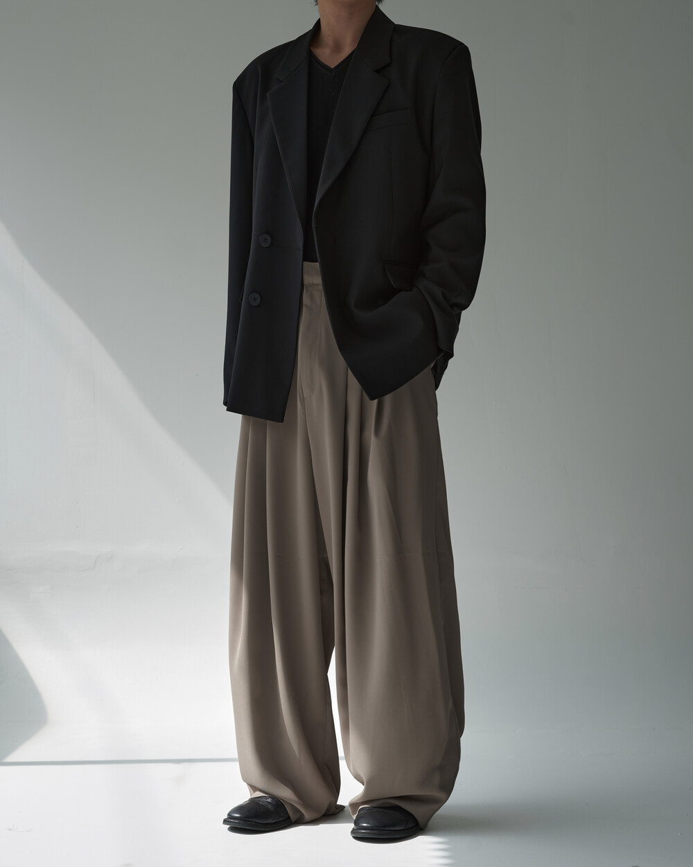 차분한 색감으로 모던한 분위기를 연출하면서도 전체적으로 오버와이드한 핏을 통해 내츄럴한 무드 또한 함께 느끼실 수 있는 슬렉스이며 전면부 3핀턱 디테일을 통해 자칫 무너질 수 있는 오버와이드 실루엣을 적절하게 잡아줍니다. 롱한 밑위 기장감을 통해 여성분들은 하이웨스트로 착용도 가능하며, 후면부 밴딩 적용으로 누구나 부담없이 착용할 수 있습니다.