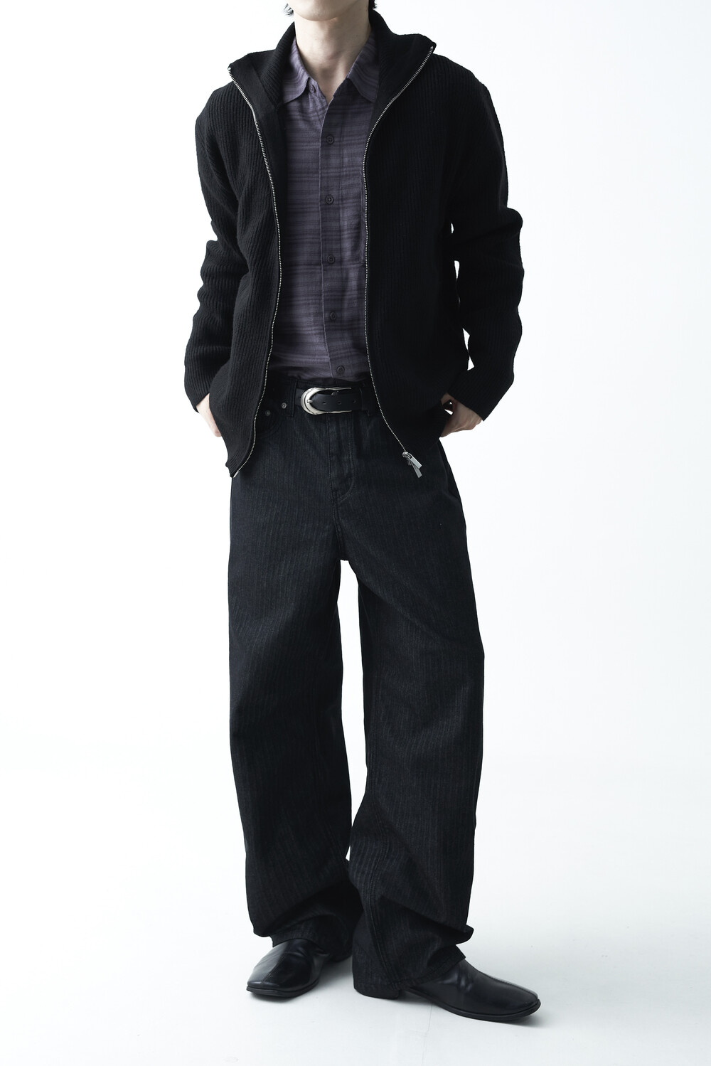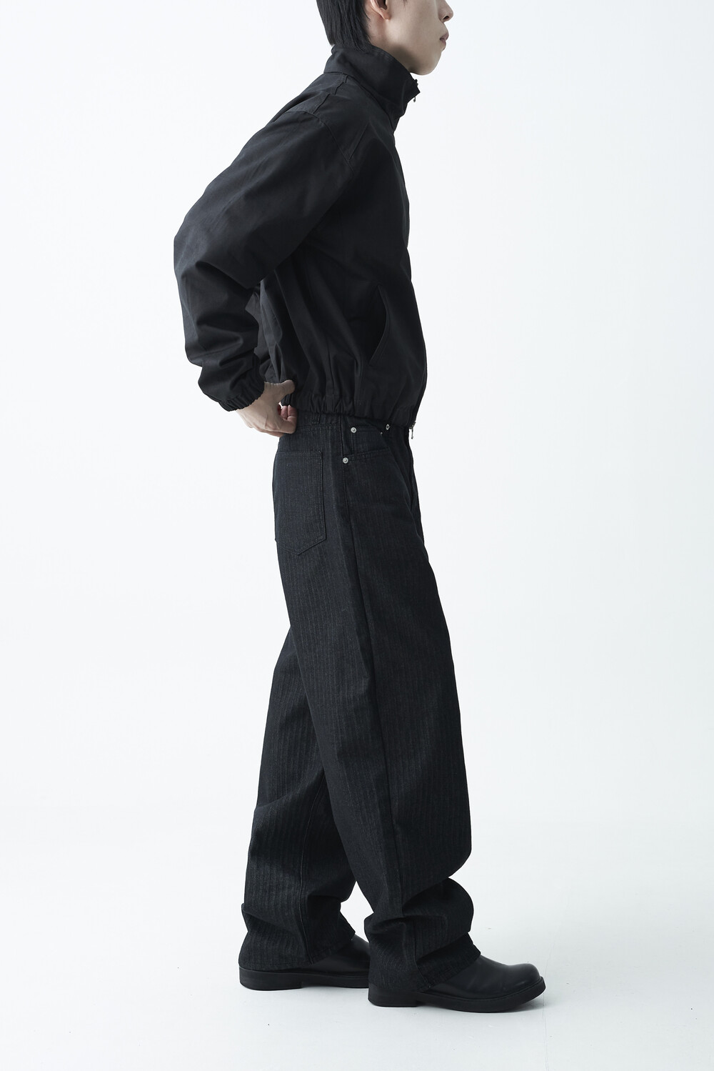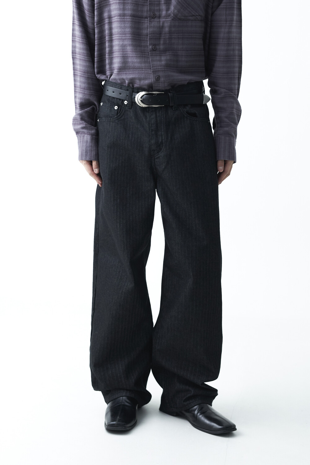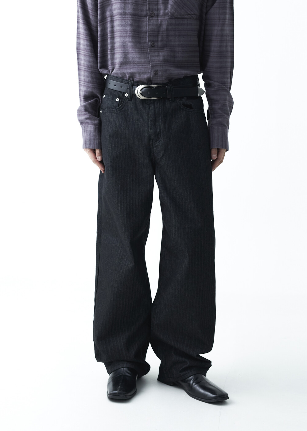 헤링본 패턴의 세로 줄지 텍스쳐 실루엣이 가미된 와이드 데님팬츠 제품으로 이염이 없는 논페이드 팬츠 제품입니다. 안정적인 와이드 핏 실루엣과 탄탄한 착용감으로 다양한 코디에 높은 활용도를 가지는 팬츠 제품입니다.