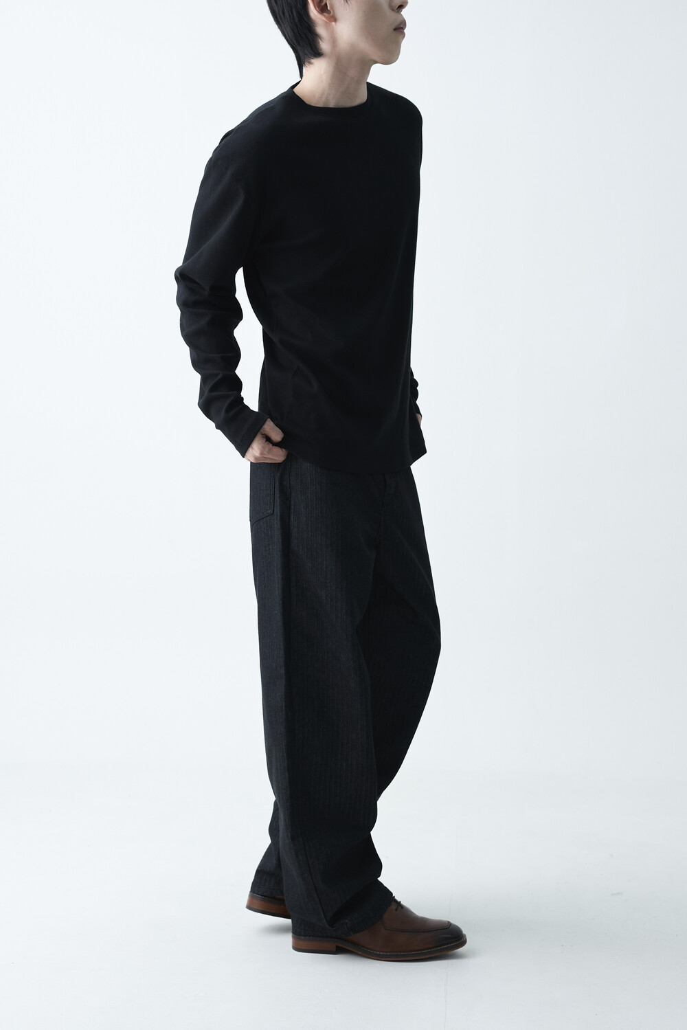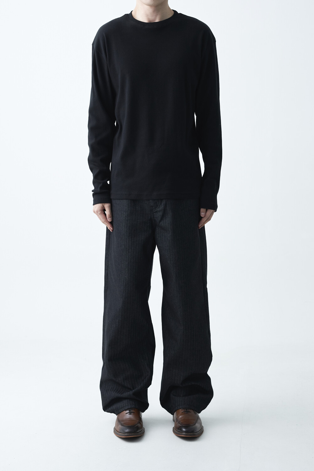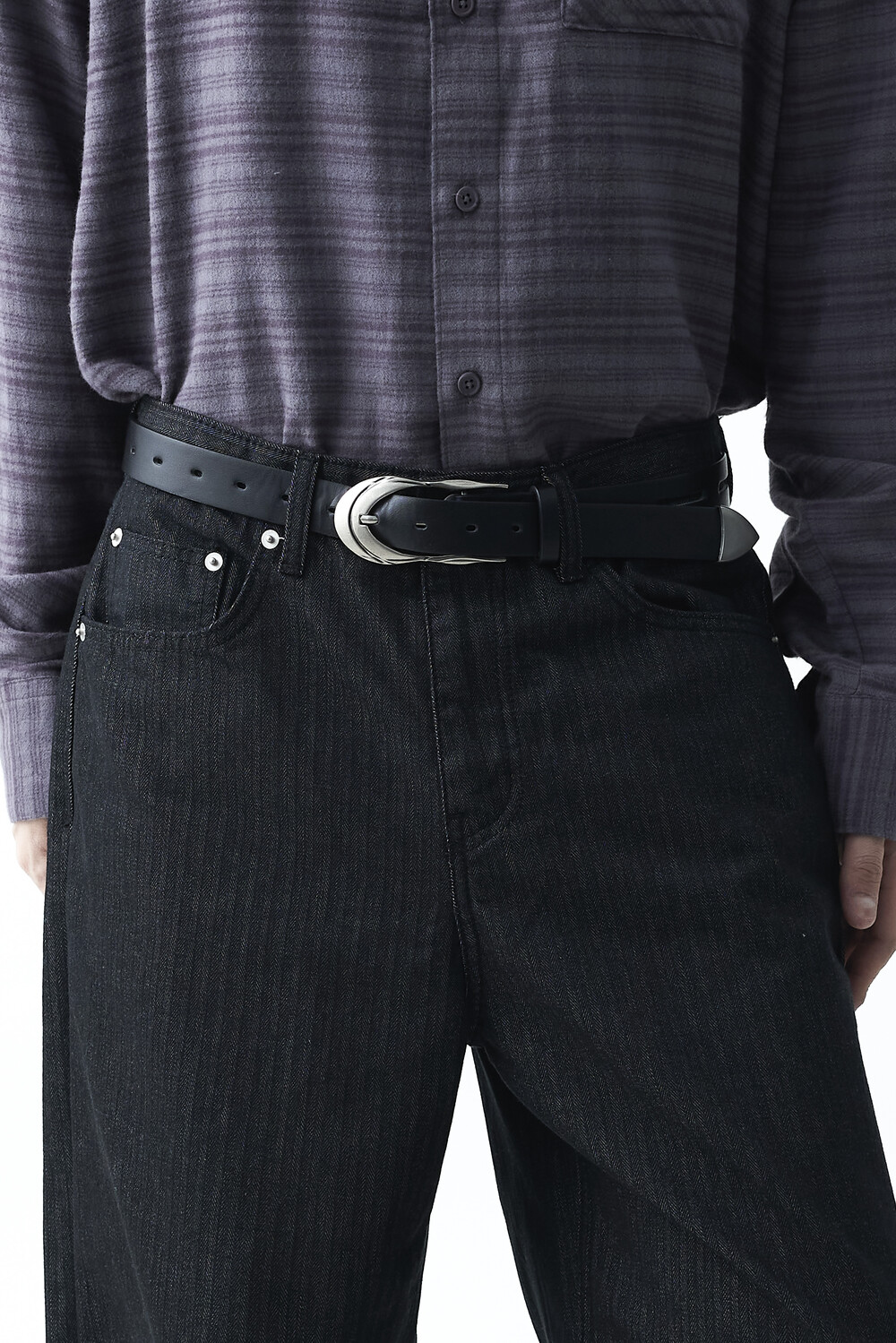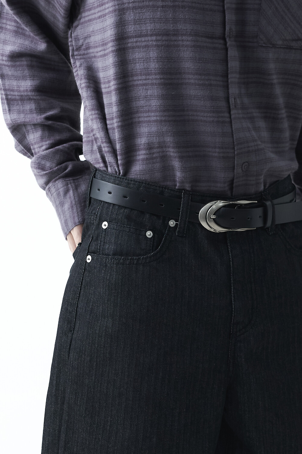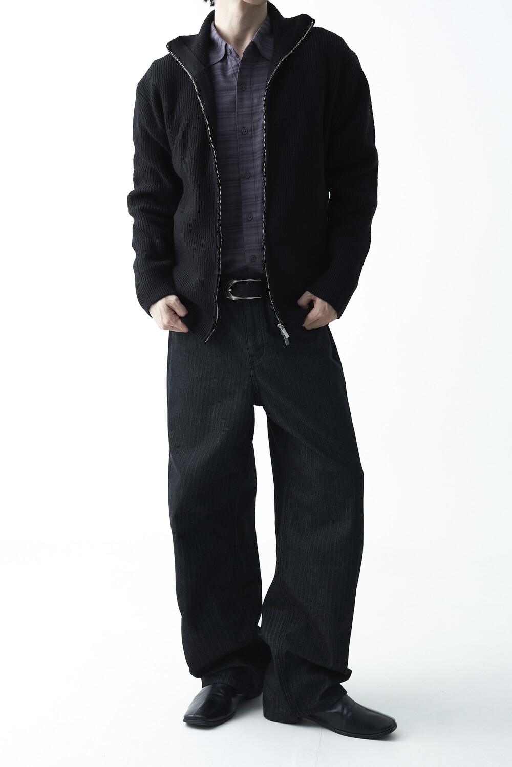 헤링본 패턴의 세로 줄지 텍스쳐 실루엣이 가미된 와이드 데님팬츠 제품으로 이염이 없는 논페이드 팬츠 제품입니다. 안정적인 와이드 핏 실루엣과 탄탄한 착용감으로 다양한 코디에 높은 활용도를 가지는 팬츠 제품입니다.