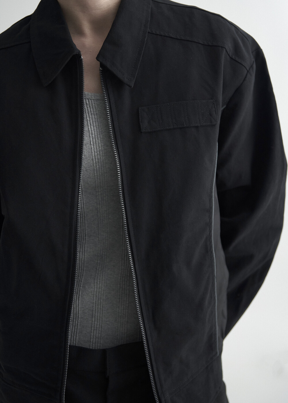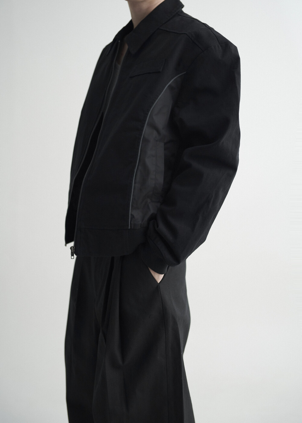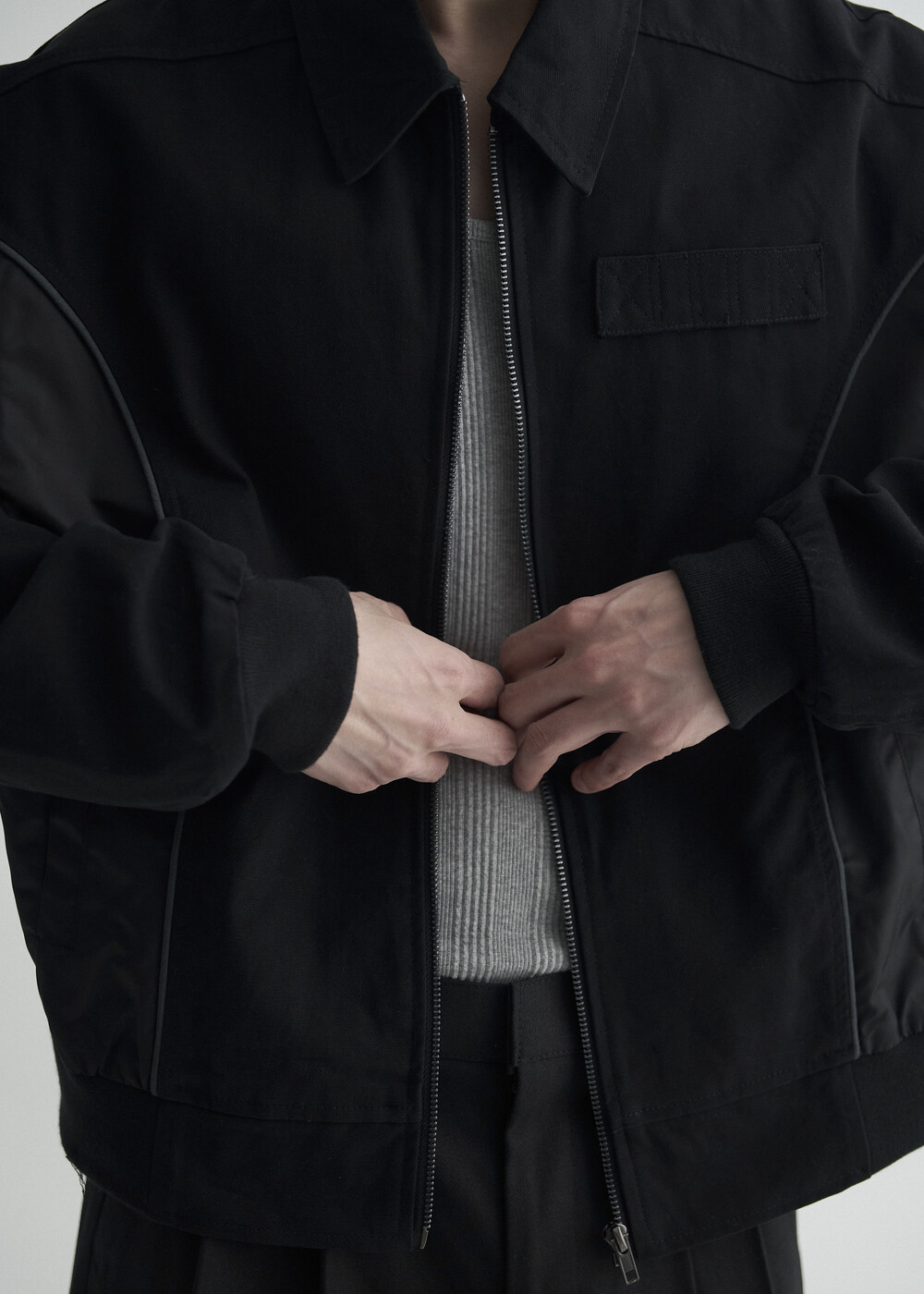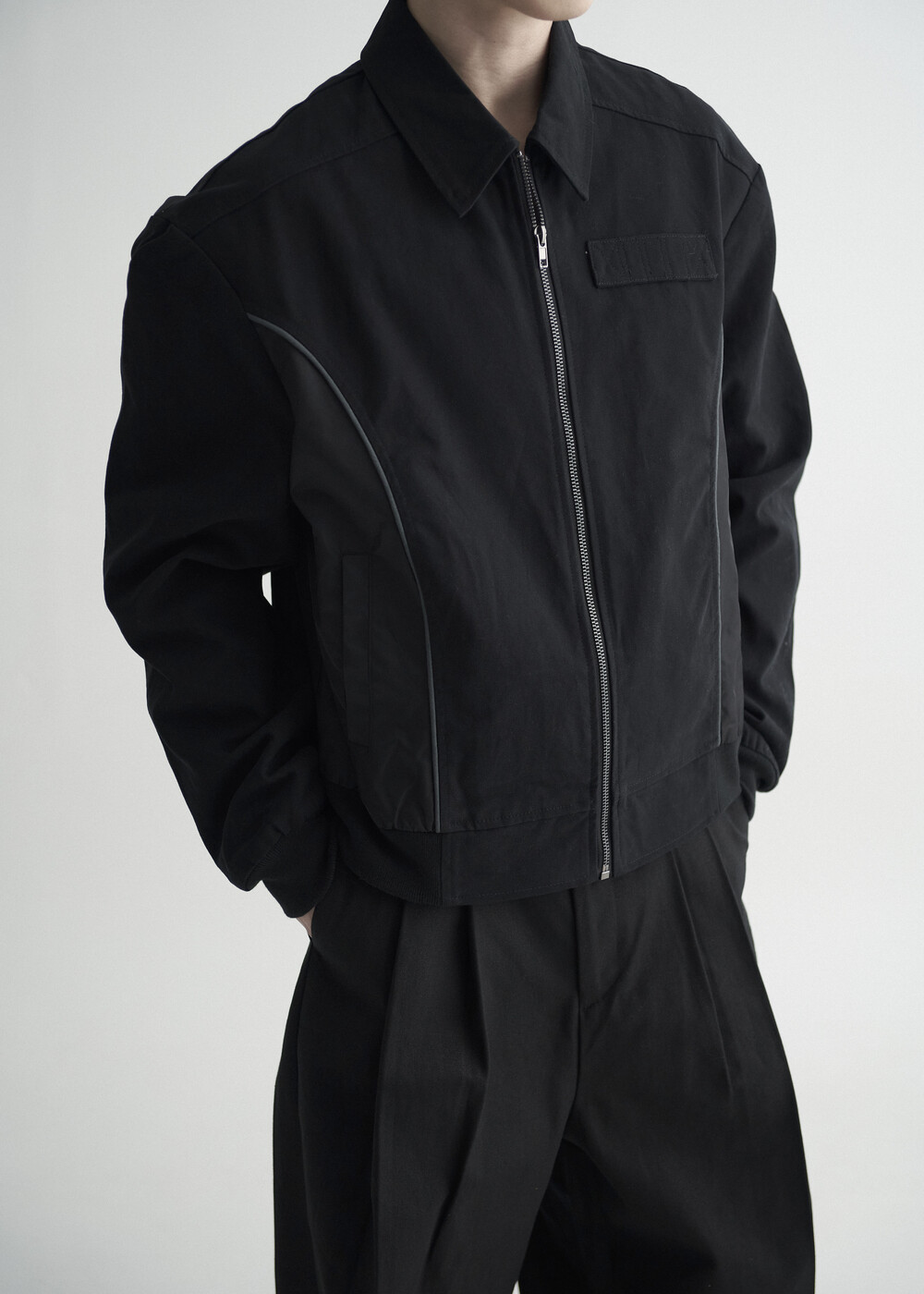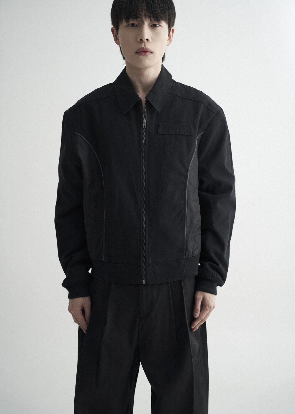 Detail point - 견고한 조직감을 잘 나타내는 세미 오버핏의 코튼 자켓 제품 - 가벼운 소재감과 쉽게 틀어지지 않을 수 있는 면 소재로 다양한 코디에 활용도를 가지는 제품입니다. - 톤다운 컬러감으로 한층 더 차분한 무드를 연출하면서 전면부 양 측의 배색 컬러 배치와 밑단과 소매의 밴딩으로 미니멀함, 캐쥬얼함을 동시에 추구합니다. - 크롭한 기장감과 클래식한 카라 라인으로 깔끔한 아웃핏 연출에 알맞은 아우터 제품입니다.