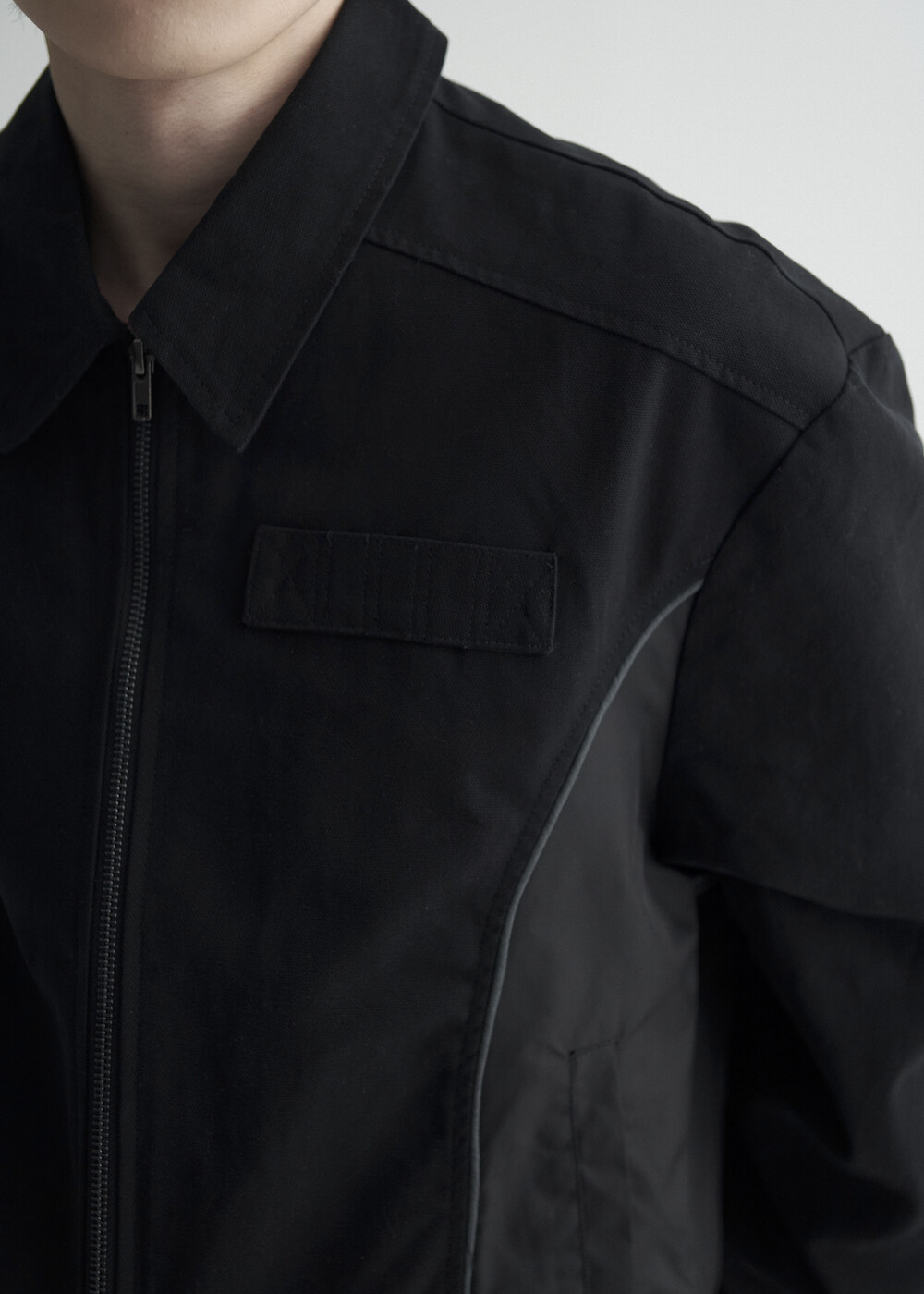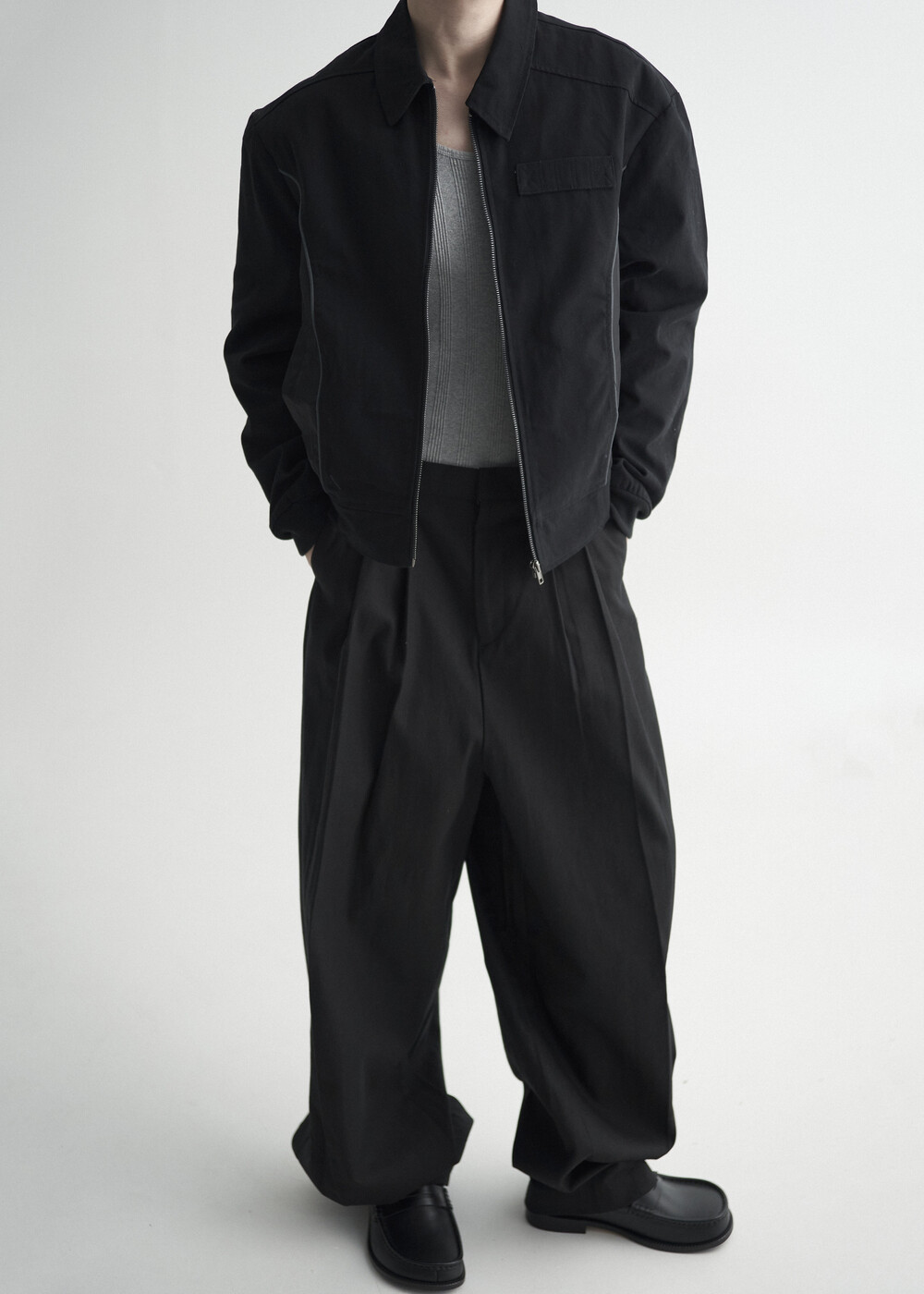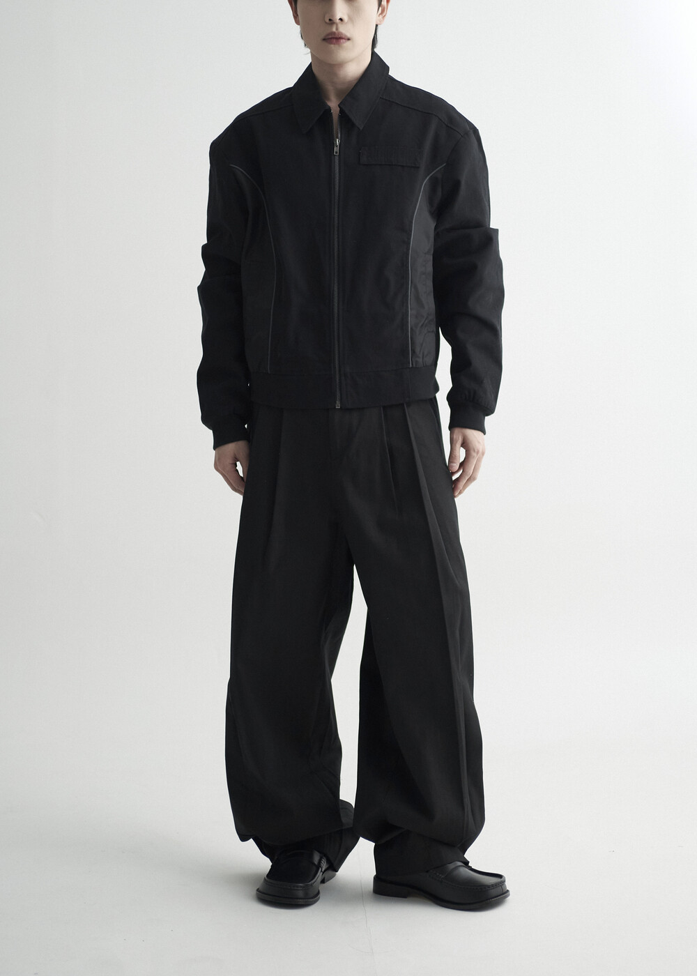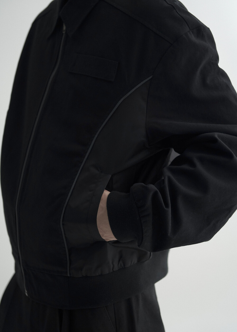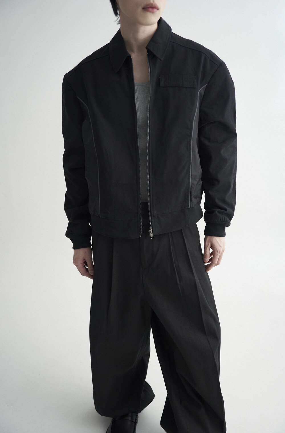 Detail point - 견고한 조직감을 잘 나타내는 세미 오버핏의 코튼 자켓 제품 - 가벼운 소재감과 쉽게 틀어지지 않을 수 있는 면 소재로 다양한 코디에 활용도를 가지는 제품입니다. - 톤다운 컬러감으로 한층 더 차분한 무드를 연출하면서 전면부 양 측의 배색 컬러 배치와 밑단과 소매의 밴딩으로 미니멀함, 캐쥬얼함을 동시에 추구합니다. - 크롭한 기장감과 클래식한 카라 라인으로 깔끔한 아웃핏 연출에 알맞은 아우터 제품입니다.