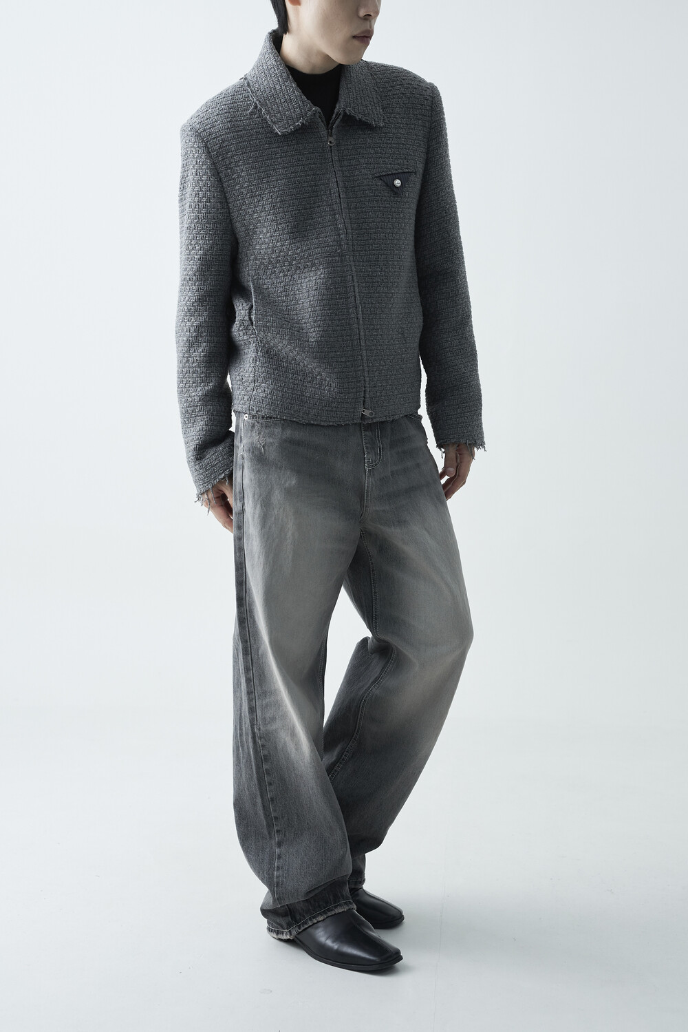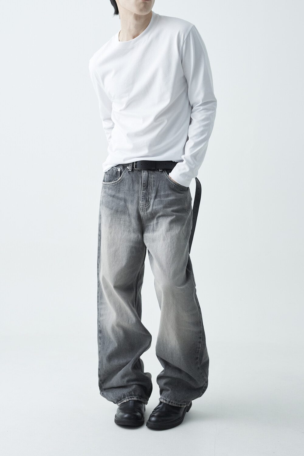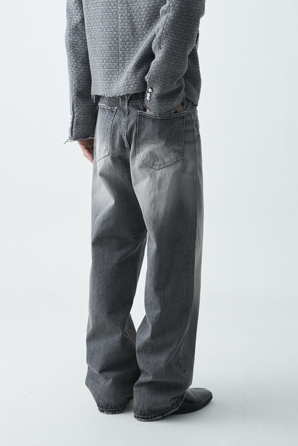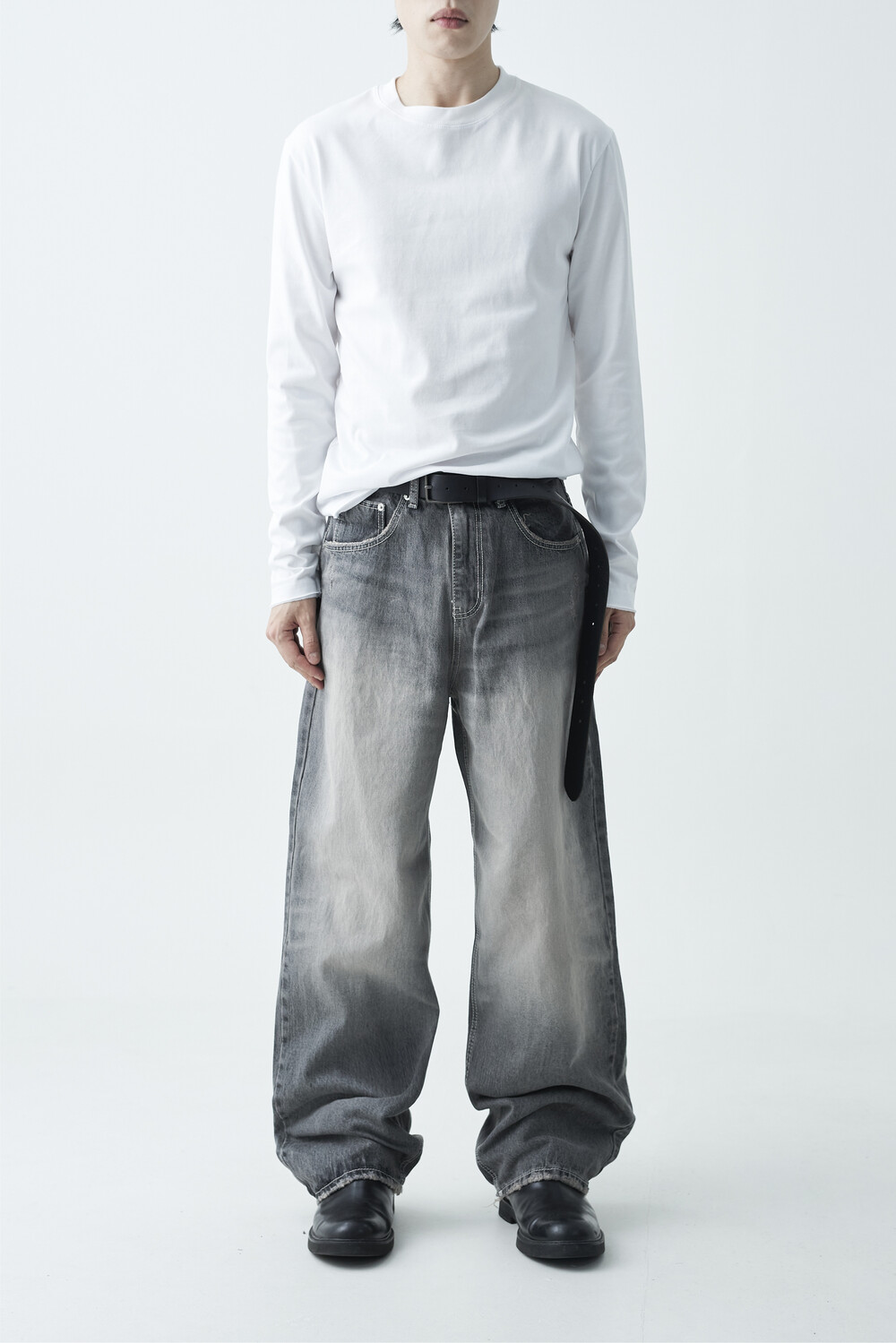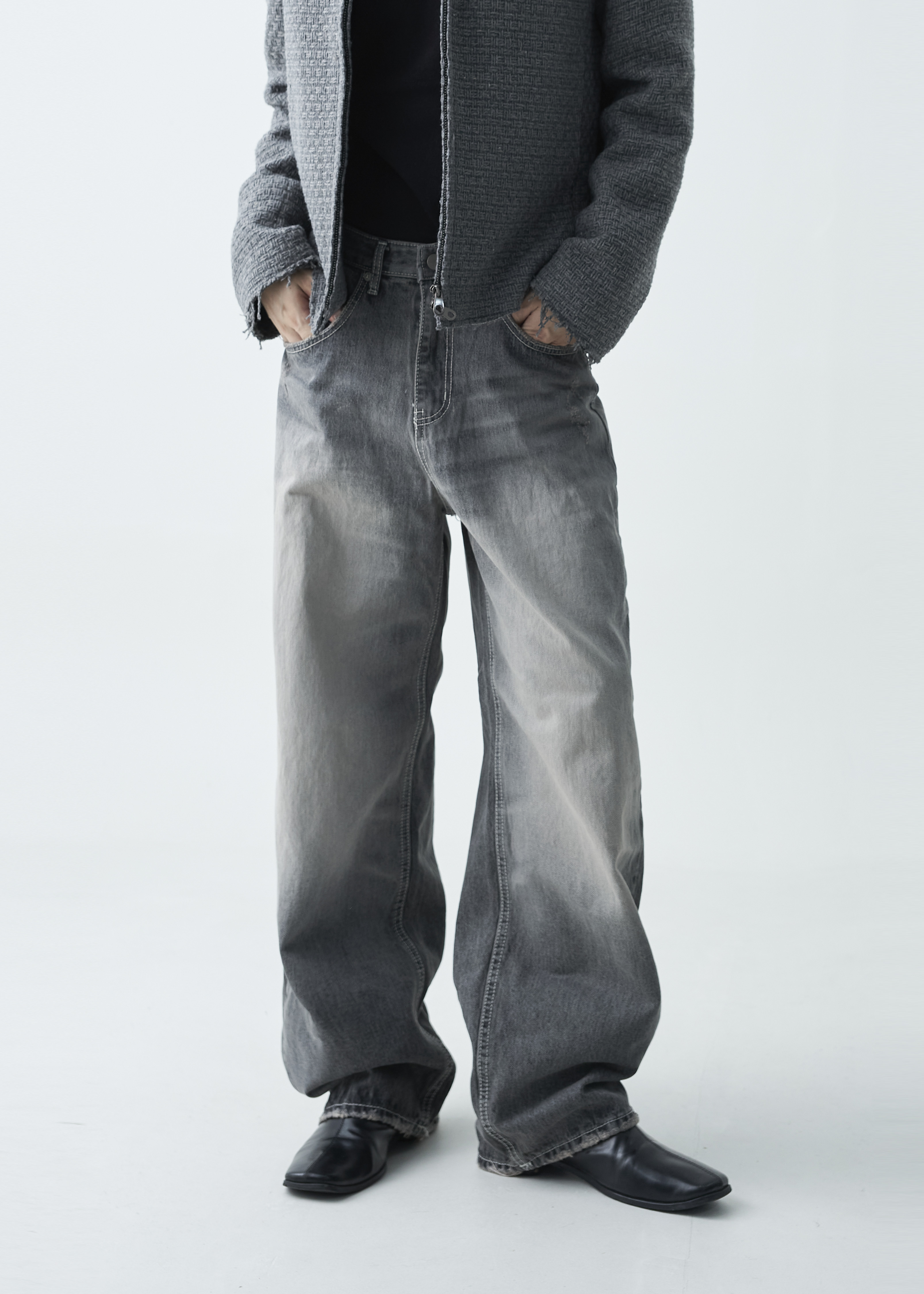 유니크한 그레이청 컬러감의 와이드 데님팬츠 제품으로 각 밑단의 빈티지 데미지 디테일이 적용되어 그 매력을 더합니다. 벌룬핏 보다 오버와이드 핏을 선호하는 분들에게 적극 추천드립니다.