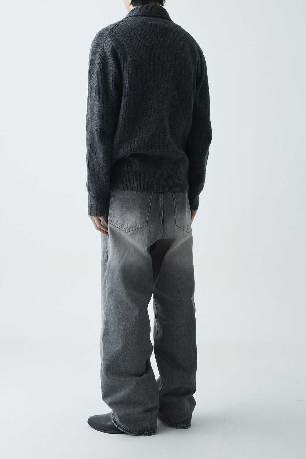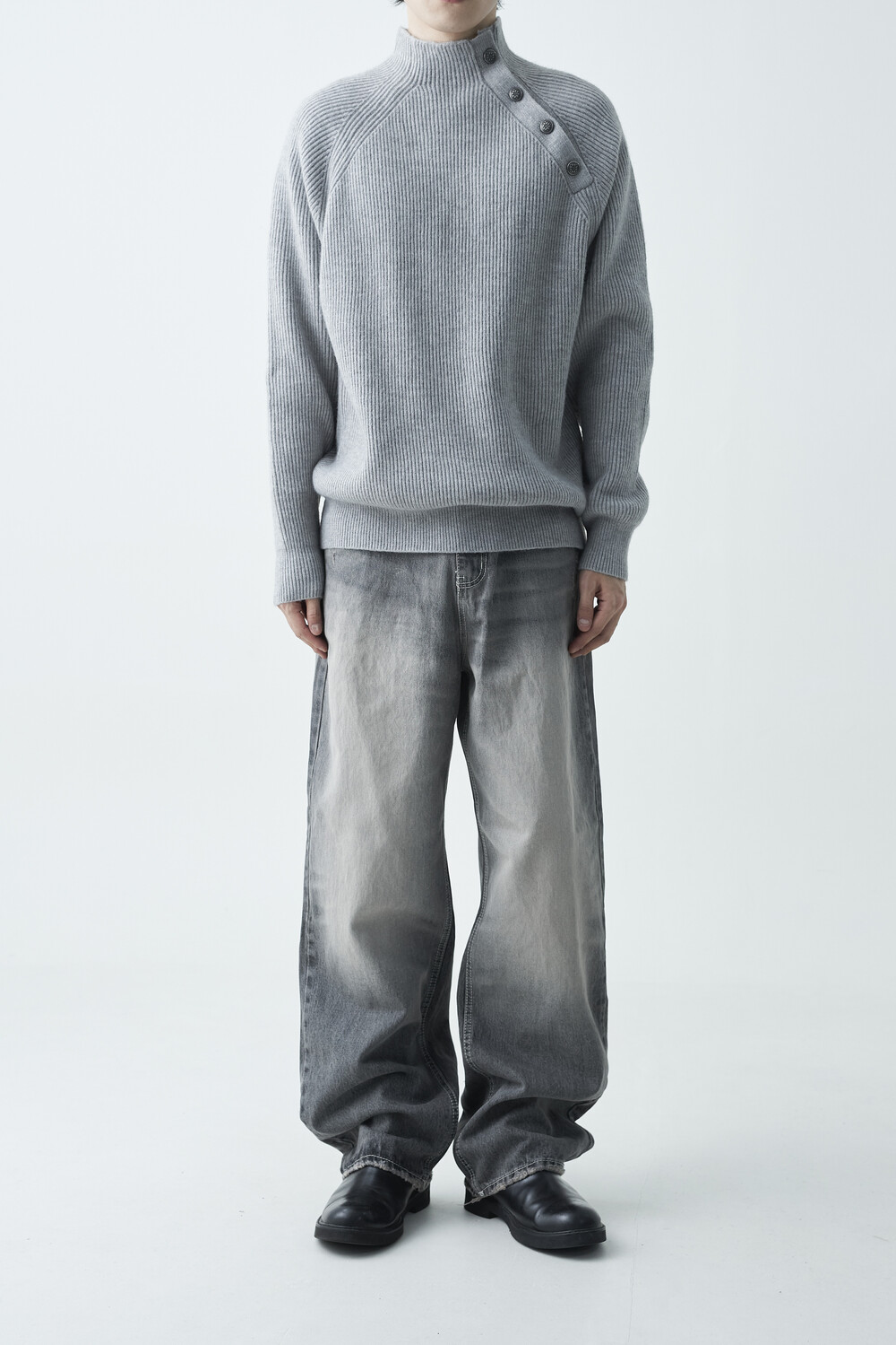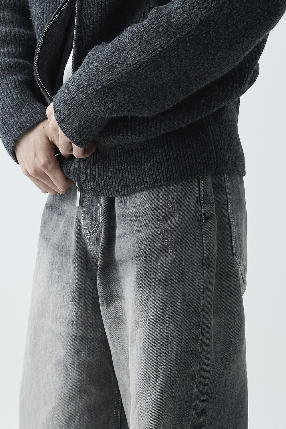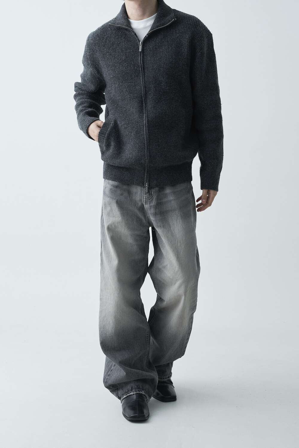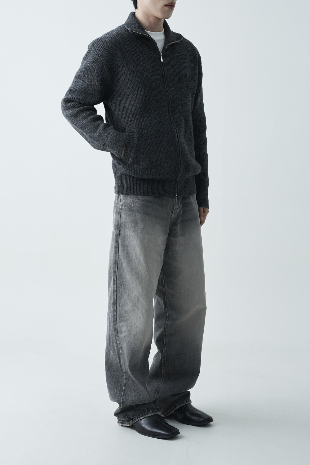 유니크한 그레이청 컬러감의 와이드 데님팬츠 제품으로 각 밑단의 빈티지 데미지 디테일이 적용되어 그 매력을 더합니다. 벌룬핏 보다 오버와이드 핏을 선호하는 분들에게 적극 추천드립니다.