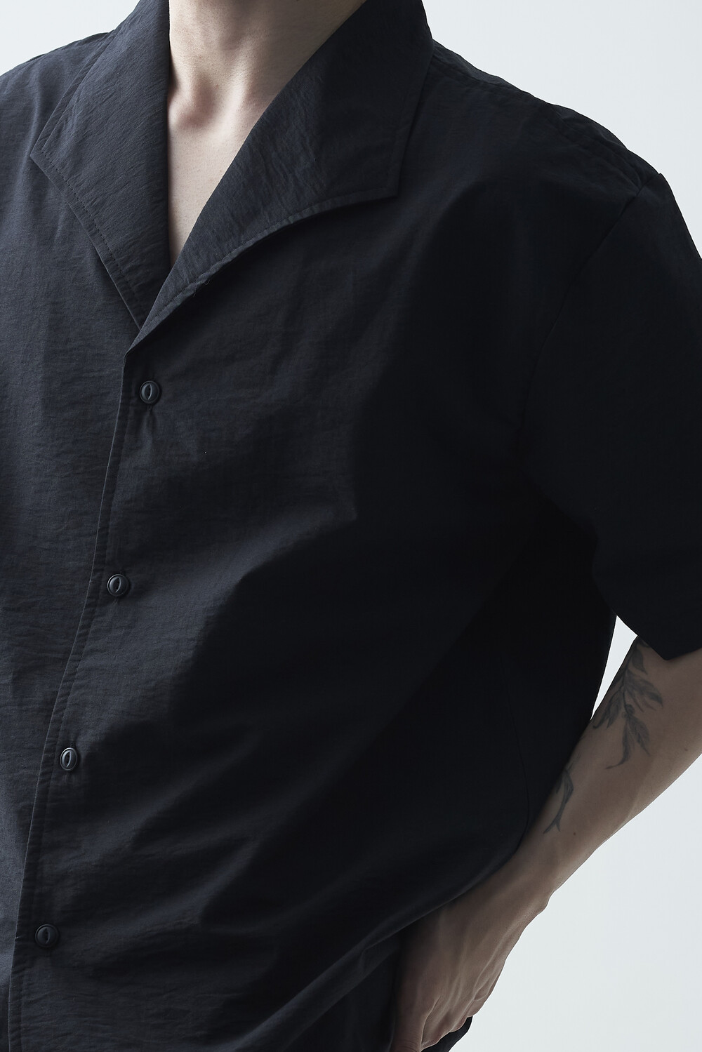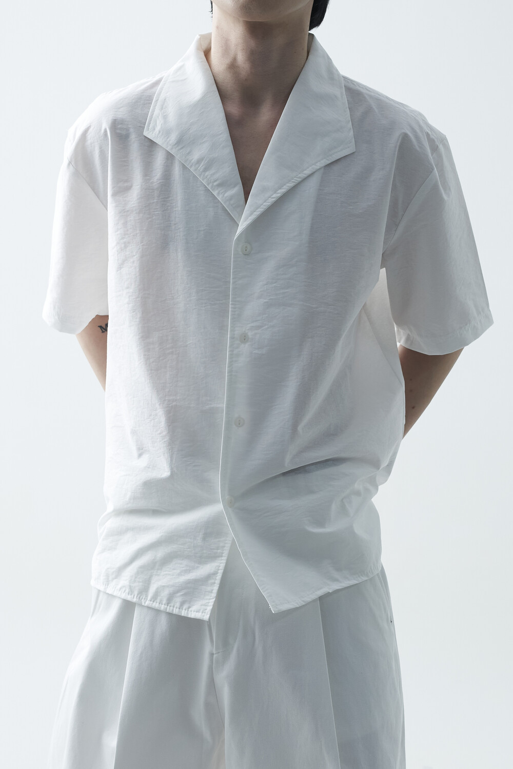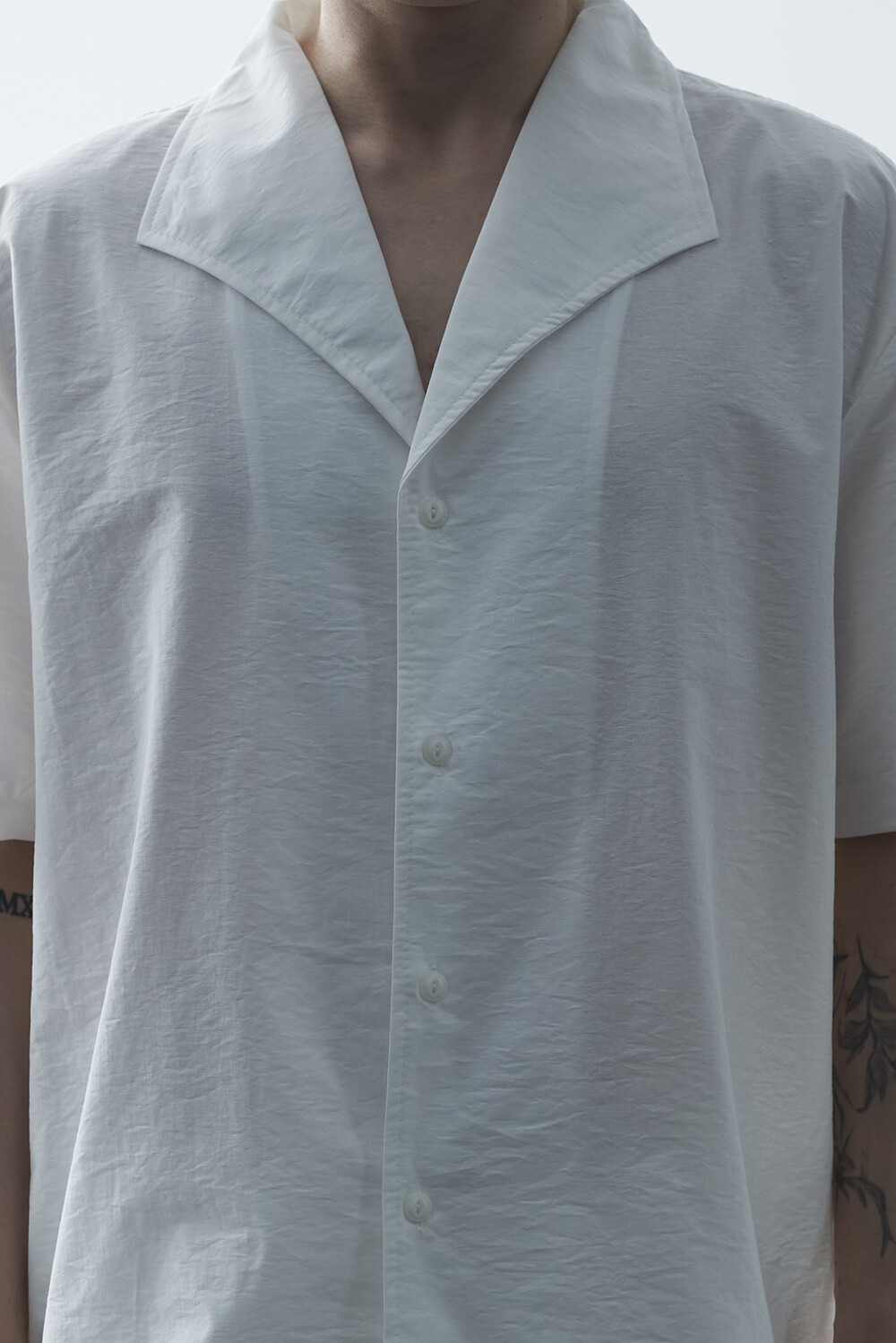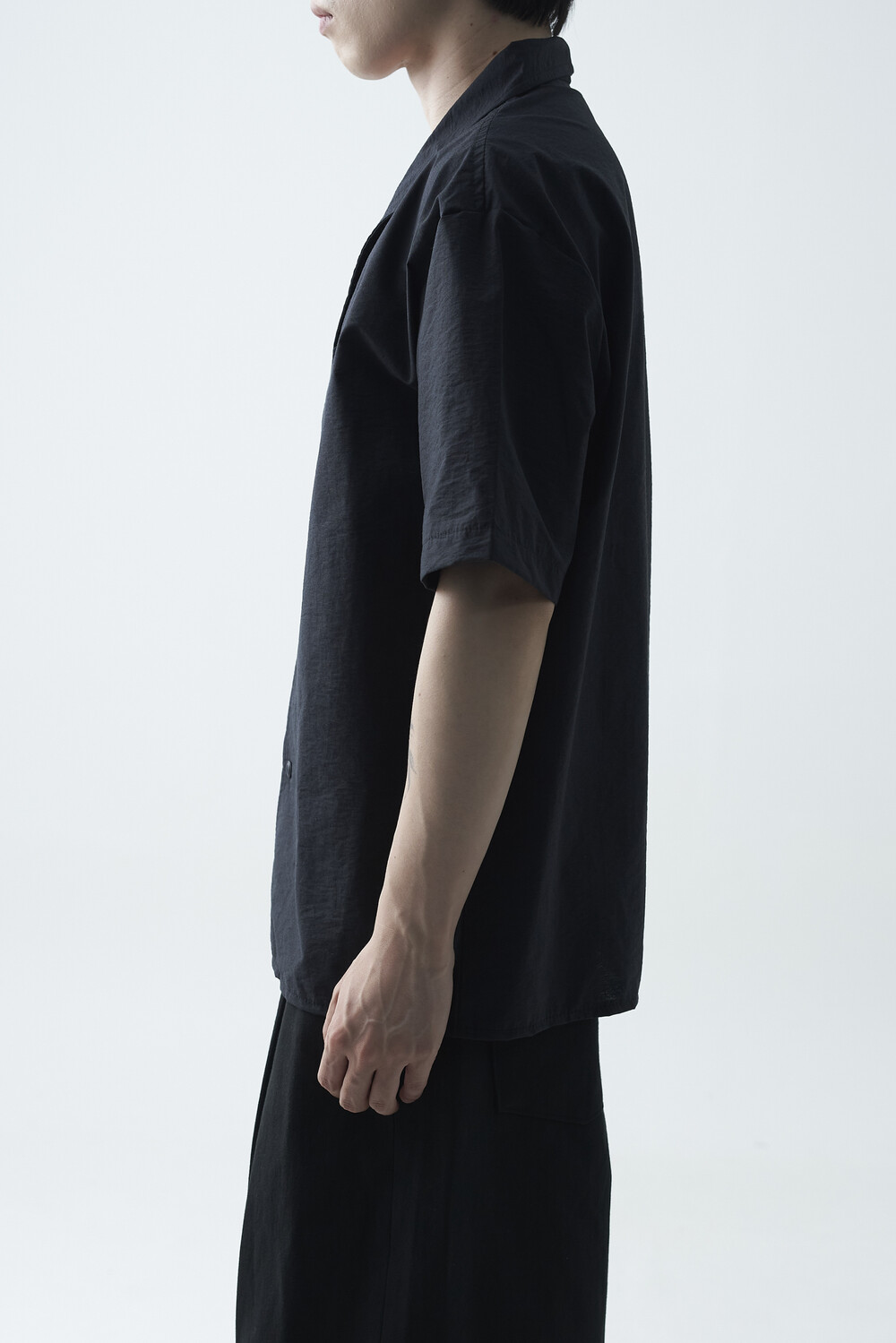 숄카라 스타일의 딥한 브이넥 반팔셔츠 제품입니다. 코튼 나일론 혼방 소재감으로 계절감에 알맞도록 시원한 착용감이 두드러지며, 쉽게 무너지지 않는 핏을 연출합니다. 미니멀한 실루엣으로 추천드립니다.