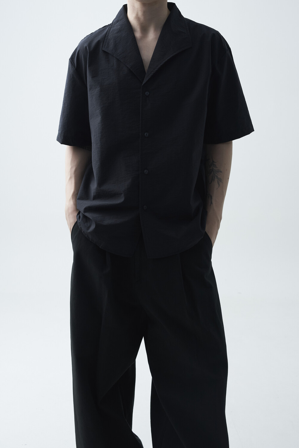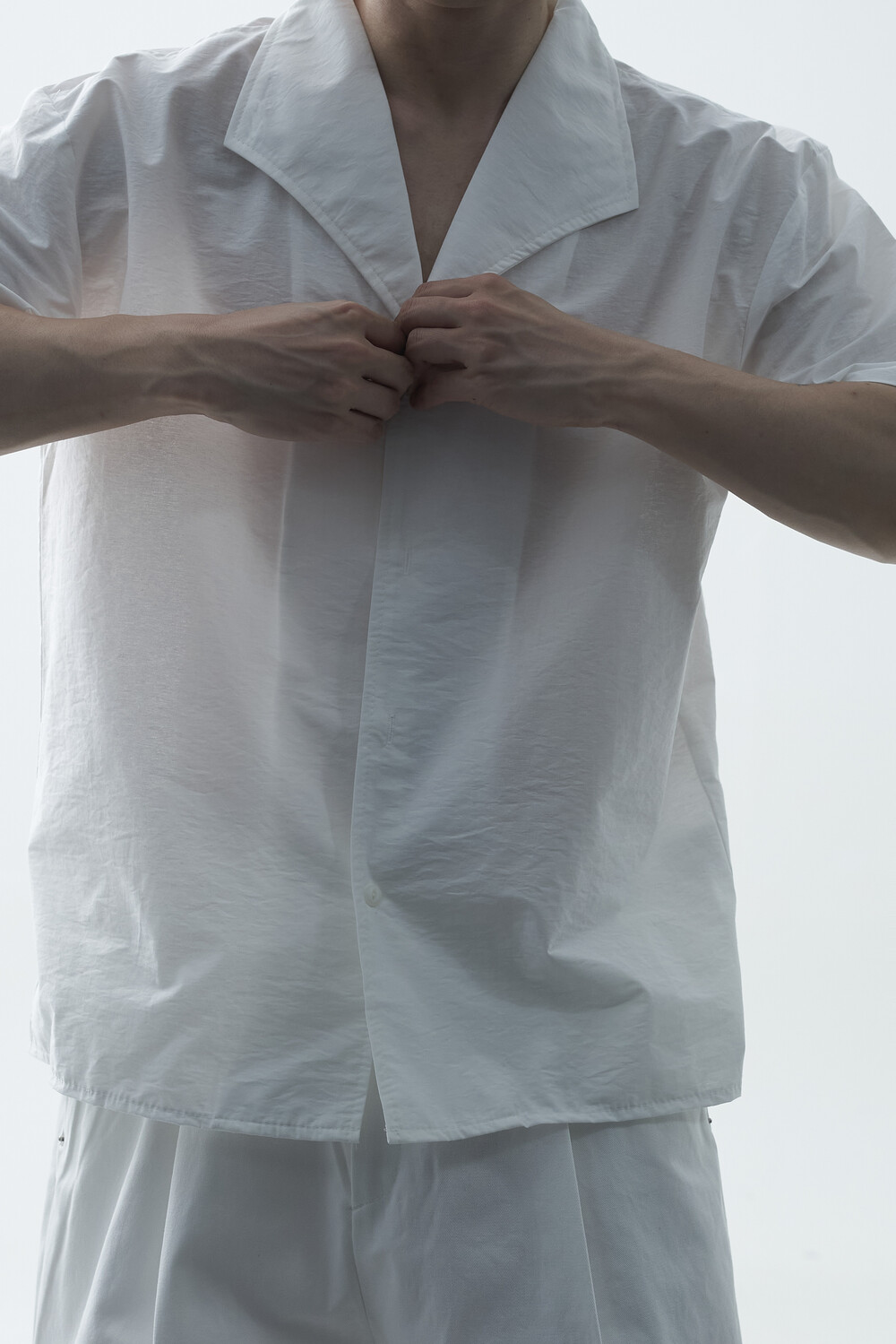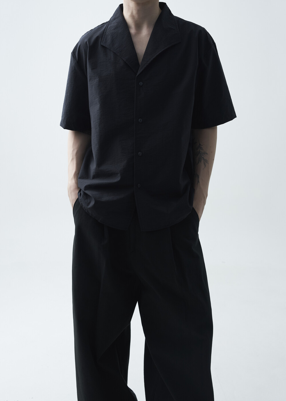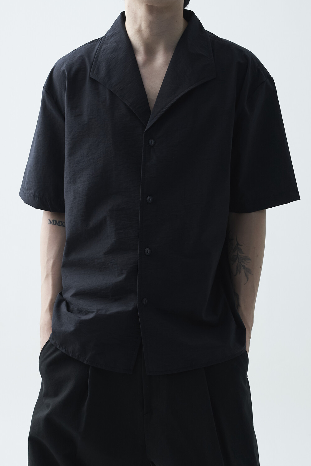 숄카라 스타일의 딥한 브이넥 반팔셔츠 제품입니다. 코튼 나일론 혼방 소재감으로 계절감에 알맞도록 시원한 착용감이 두드러지며, 쉽게 무너지지 않는 핏을 연출합니다. 미니멀한 실루엣으로 추천드립니다.