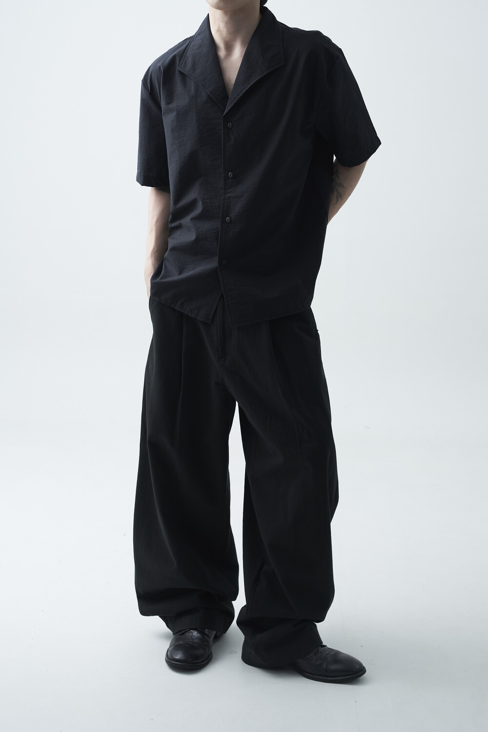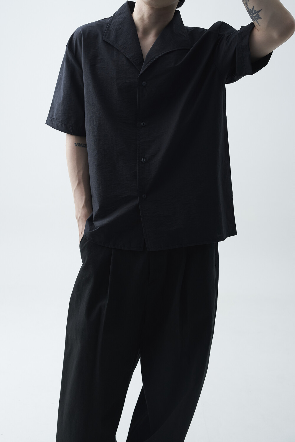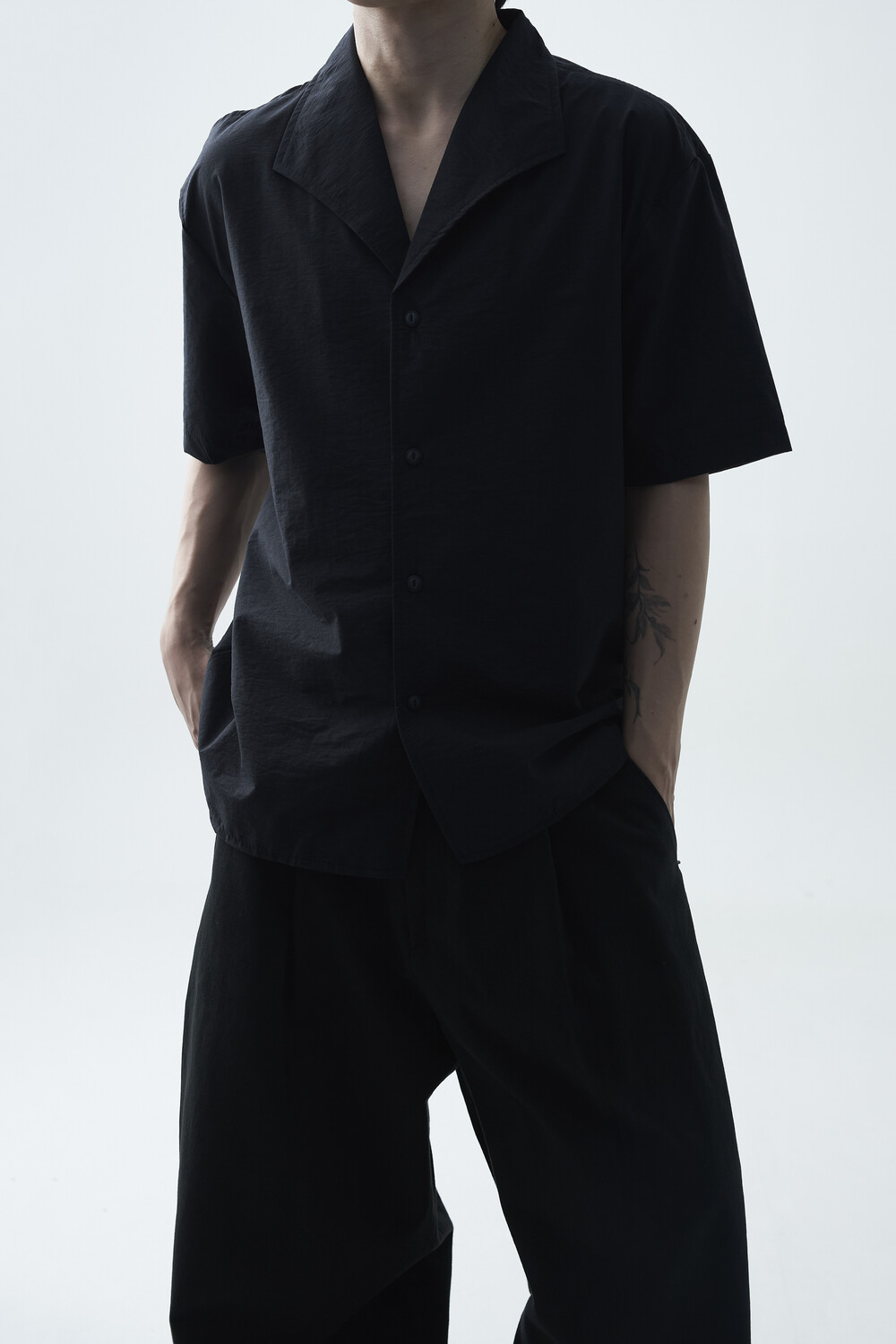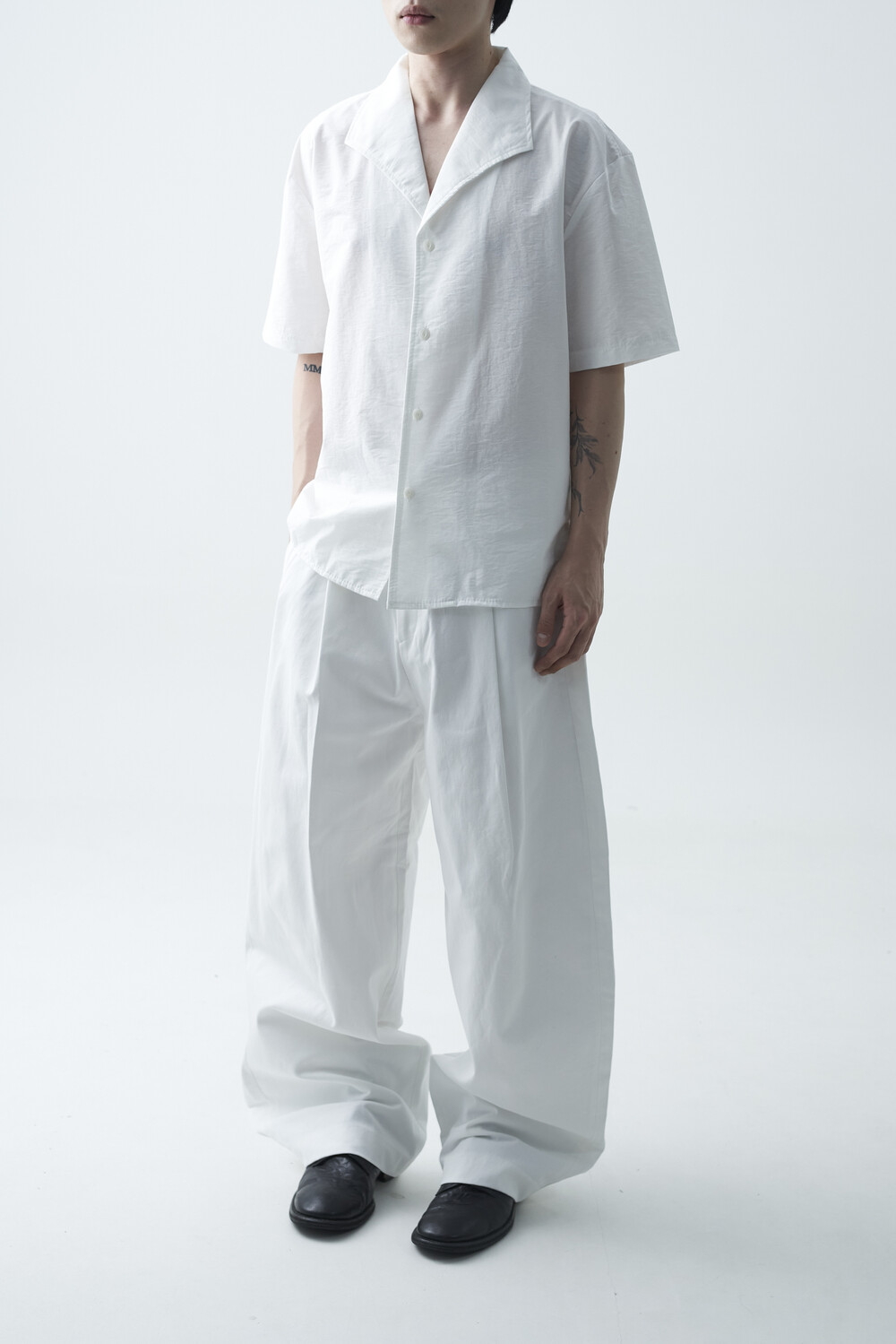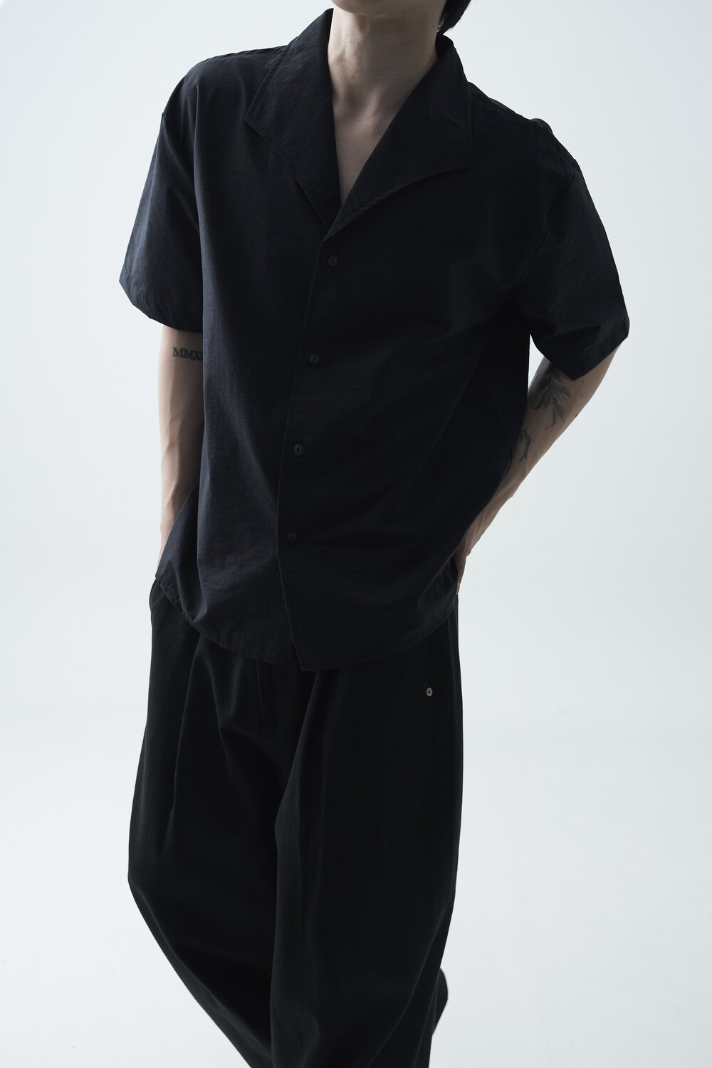 숄카라 스타일의 딥한 브이넥 반팔셔츠 제품입니다. 코튼 나일론 혼방 소재감으로 계절감에 알맞도록 시원한 착용감이 두드러지며, 쉽게 무너지지 않는 핏을 연출합니다. 미니멀한 실루엣으로 추천드립니다.