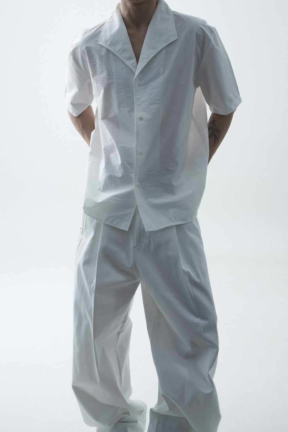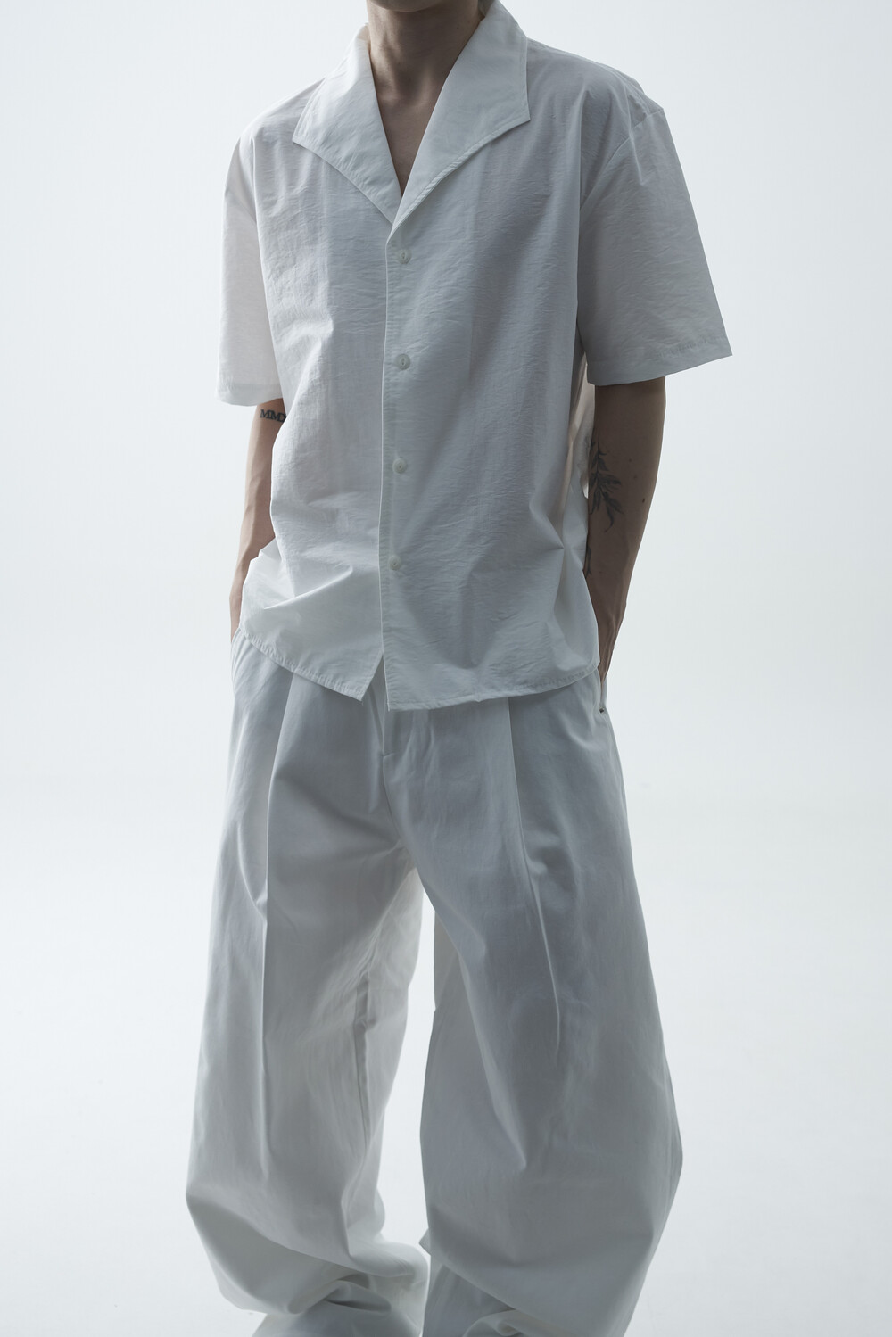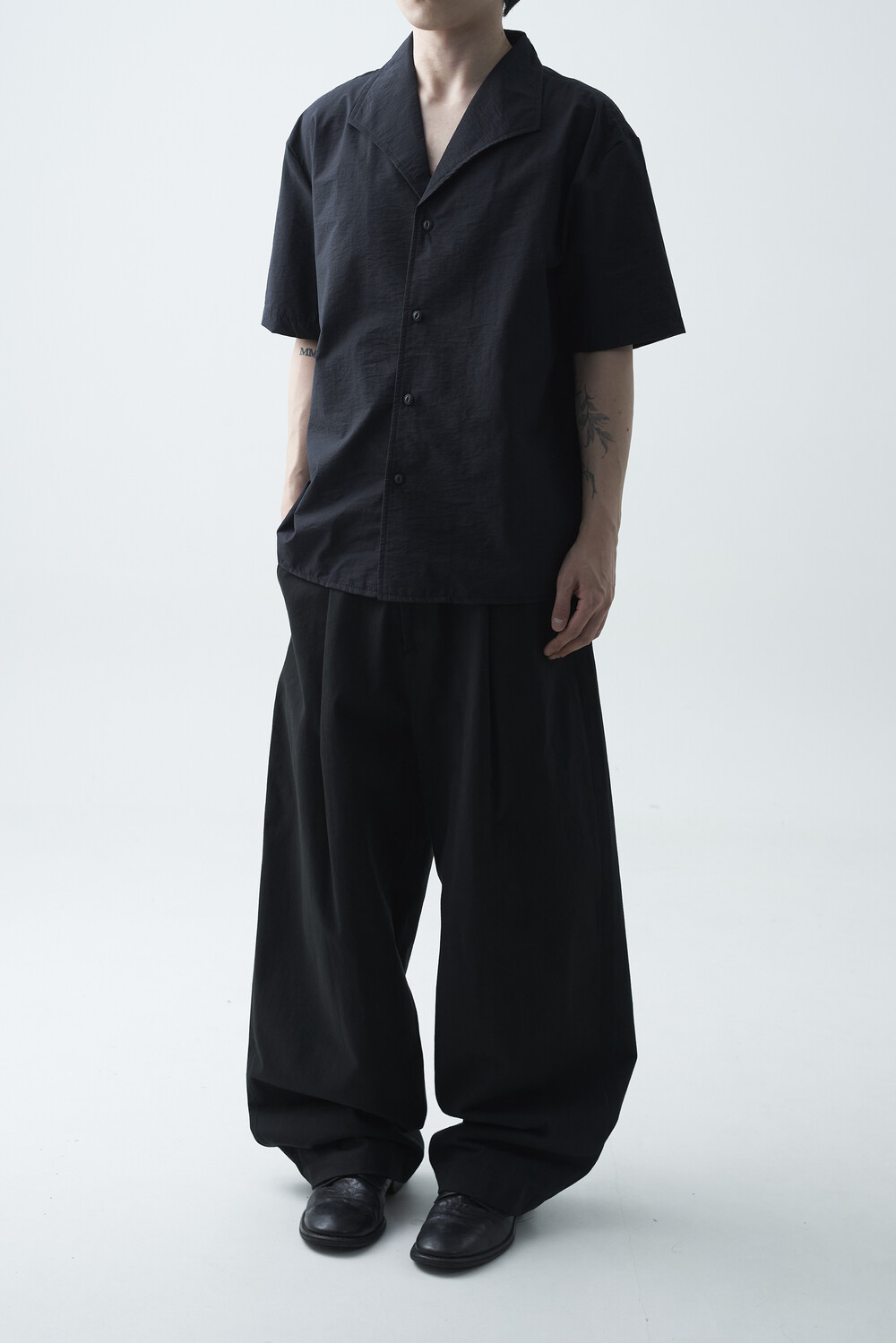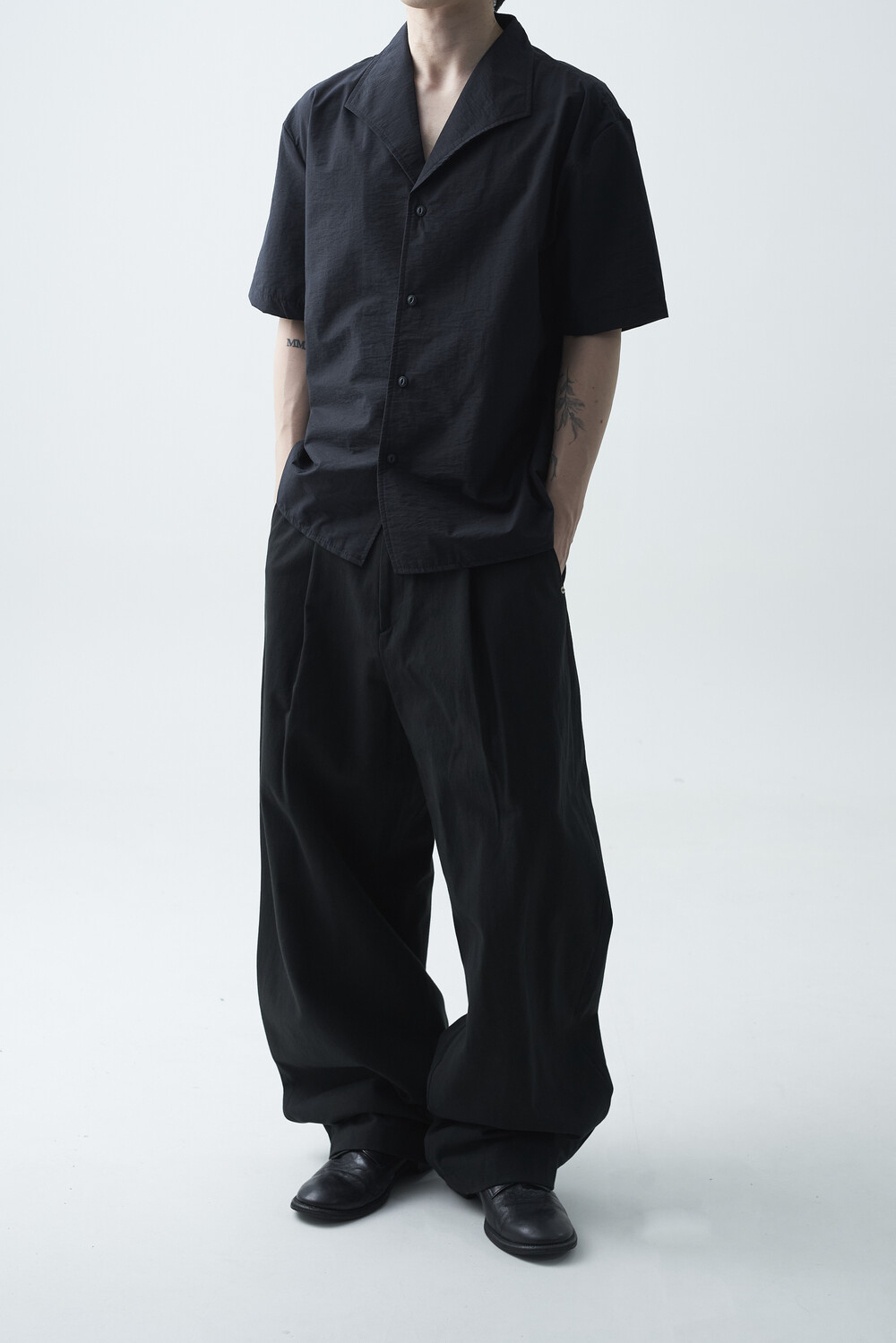 숄카라 스타일의 딥한 브이넥 반팔셔츠 제품입니다. 코튼 나일론 혼방 소재감으로 계절감에 알맞도록 시원한 착용감이 두드러지며, 쉽게 무너지지 않는 핏을 연출합니다. 미니멀한 실루엣으로 추천드립니다.