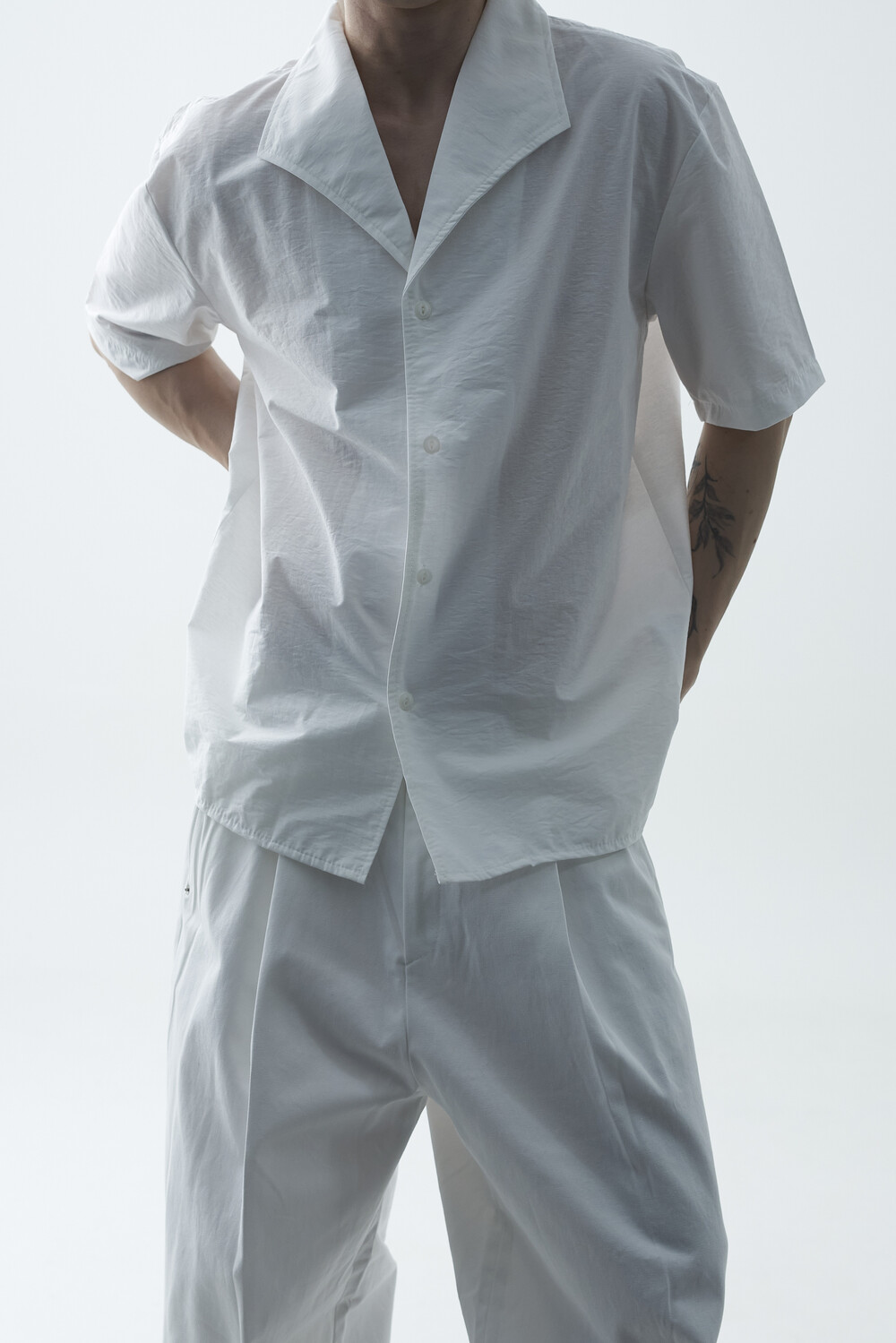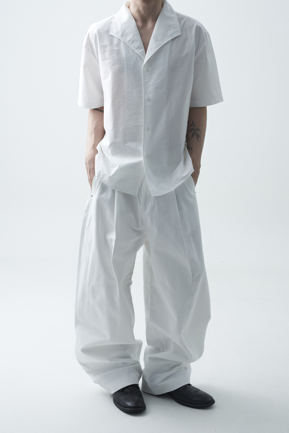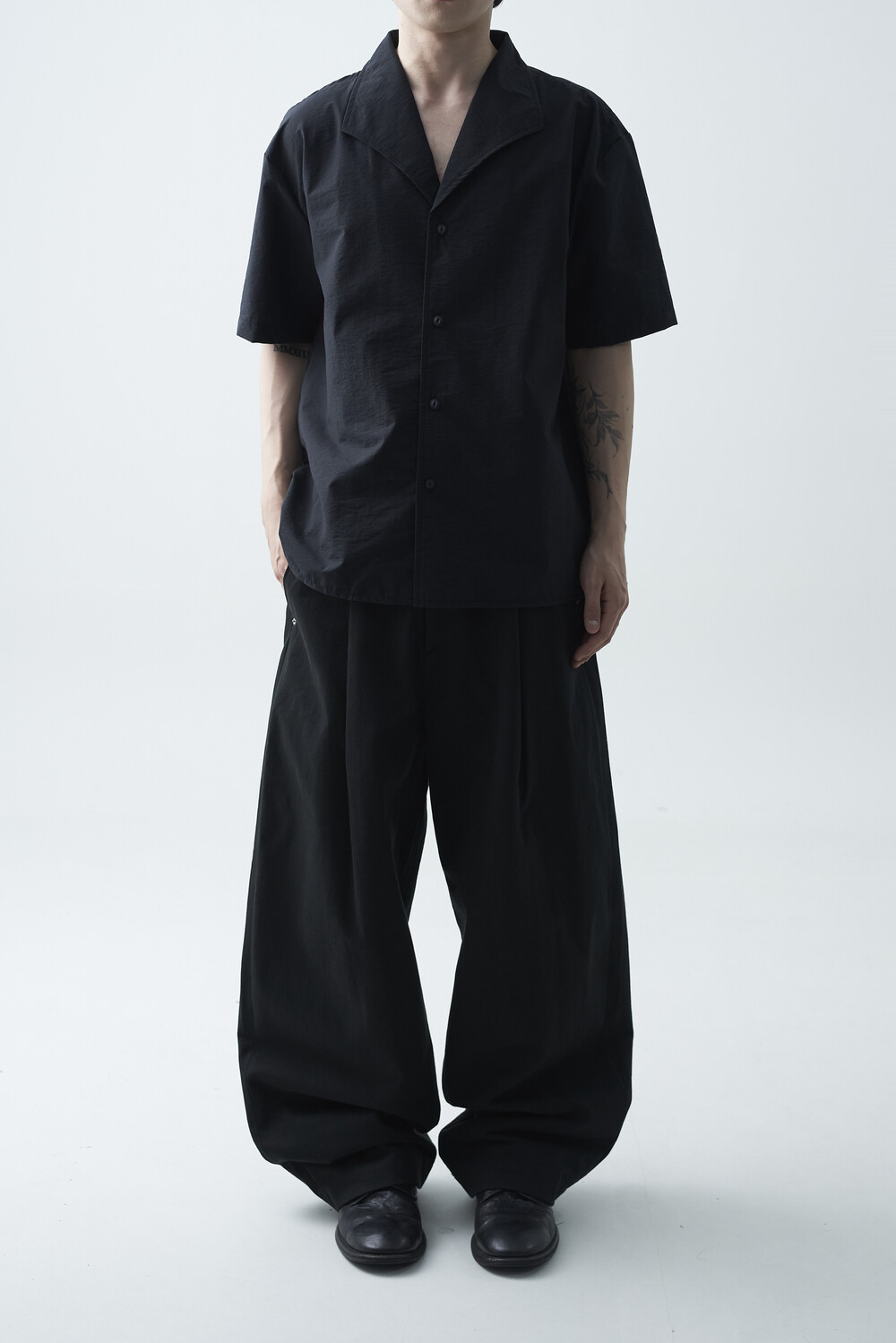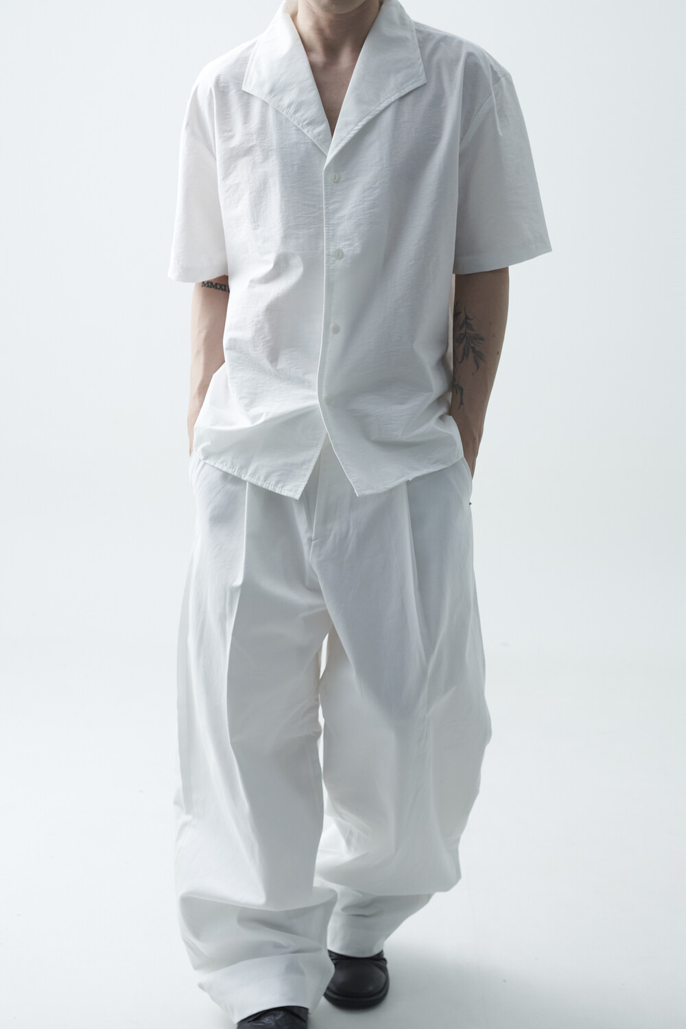 숄카라 스타일의 딥한 브이넥 반팔셔츠 제품입니다. 코튼 나일론 혼방 소재감으로 계절감에 알맞도록 시원한 착용감이 두드러지며, 쉽게 무너지지 않는 핏을 연출합니다. 미니멀한 실루엣으로 추천드립니다.