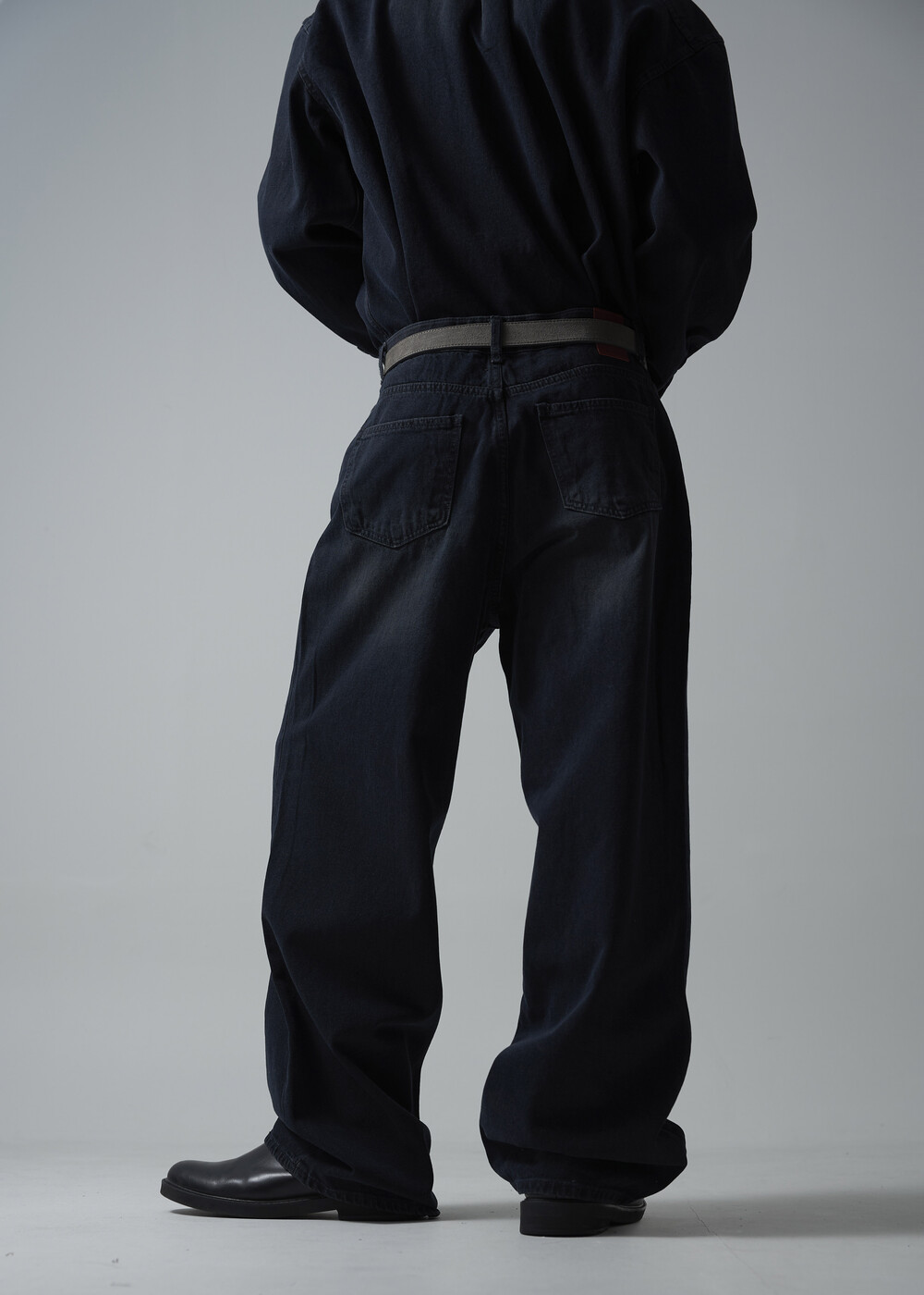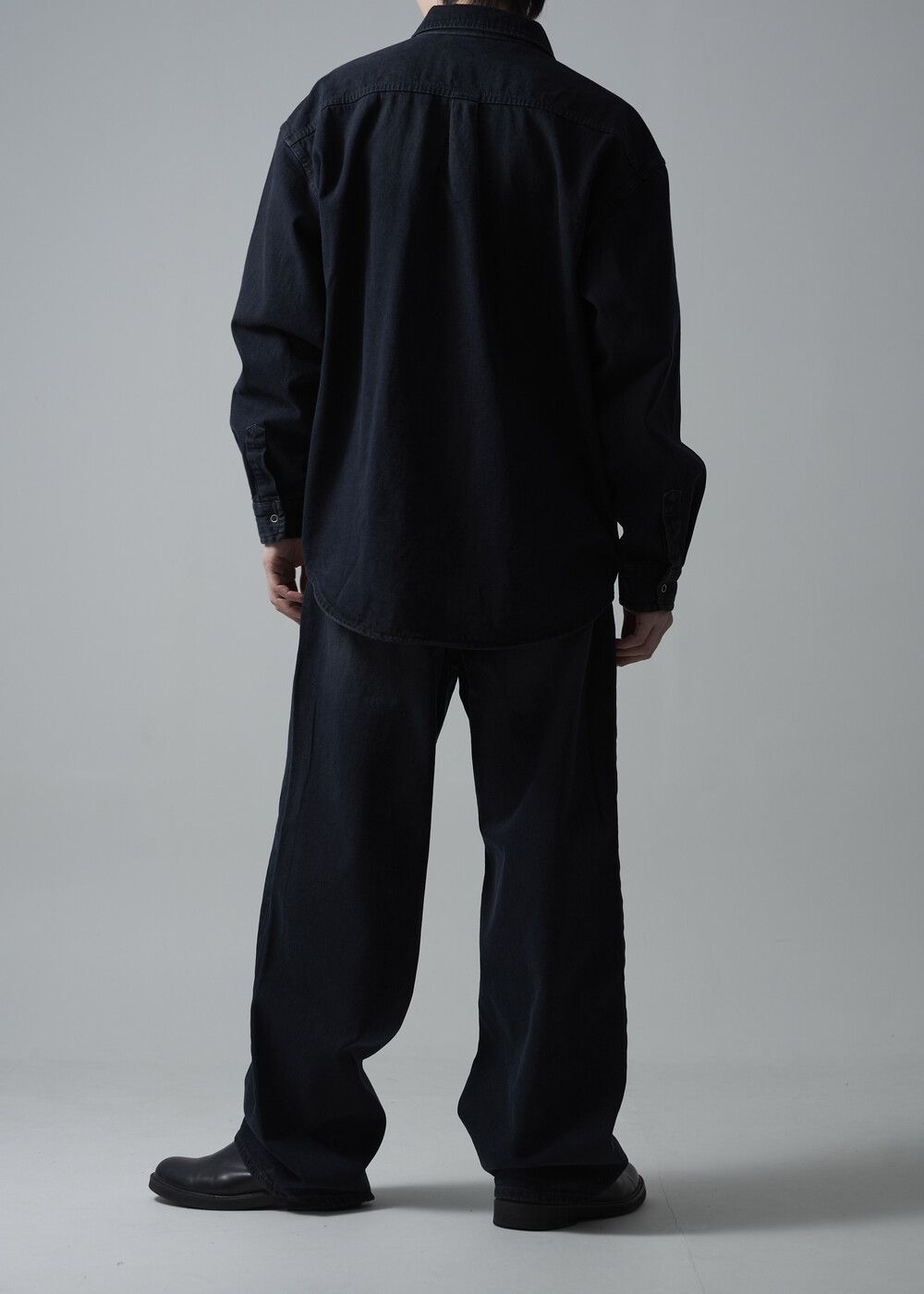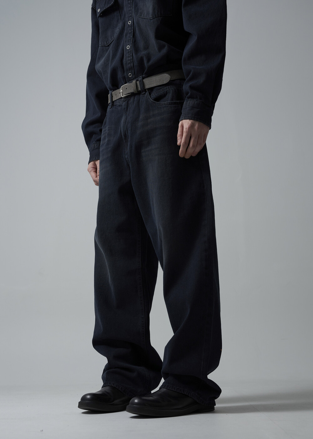 - 워시드 블랙 코튼 데님 소재