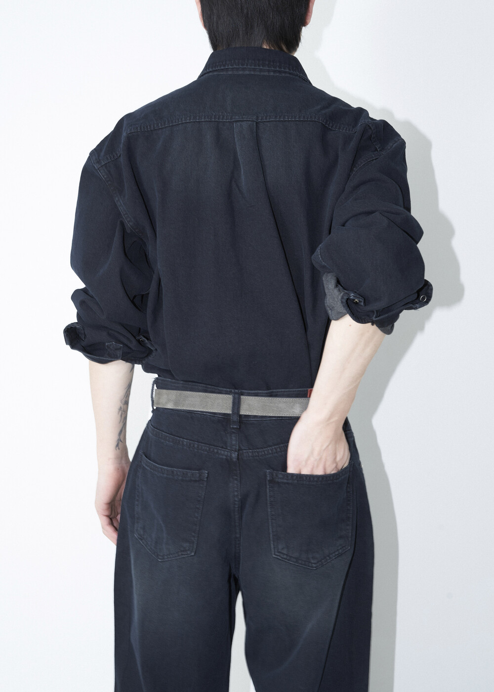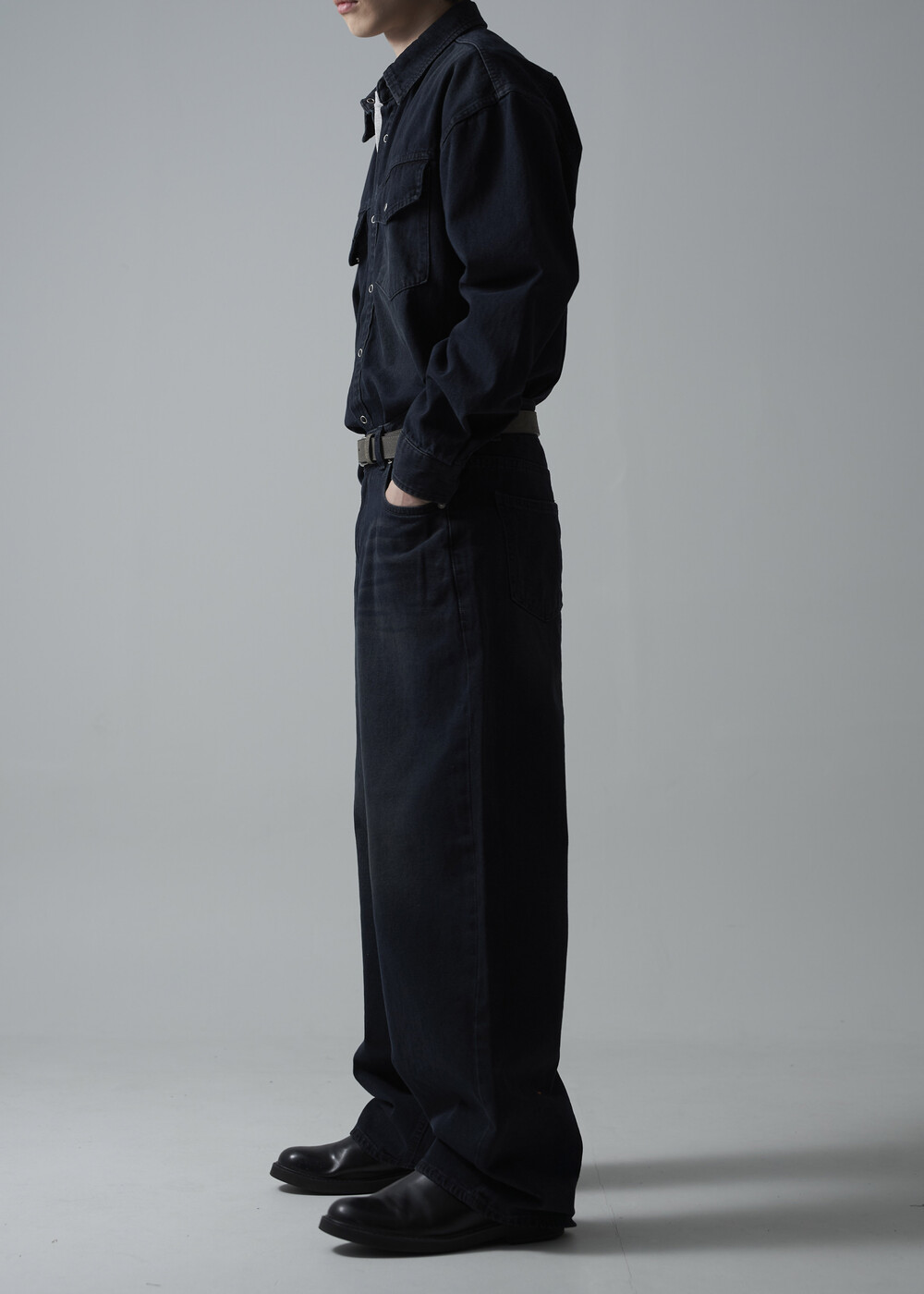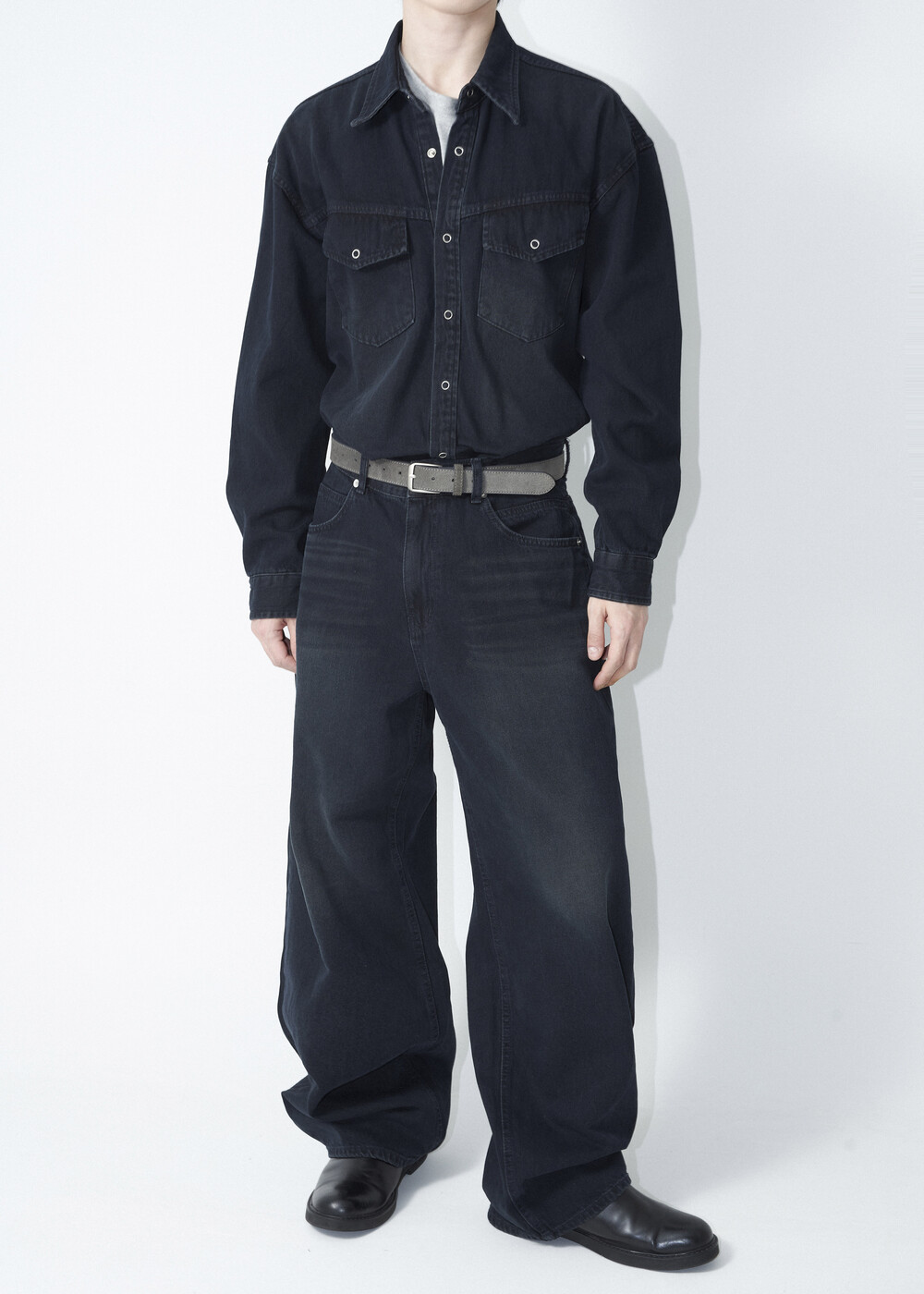 - 워시드 블랙 코튼 데님 소재