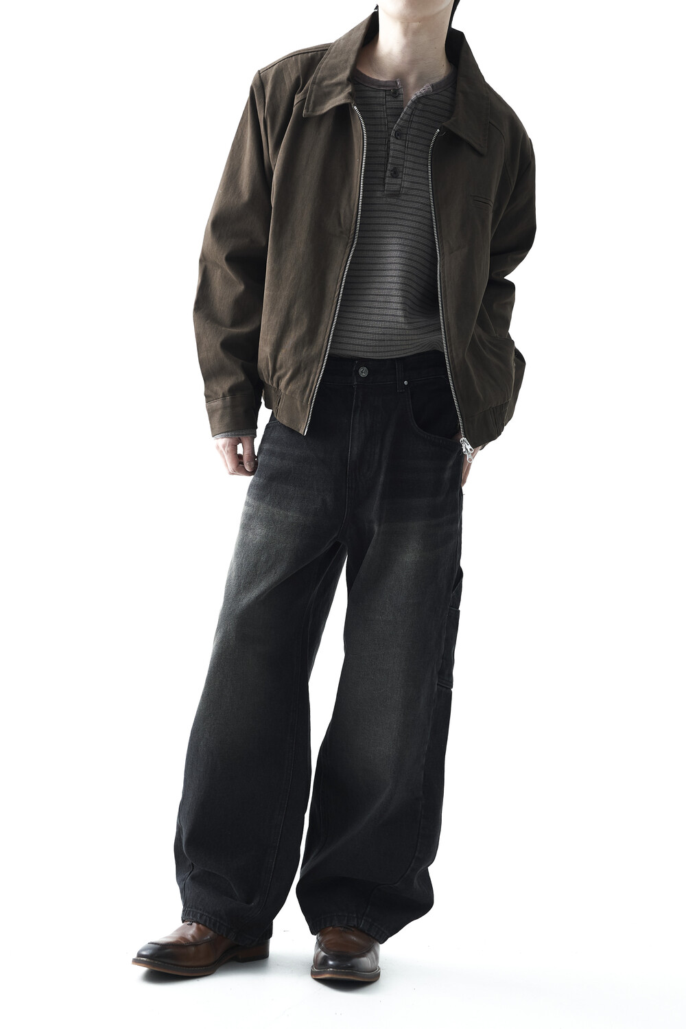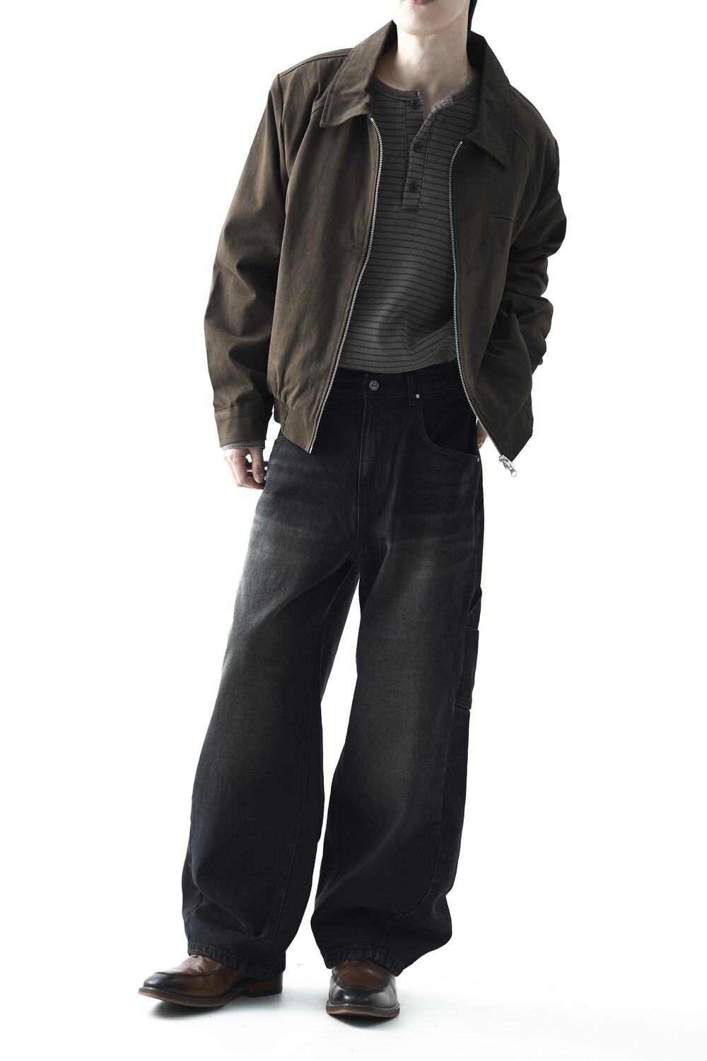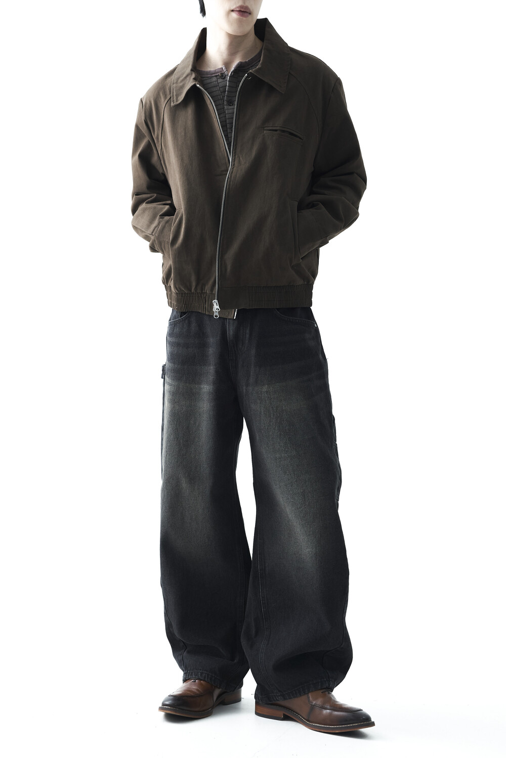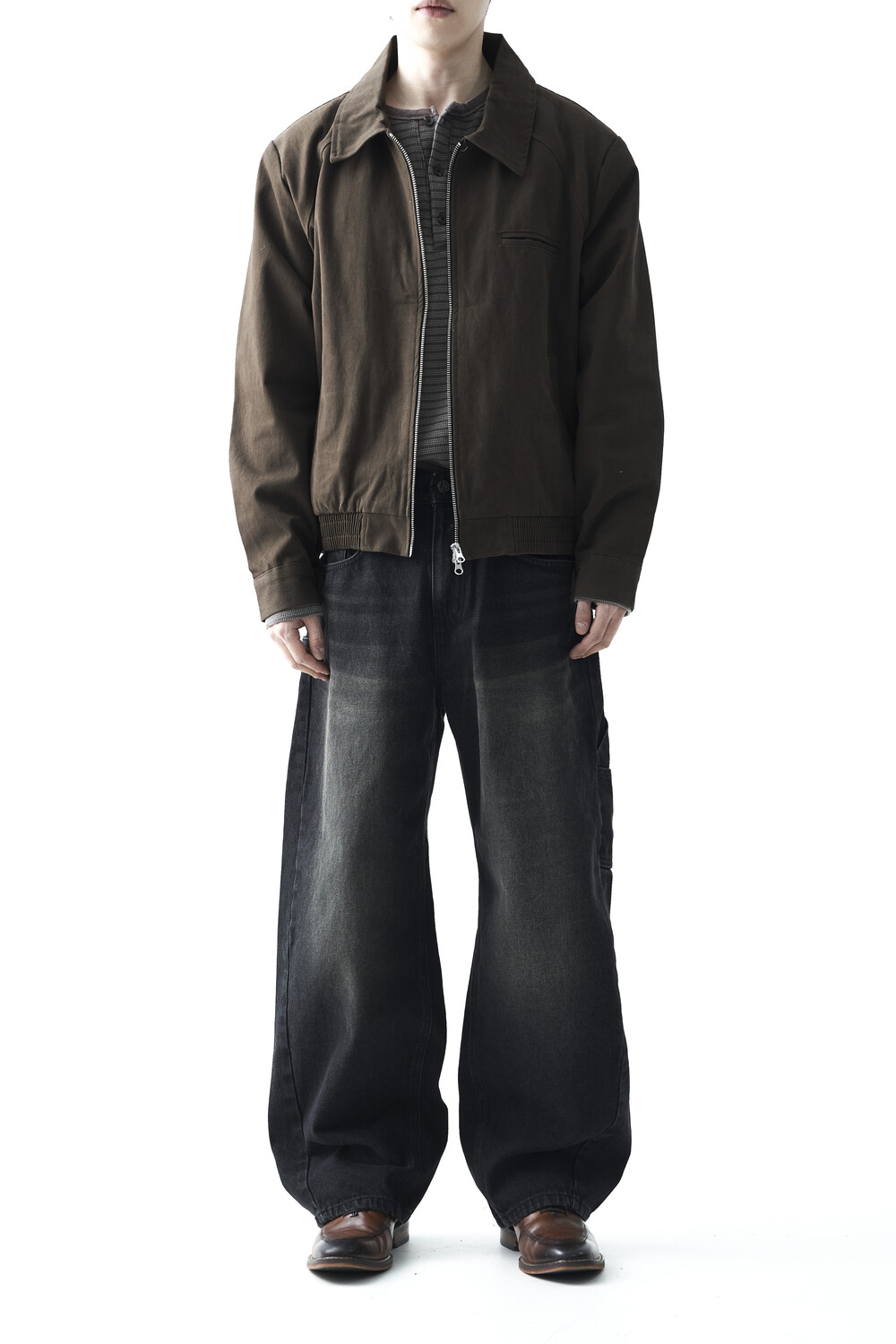 - 카치온 바이오 워싱 코튼 소재감의 미니멀한 자켓 제품입니다. 빈티지 무드의 워시드 브라운 컬러감으로 다운톤 코디에 효과적인 레이어드 코디감을 표현합니다. 하단 밴딩이 적용되어 활동성에도 뛰어난 착용감을 나타냅니다.