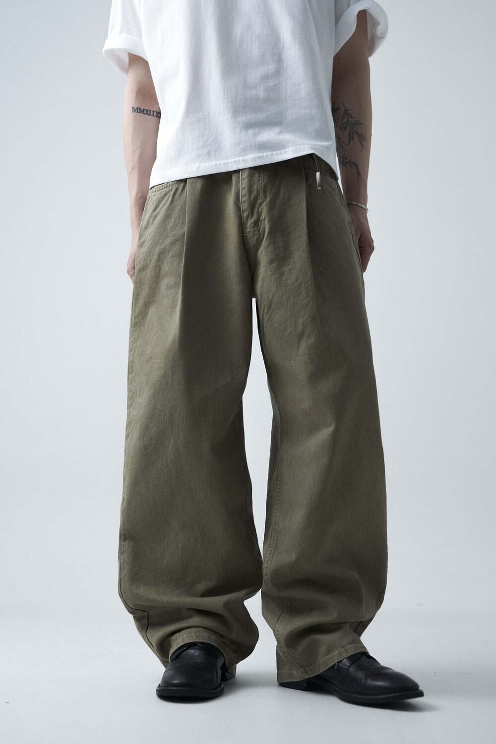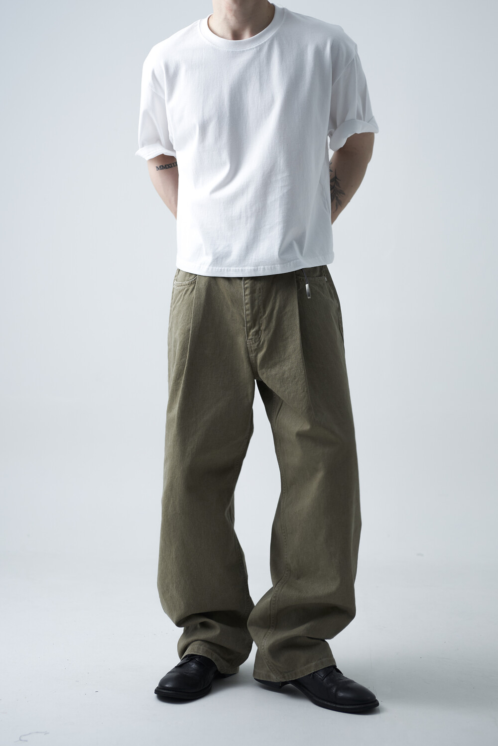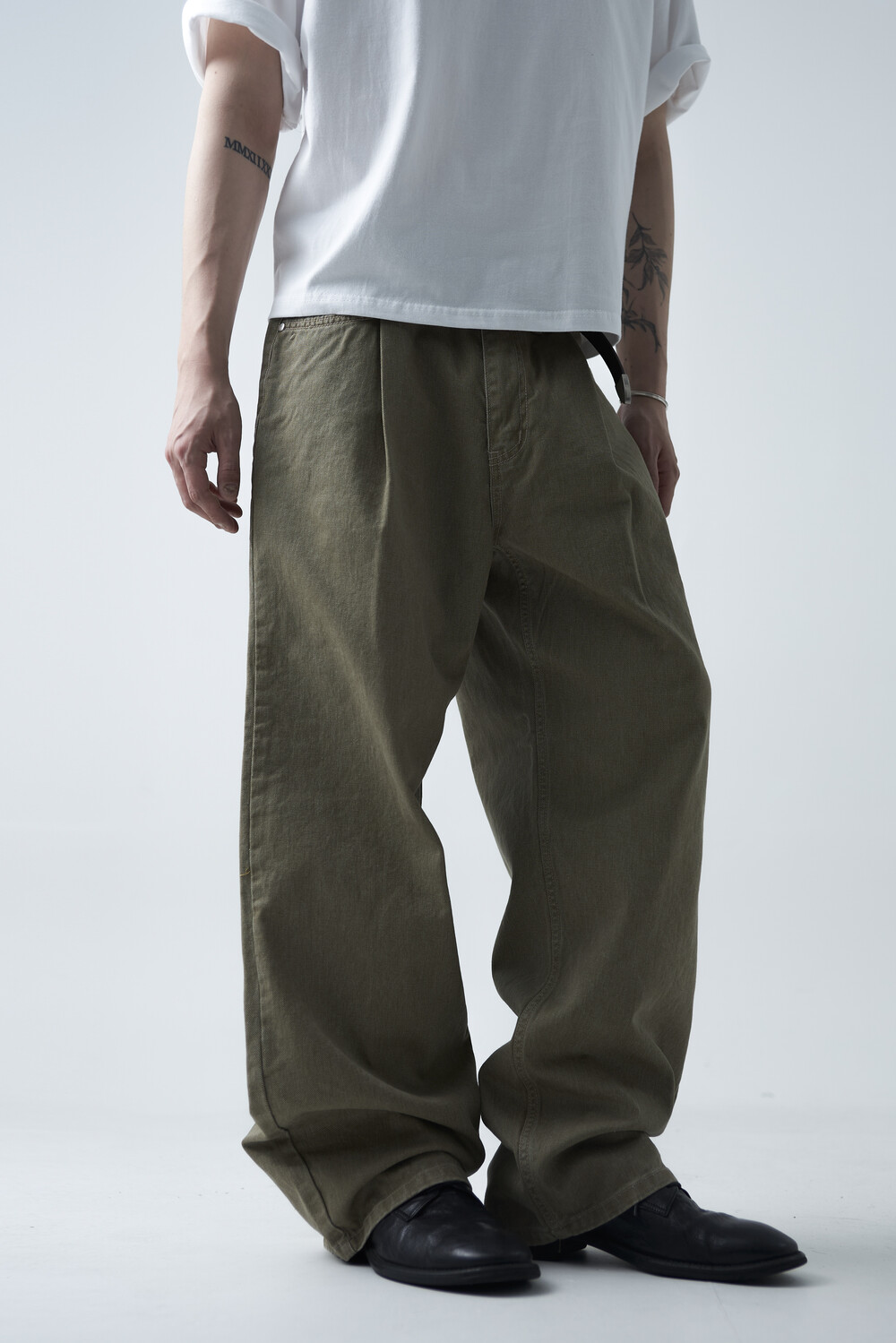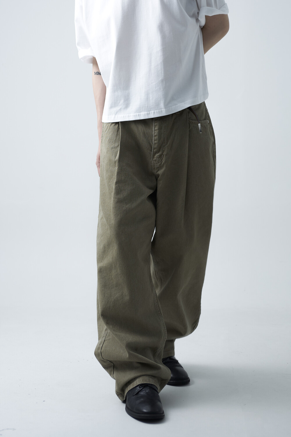 12oz의 카치온 원단으로 구성되어 탄탄한 착용감과 함께 딥 원턱 디테일로 4계절 모두 착용하실 수 있는 와이드 팬츠 제품입니다. 깔끔하게 잡힌 와이드 핏감이 상당히 매력적인 팬츠 제품으로 빈티지워싱을 통해 유니크한 컬러감을 표현합니다.
