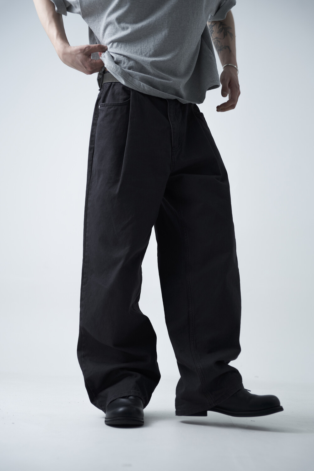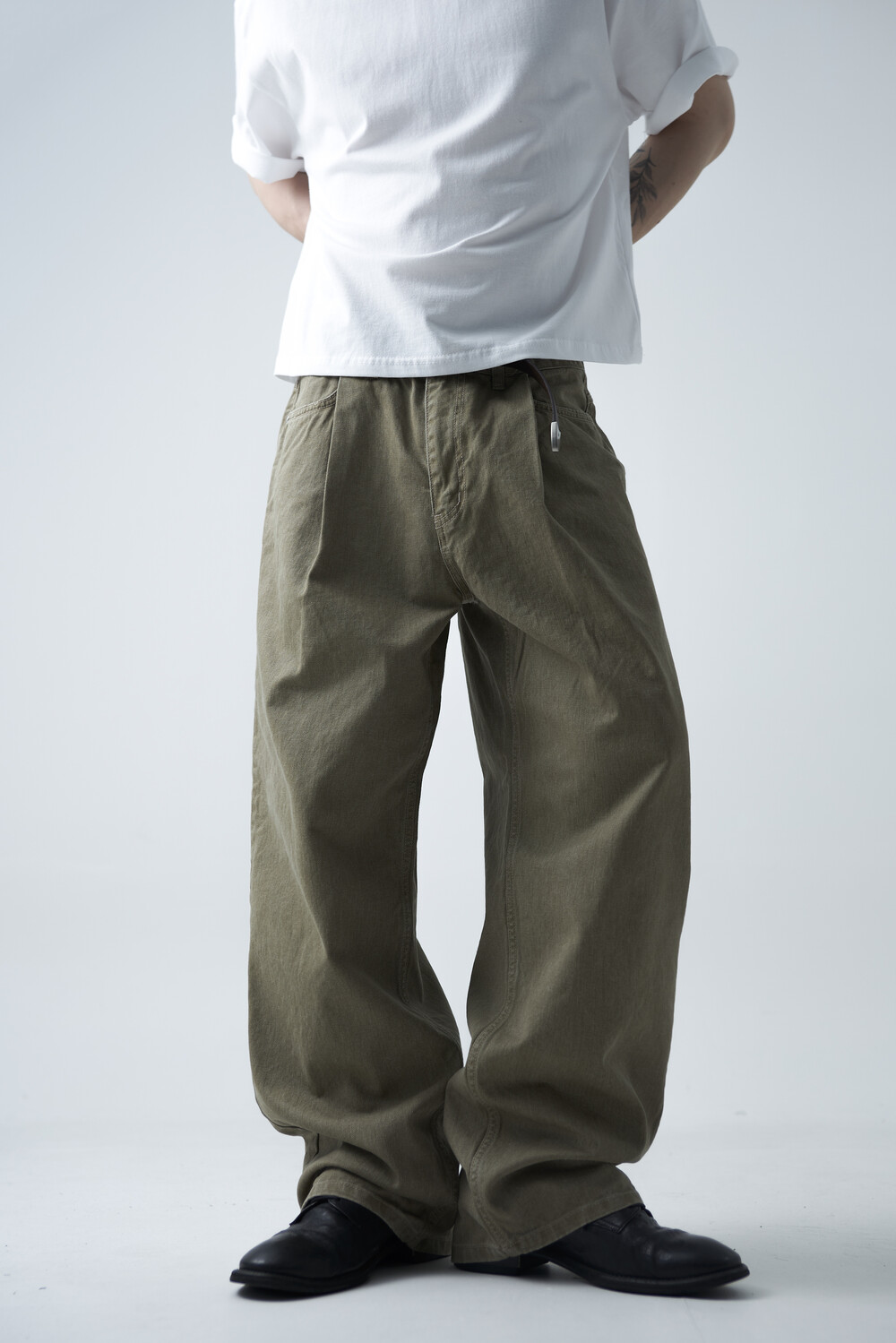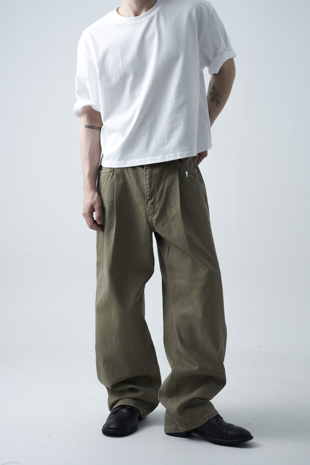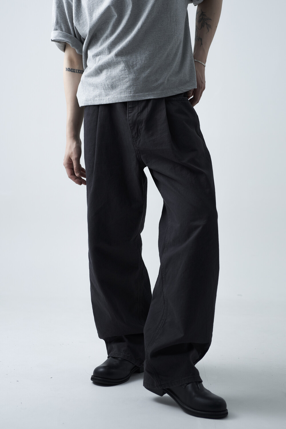 12oz의 카치온 원단으로 구성되어 탄탄한 착용감과 함께 딥 원턱 디테일로 4계절 모두 착용하실 수 있는 와이드 팬츠 제품입니다. 깔끔하게 잡힌 와이드 핏감이 상당히 매력적인 팬츠 제품으로 빈티지워싱을 통해 유니크한 컬러감을 표현합니다.