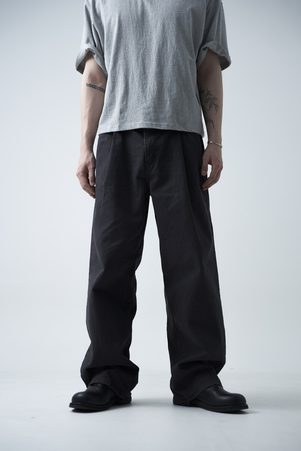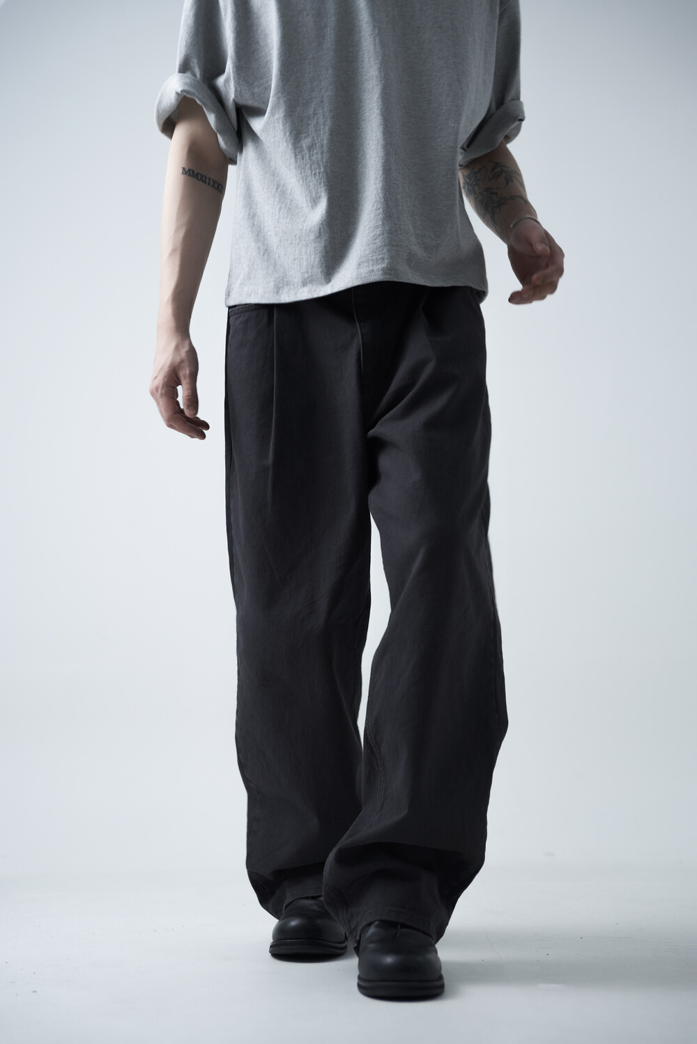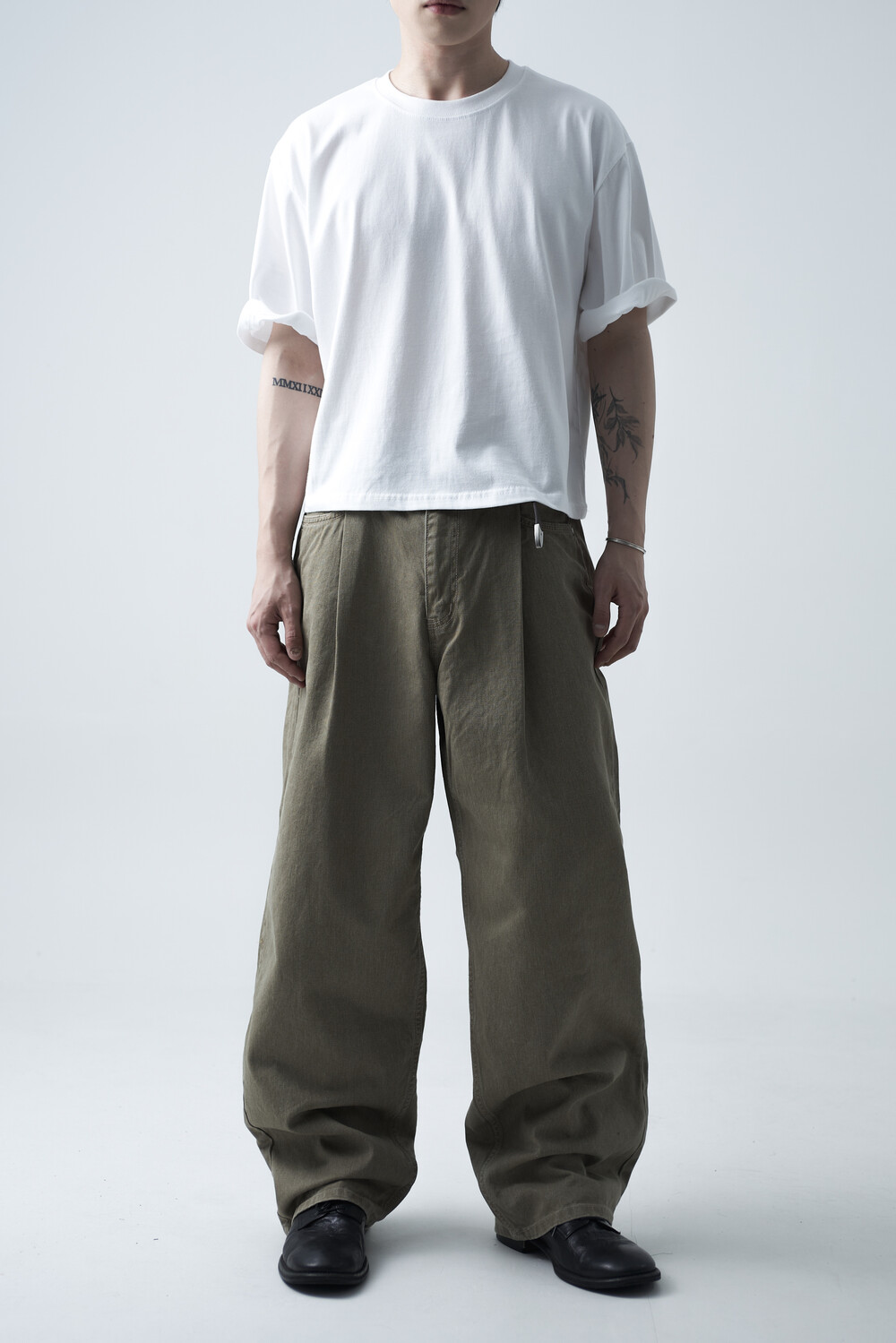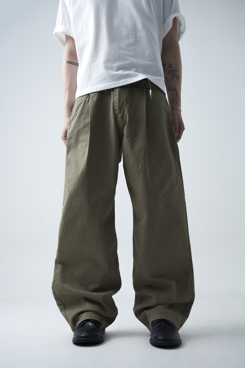 12oz의 카치온 원단으로 구성되어 탄탄한 착용감과 함께 딥 원턱 디테일로 4계절 모두 착용하실 수 있는 와이드 팬츠 제품입니다. 깔끔하게 잡힌 와이드 핏감이 상당히 매력적인 팬츠 제품으로 빈티지워싱을 통해 유니크한 컬러감을 표현합니다.