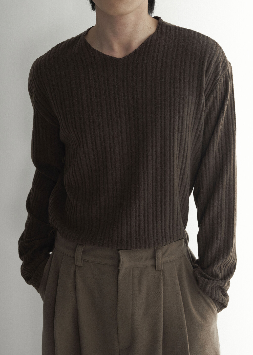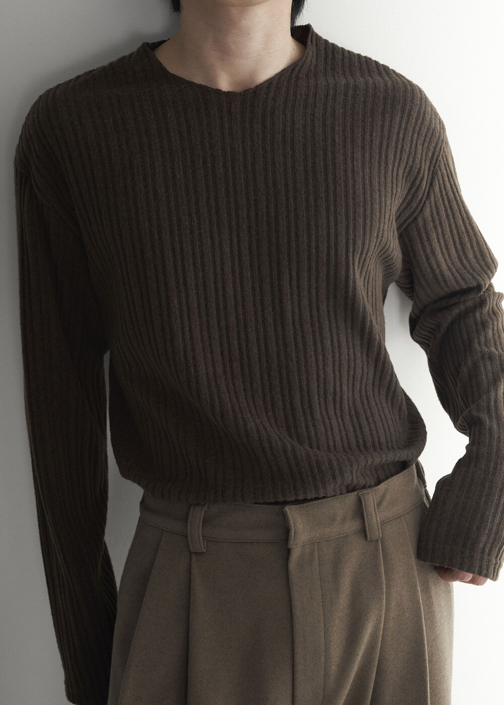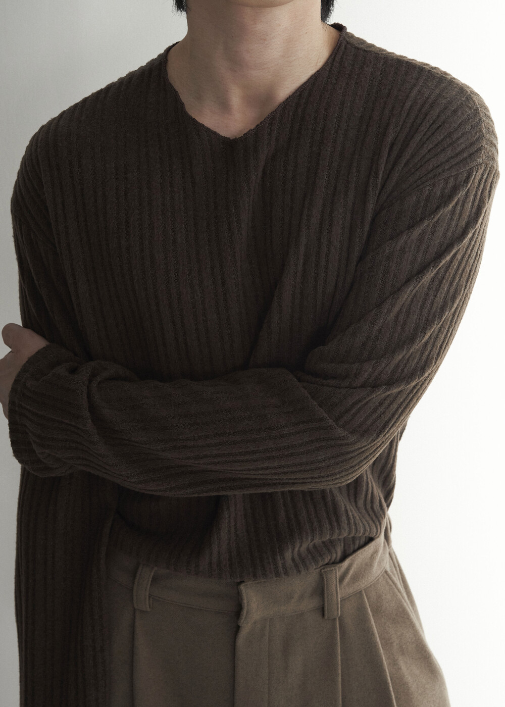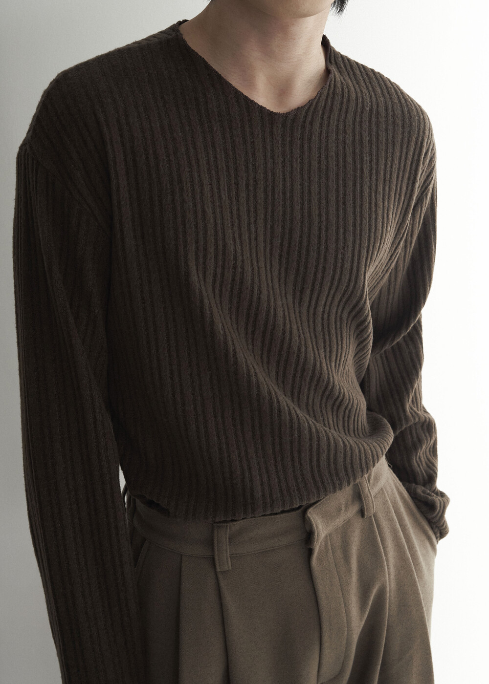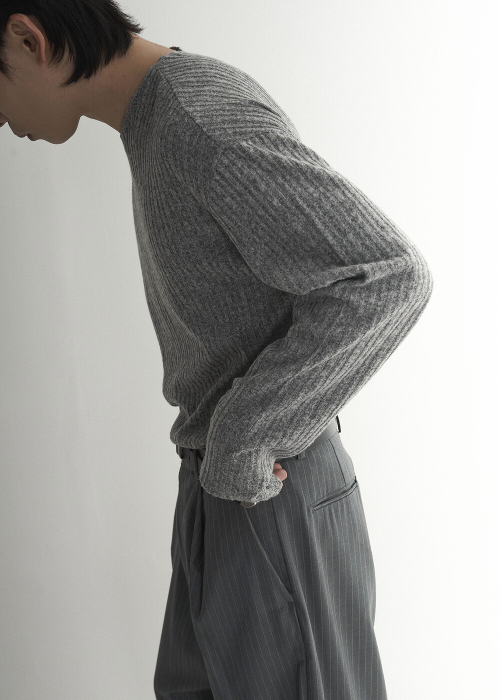 - 밑단 사각 트임과 데끼 작업이 추가되어 더욱 프리미엄 니트 느낌을 잘 담아낸 니트 제품