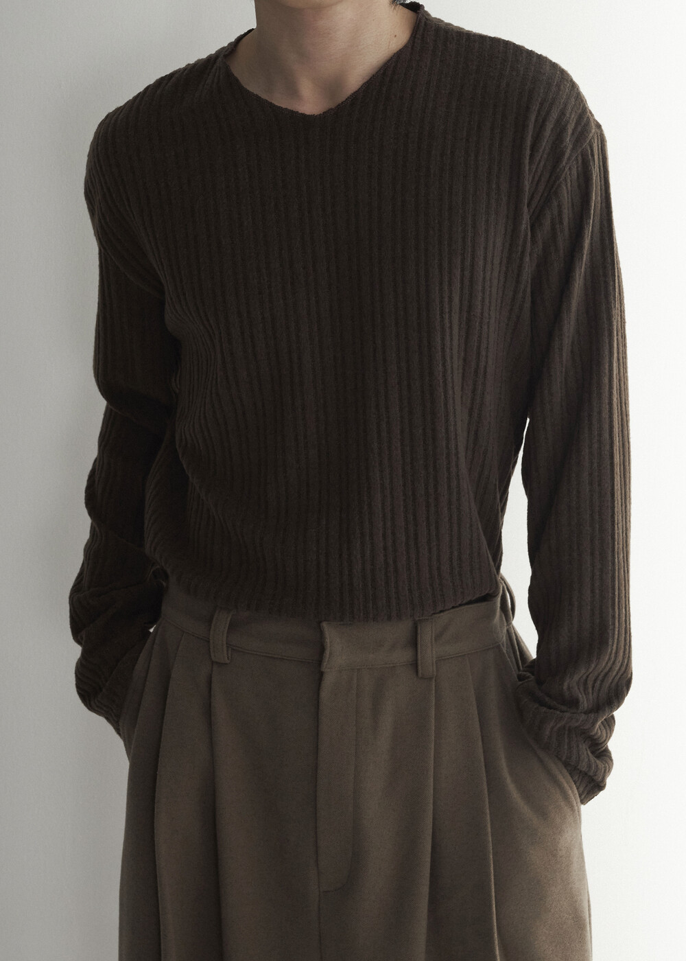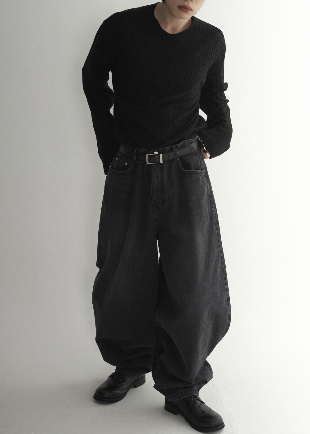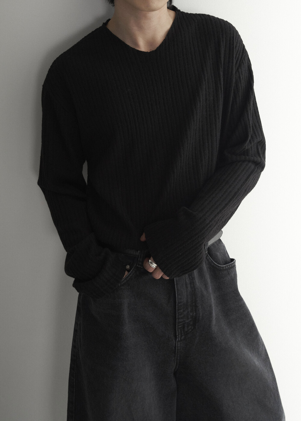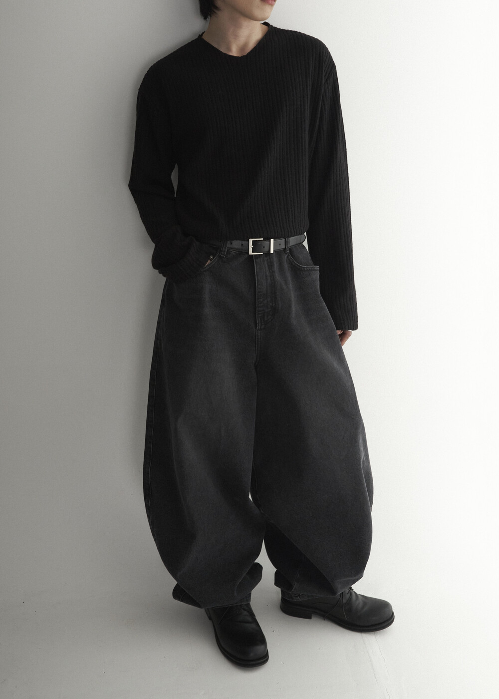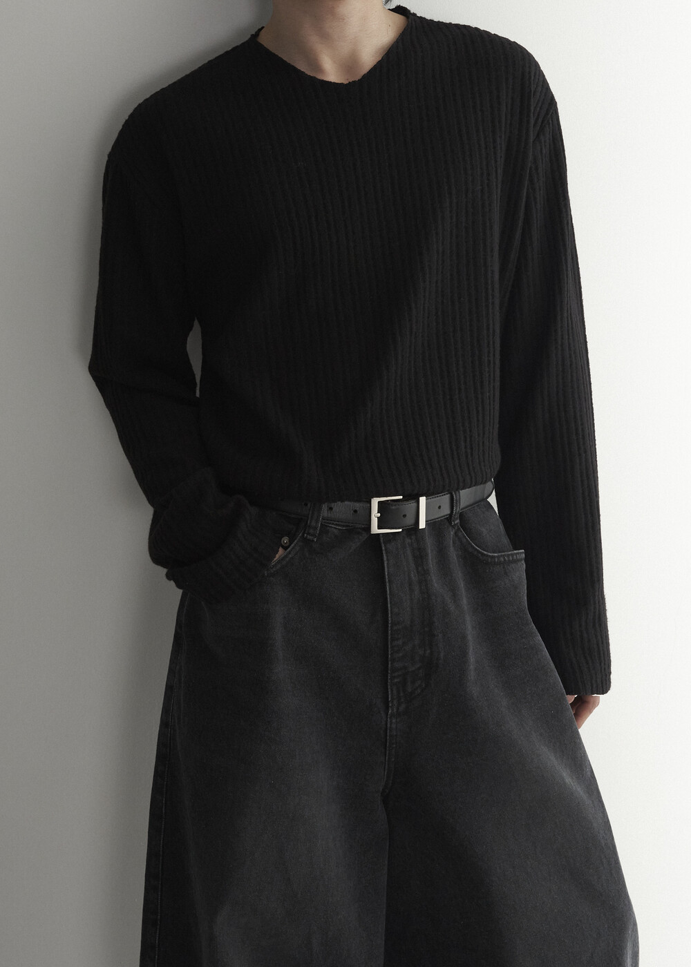 - 자연스럽게 직각으로 툭 떨어지는 실루엣 연출
