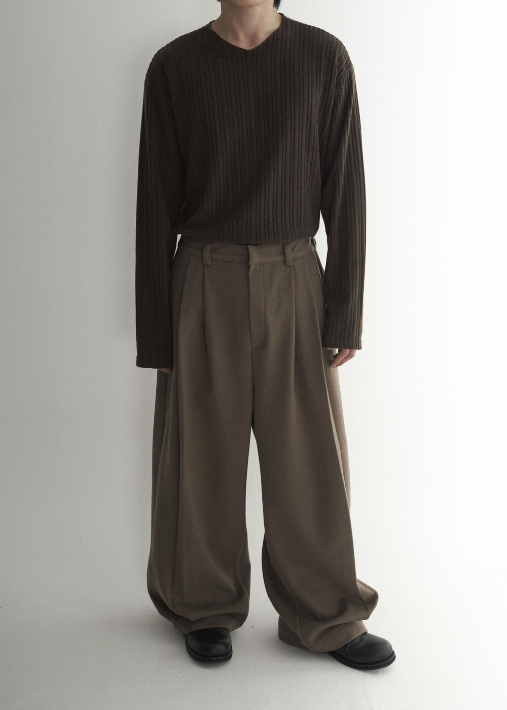 - 고급스러운 골지 패턴의 따뜻한 기모 소재감