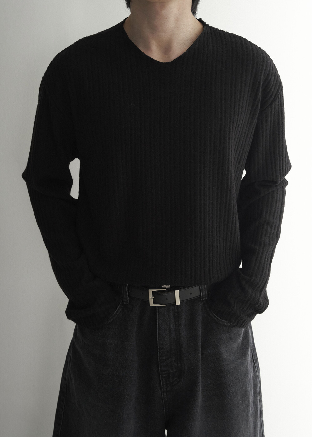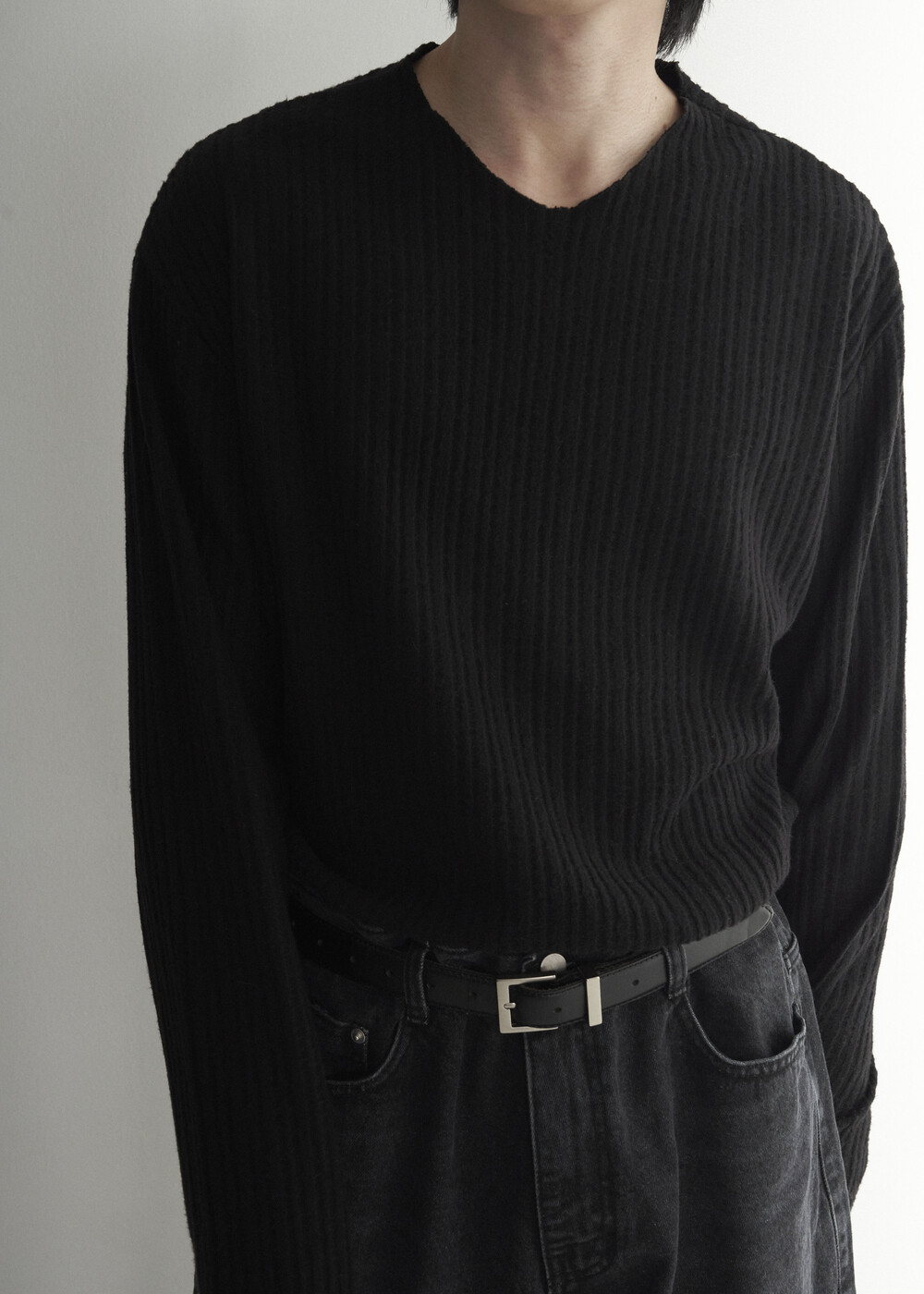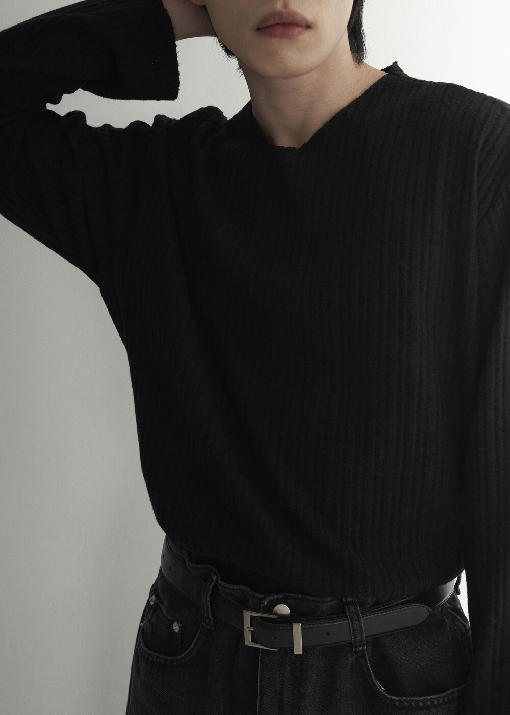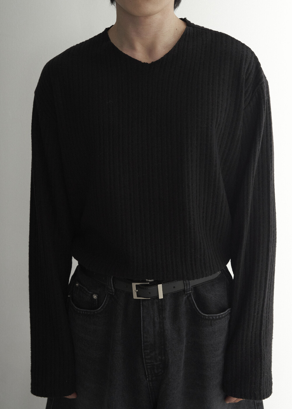 - 딥한 브이넥이 아닌 부담이 적은 라운드에 가까운 브이넥 라인으로 제작된 기모니트 제품