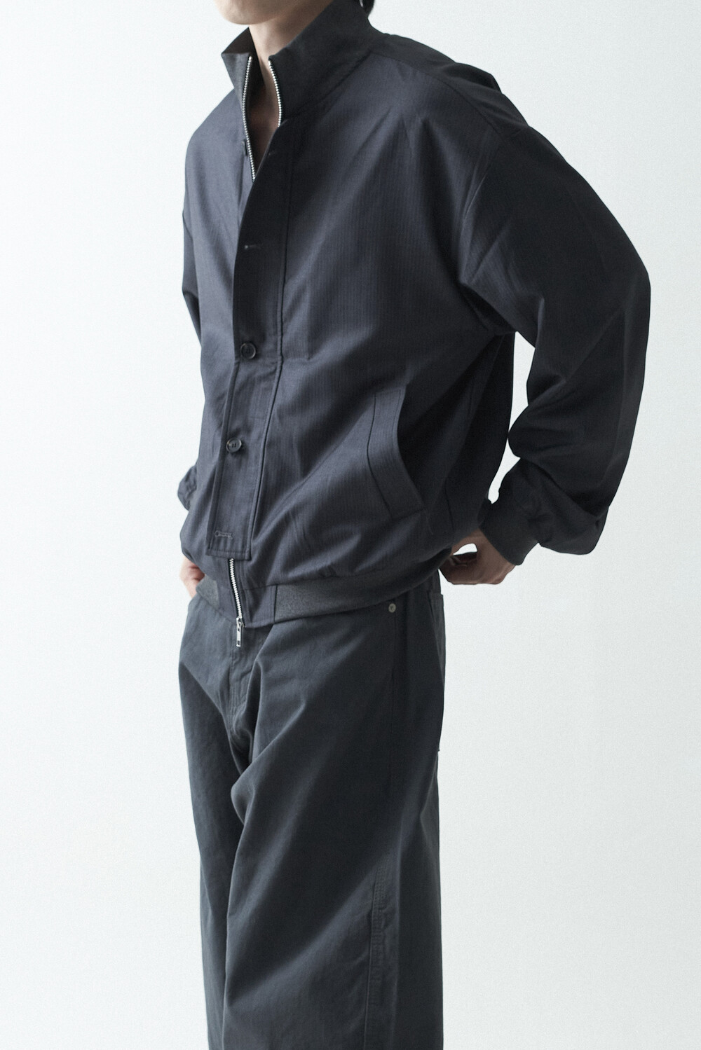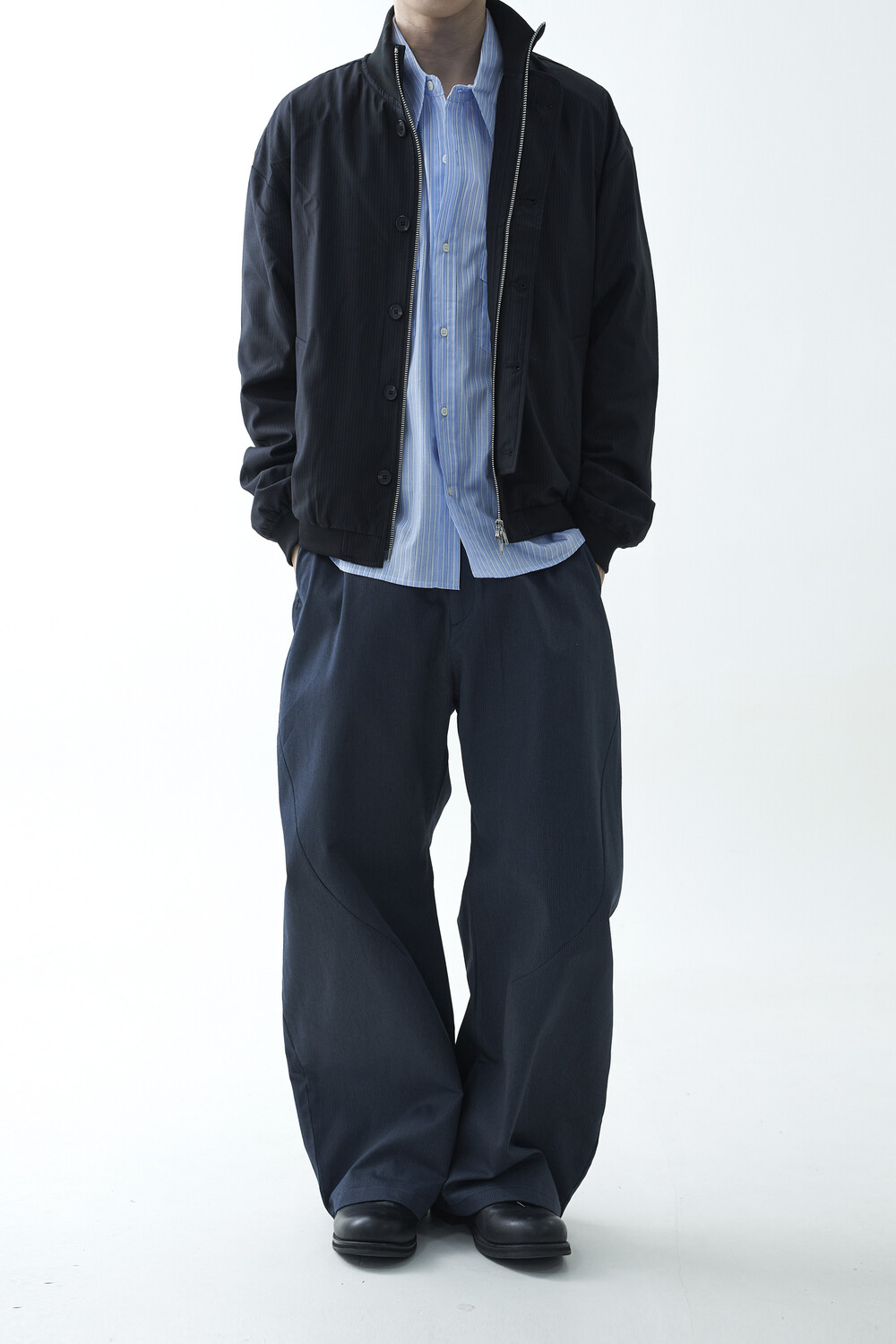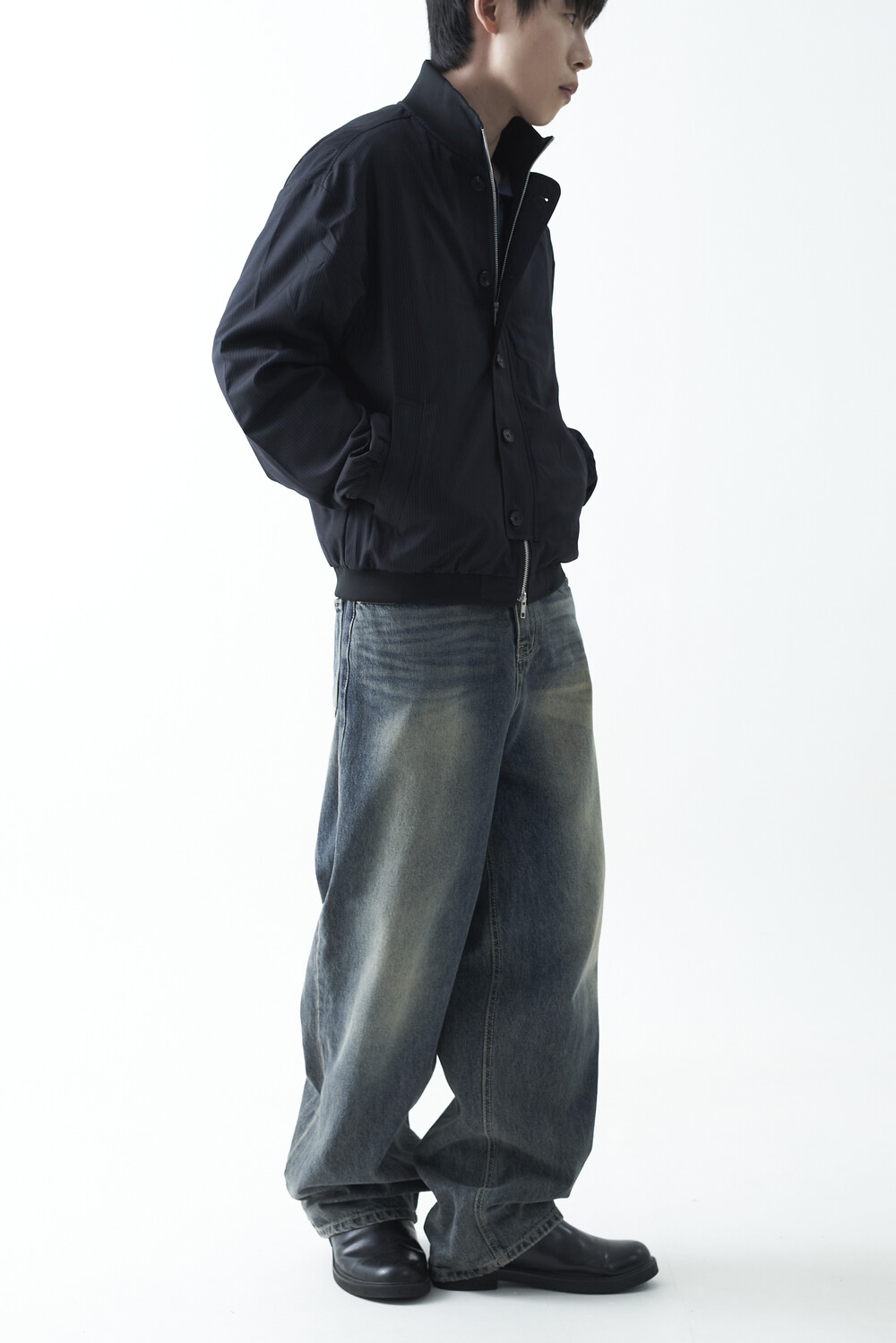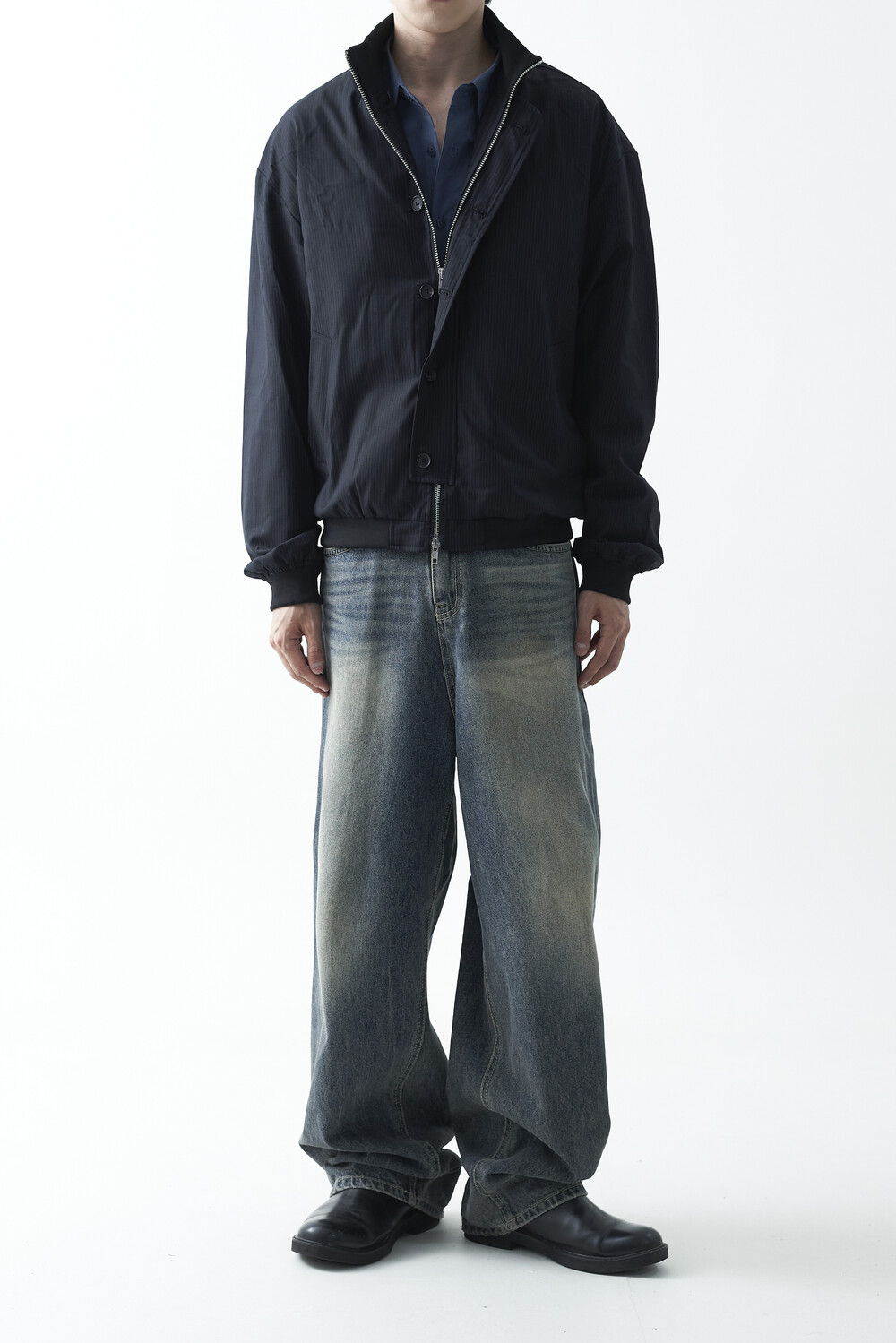세밀한 스트라이프 패턴이 적용된 점퍼 자켓 제품입니다. 투웨이 지퍼와 외부 단추 디테일이 적용되었으며 와이드한 숄더라인에 비해 크롭한 기장감이 트렌디한 아우터 제품입니다.