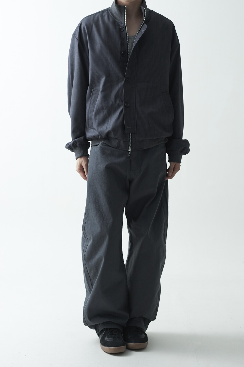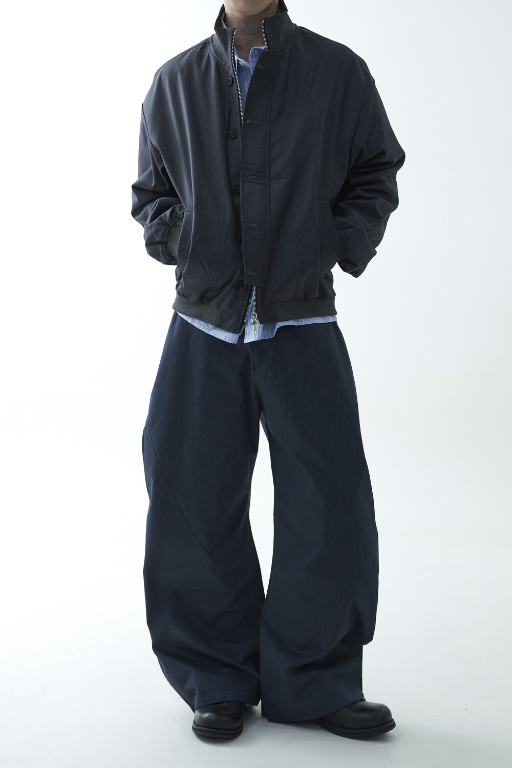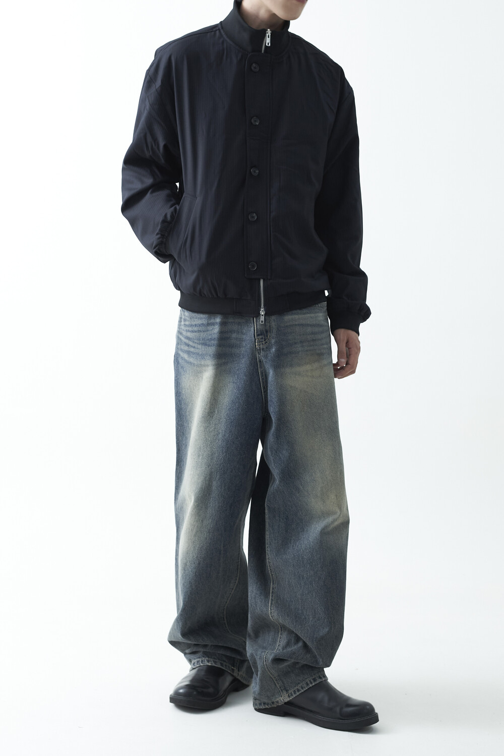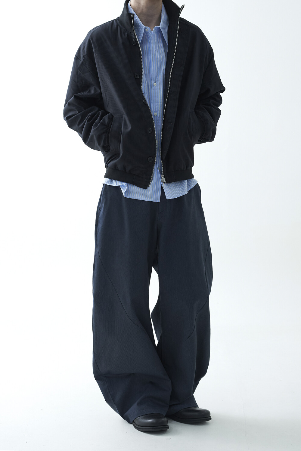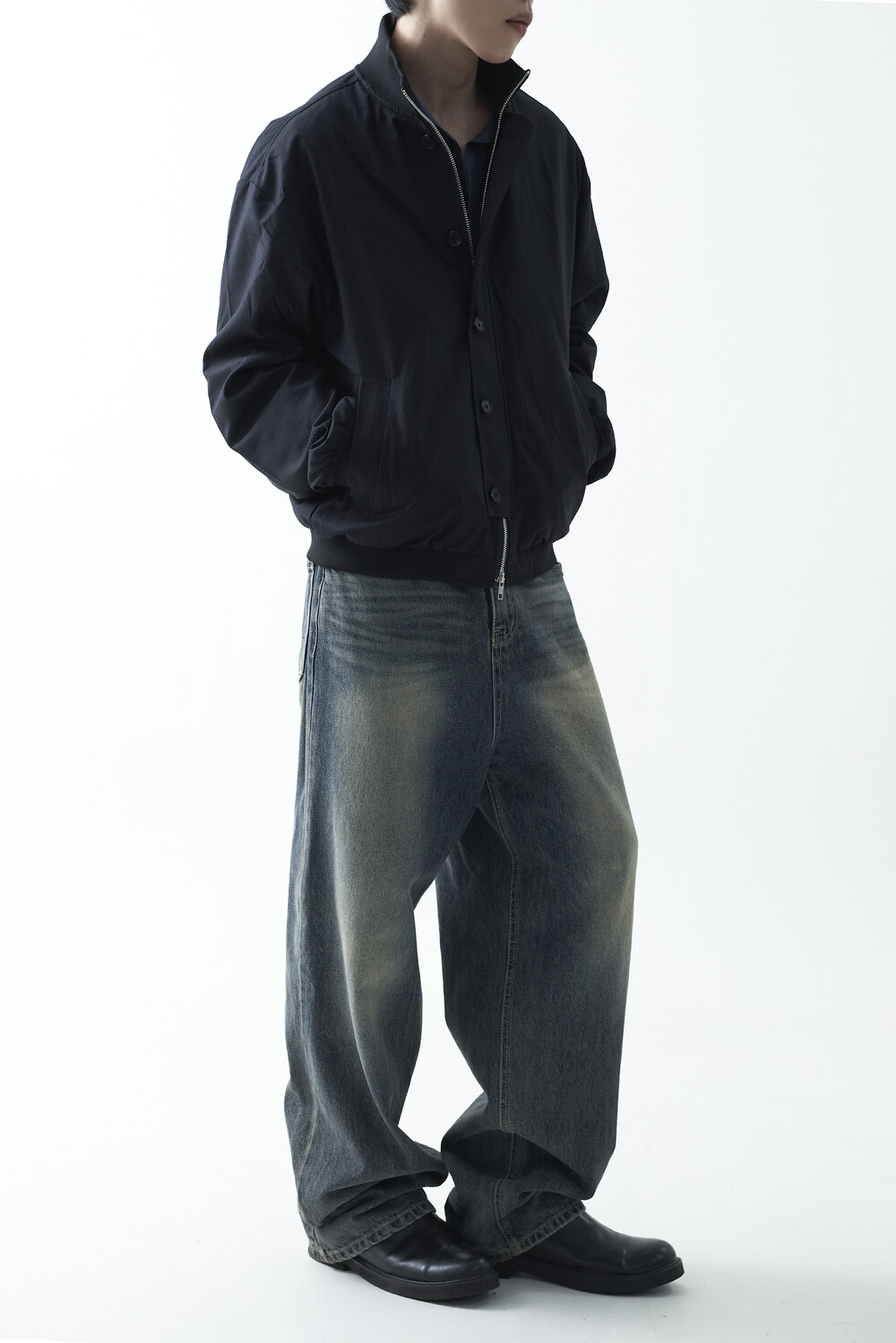세밀한 스트라이프 패턴이 적용된 점퍼 자켓 제품입니다. 투웨이 지퍼와 외부 단추 디테일이 적용되었으며 와이드한 숄더라인에 비해 크롭한 기장감이 트렌디한 아우터 제품입니다.