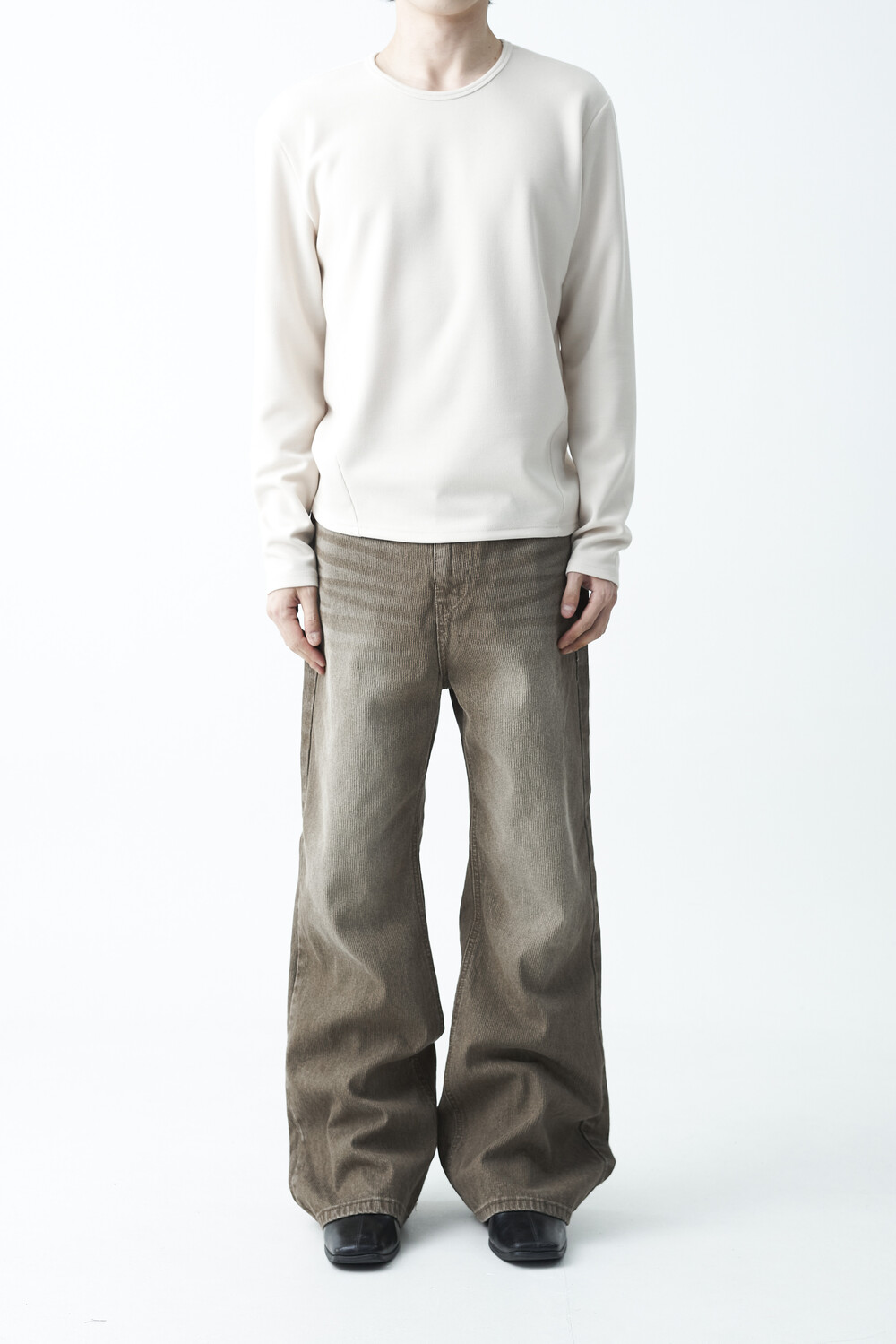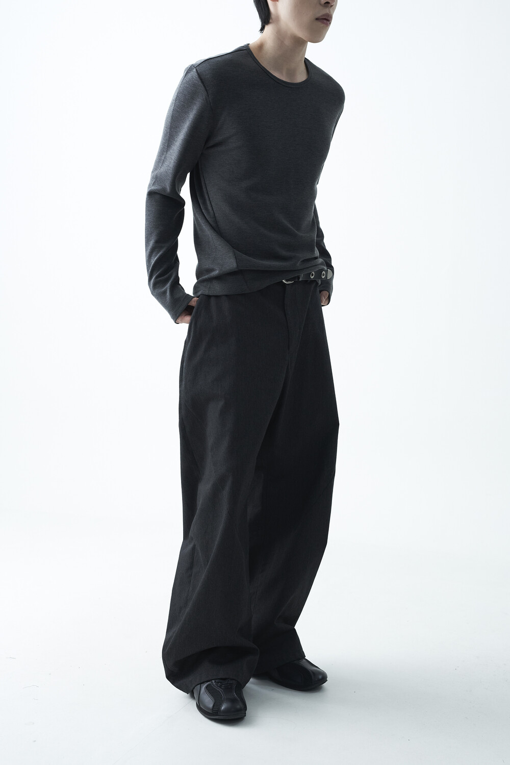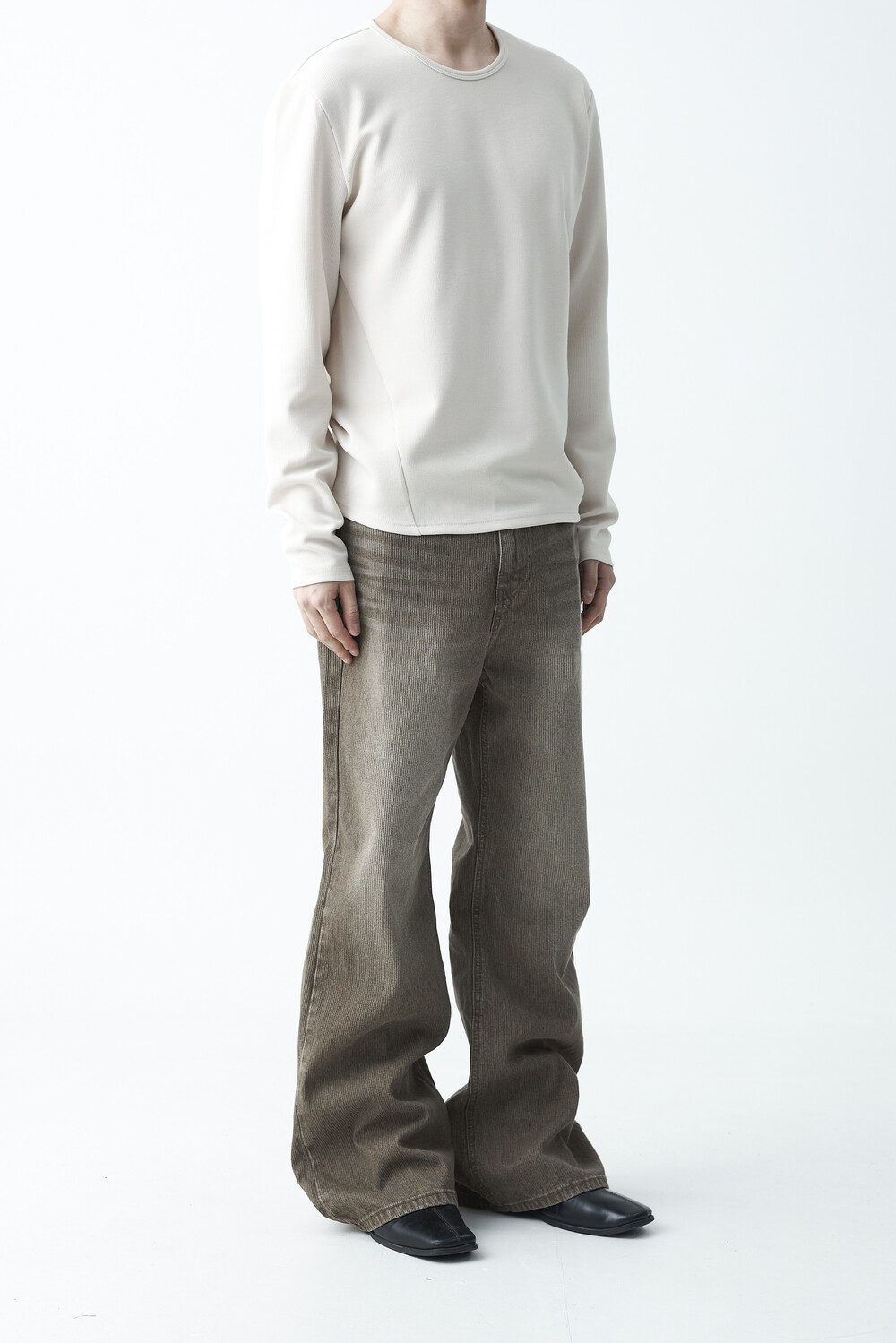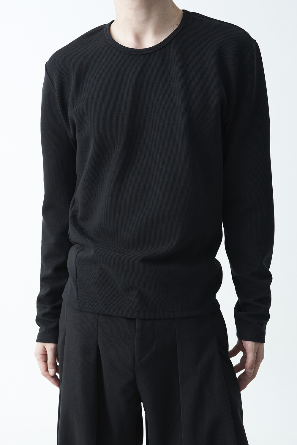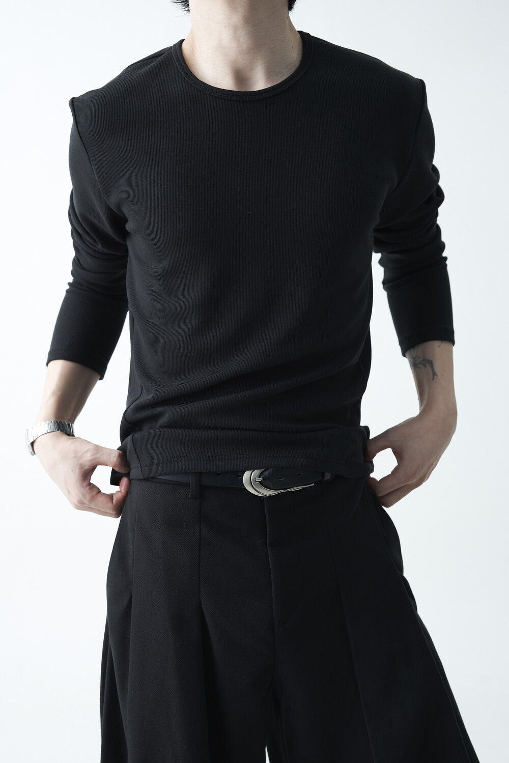 - 니트지 소재감으로 체형을 감싸주는 슬림라인의 롱슬리브 티셔츠 제품입니다. 유넥과 라운드넥의 중간 정도의 넥라인으로 단정한 목선을 표현하는 기본 이너티셔츠 제품이며, 자연스러운 스탠다드 실루엣을 나타냅니다. 하단으로 내려갈 수록 좁아지는 핏감으로 머슬핏으로 연출 또한 가능합니다.