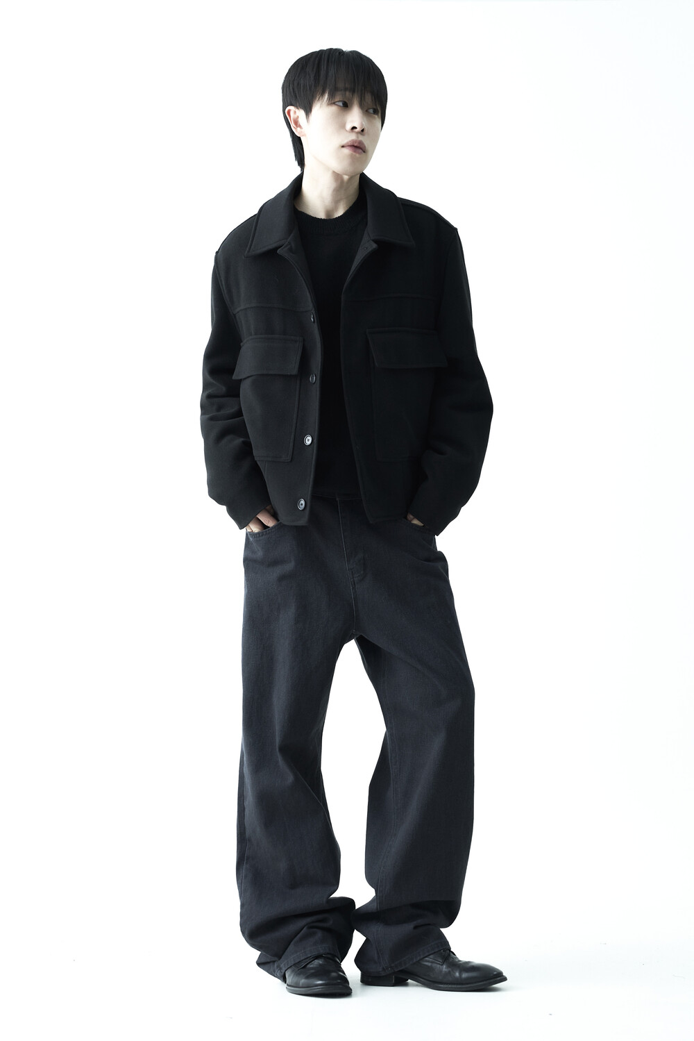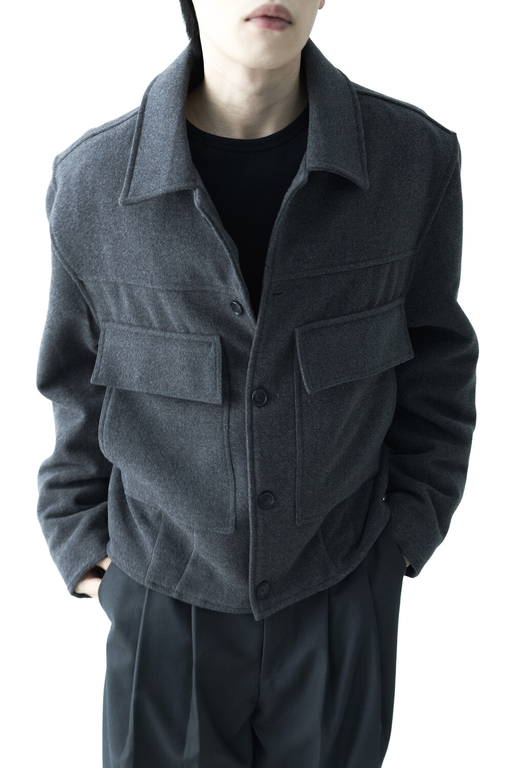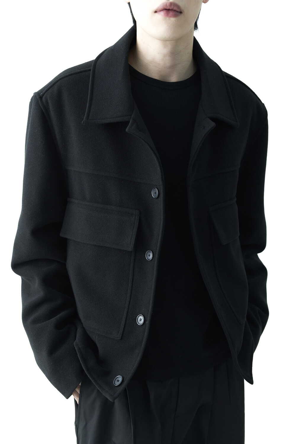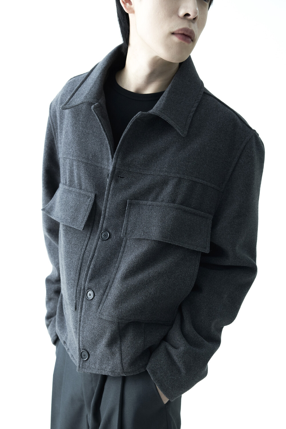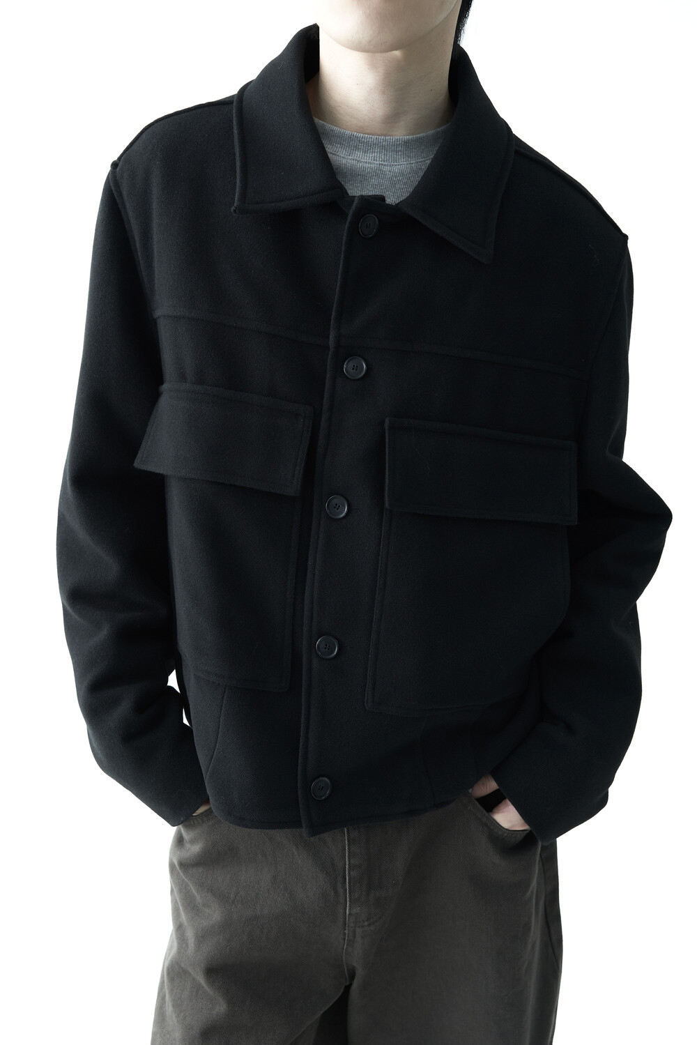 - 포멀한 싱글 자켓 스타일을 베이스로 오버한 투포켓과 전면부 절개 슬릿이 적용된 크롭 자켓 제품입니다.